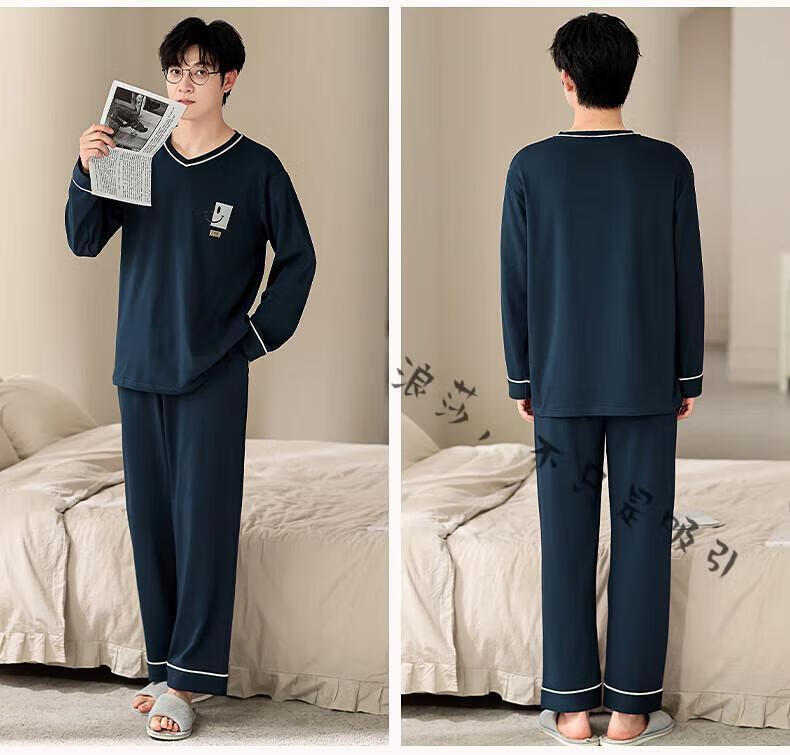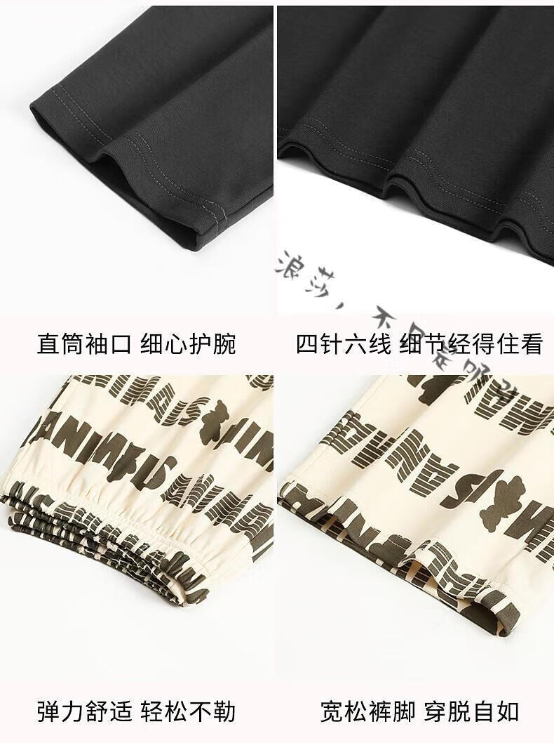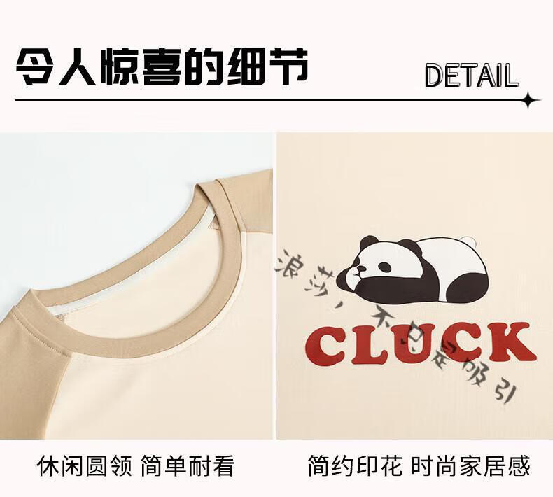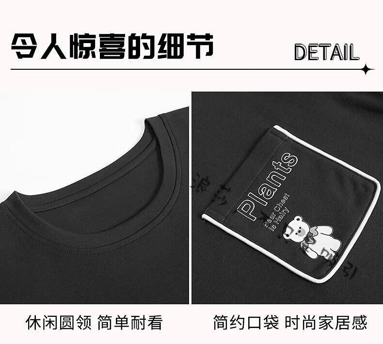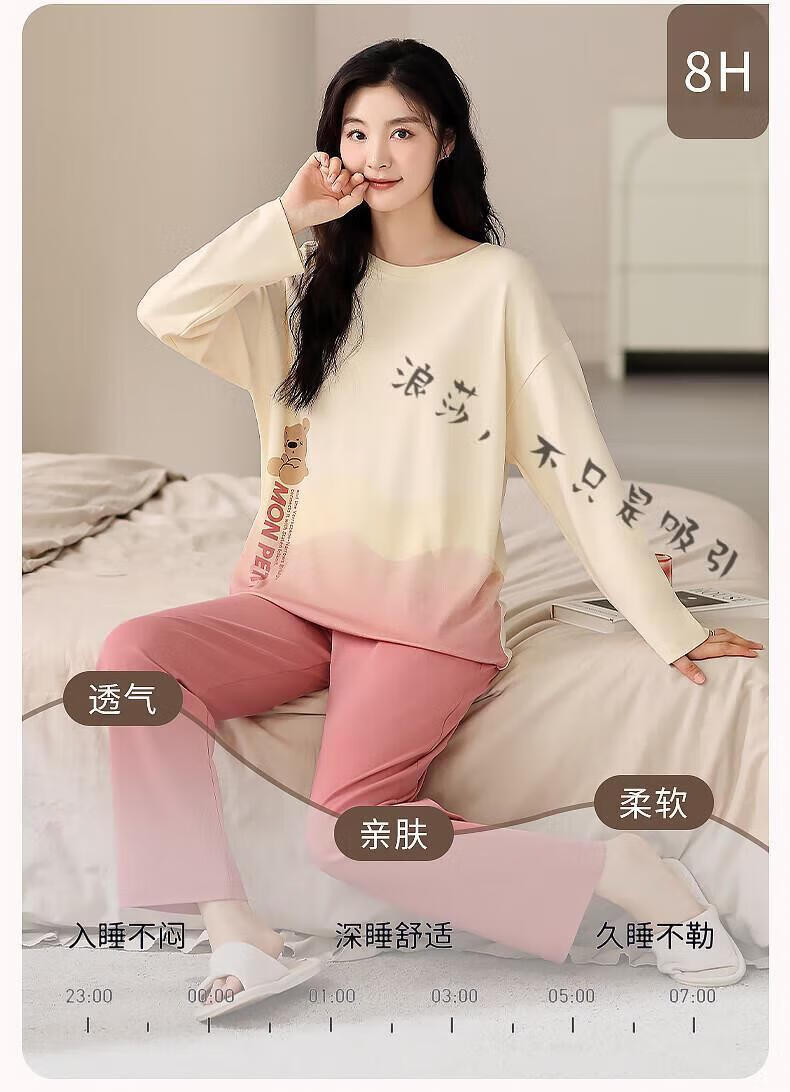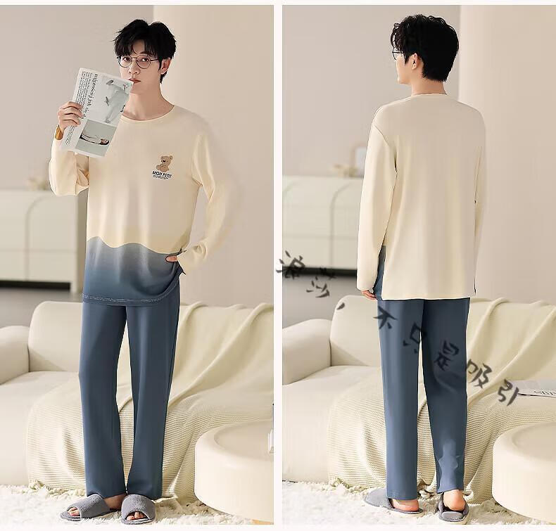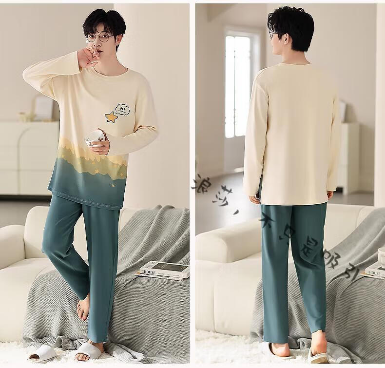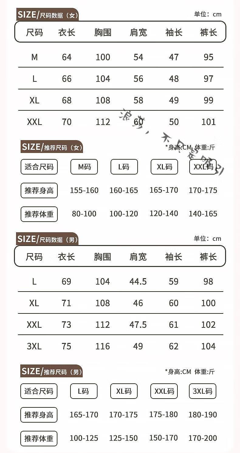 LangSha couple pajamas for one man and one woman in spring and autumn pure cotton round neck long-sleeved cartoon casual spring and autumn can be worn outside home clothes 96850 Female M + Male L