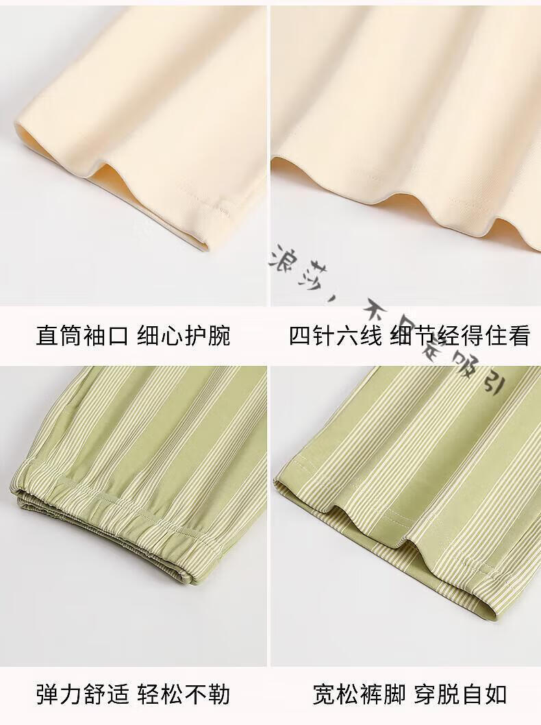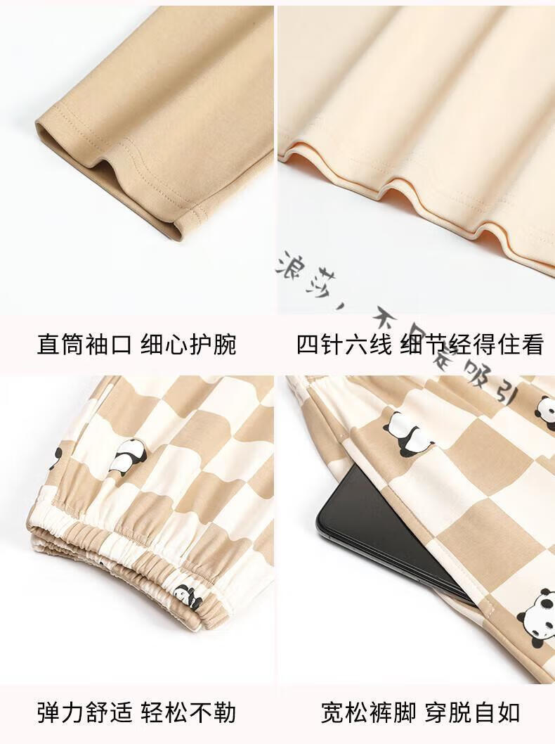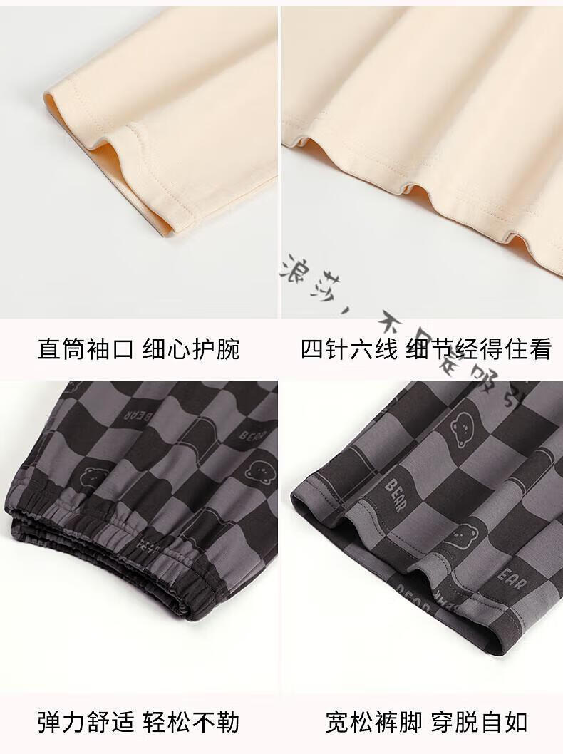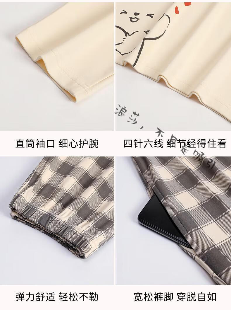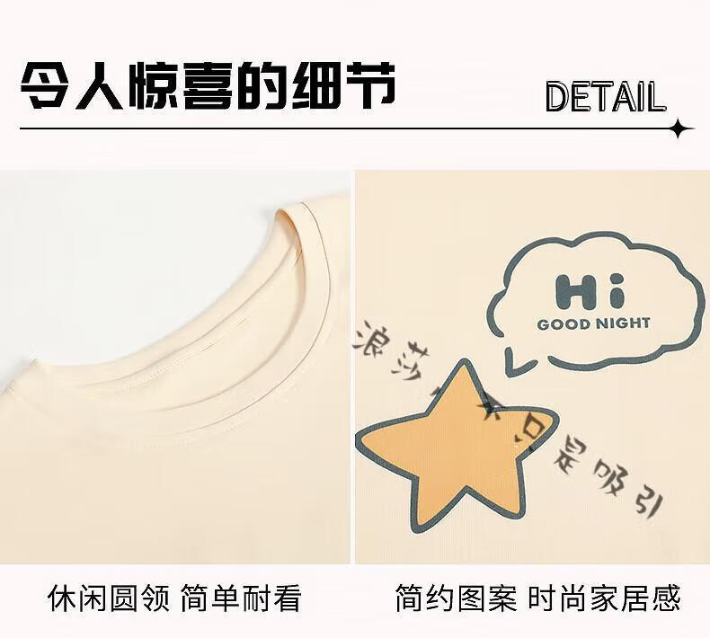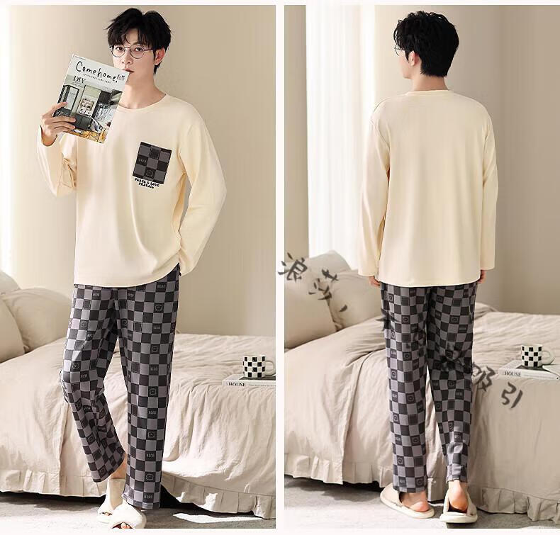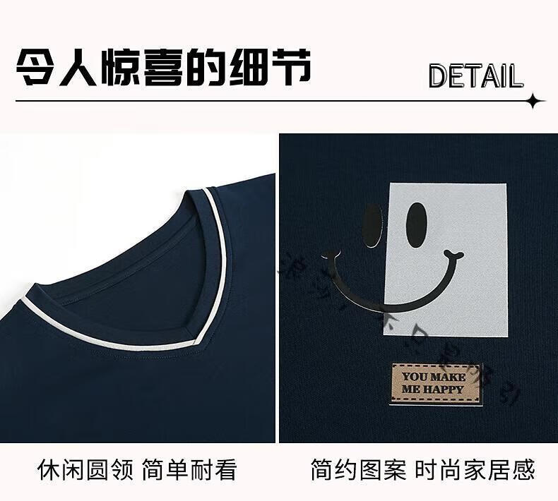 LangSha couple pajamas for one man and one woman in spring and autumn pure cotton round neck long-sleeved cartoon casual spring and autumn can be worn outside home clothes 96850 Female M + Male L