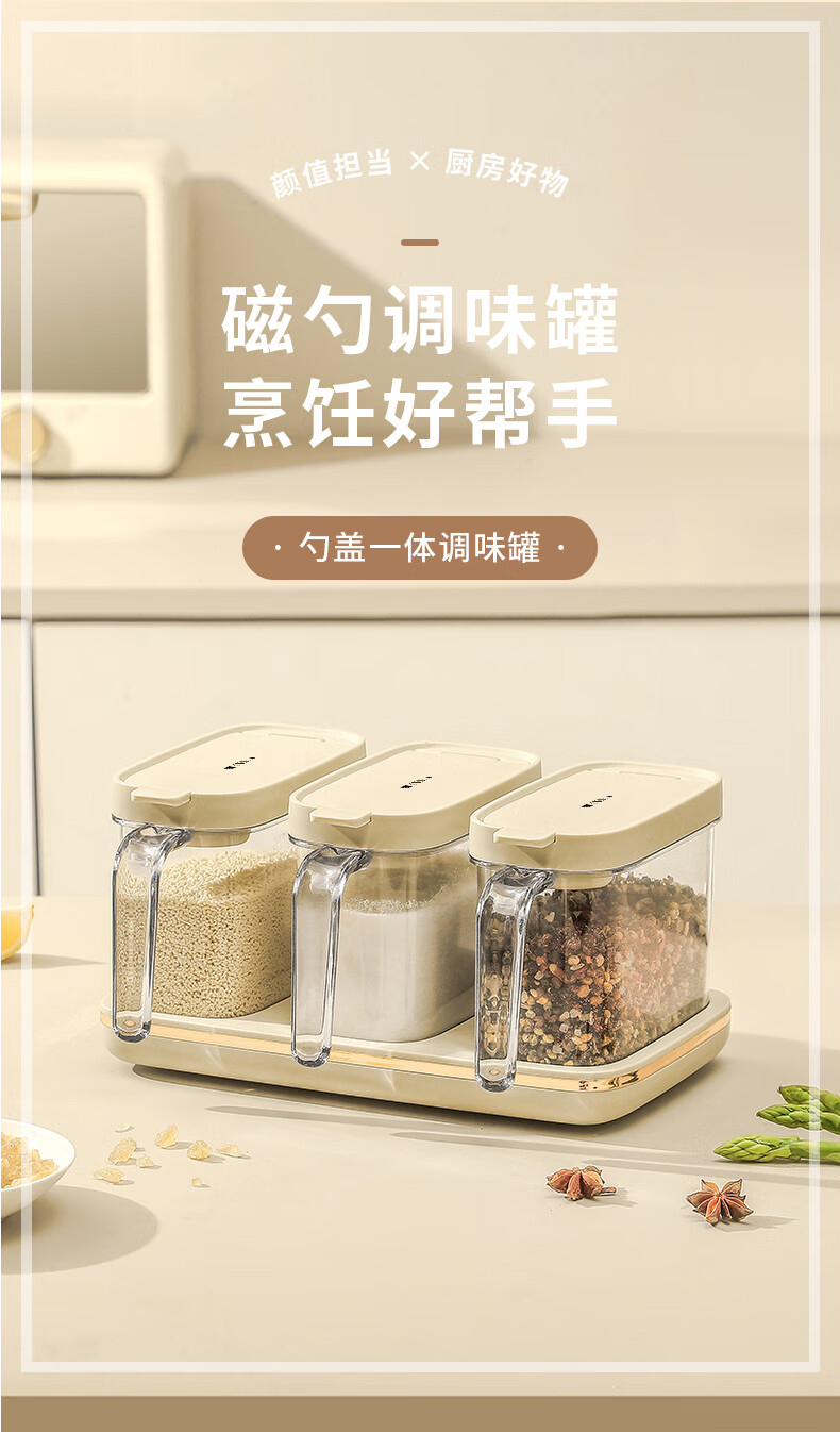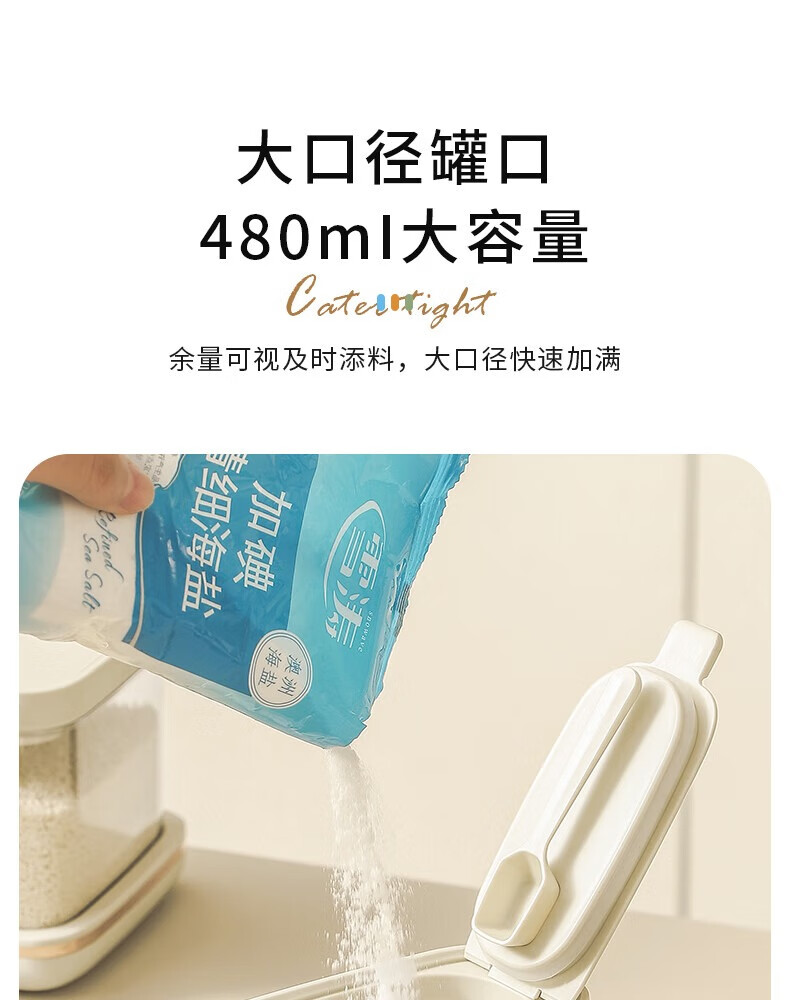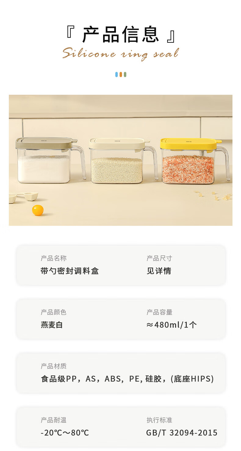 VEELAR seasoning box seasoning jar seasoning jar kitchen household salt shaker seasoning bottle divided seasoning box set 480ml-magnetic single-frame style-oat white