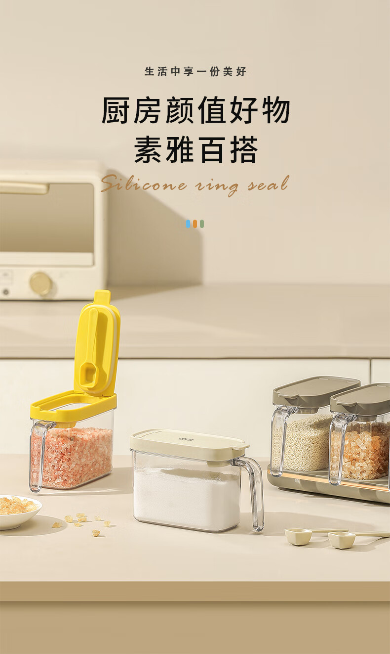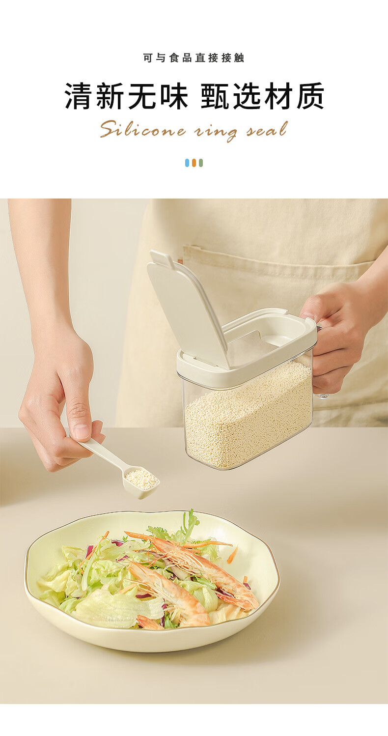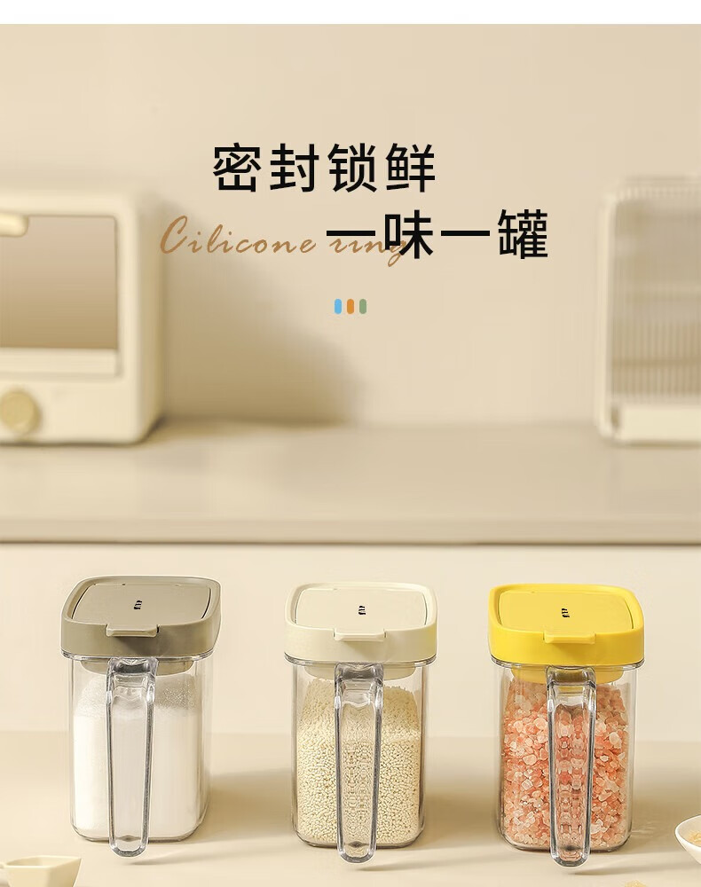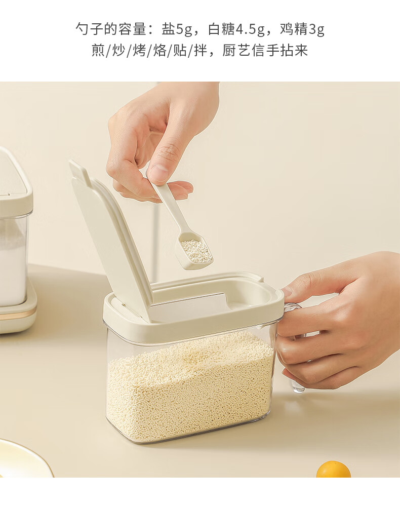 VEELAR seasoning box seasoning jar seasoning jar kitchen household salt shaker seasoning bottle divided seasoning box set 480ml-magnetic single-frame style-oat white