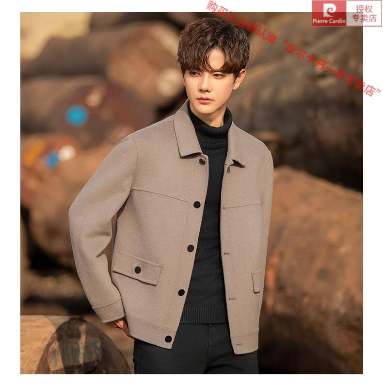 Pierre Cardin wool double-sided woolen coat men's lapel jacket high-end coat short winter thickened woolen top trendy black XL 180
