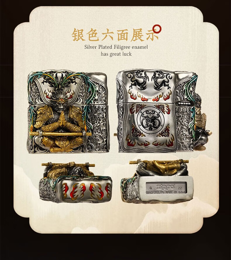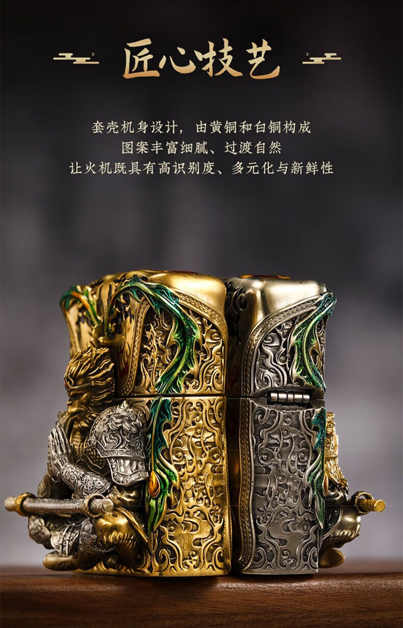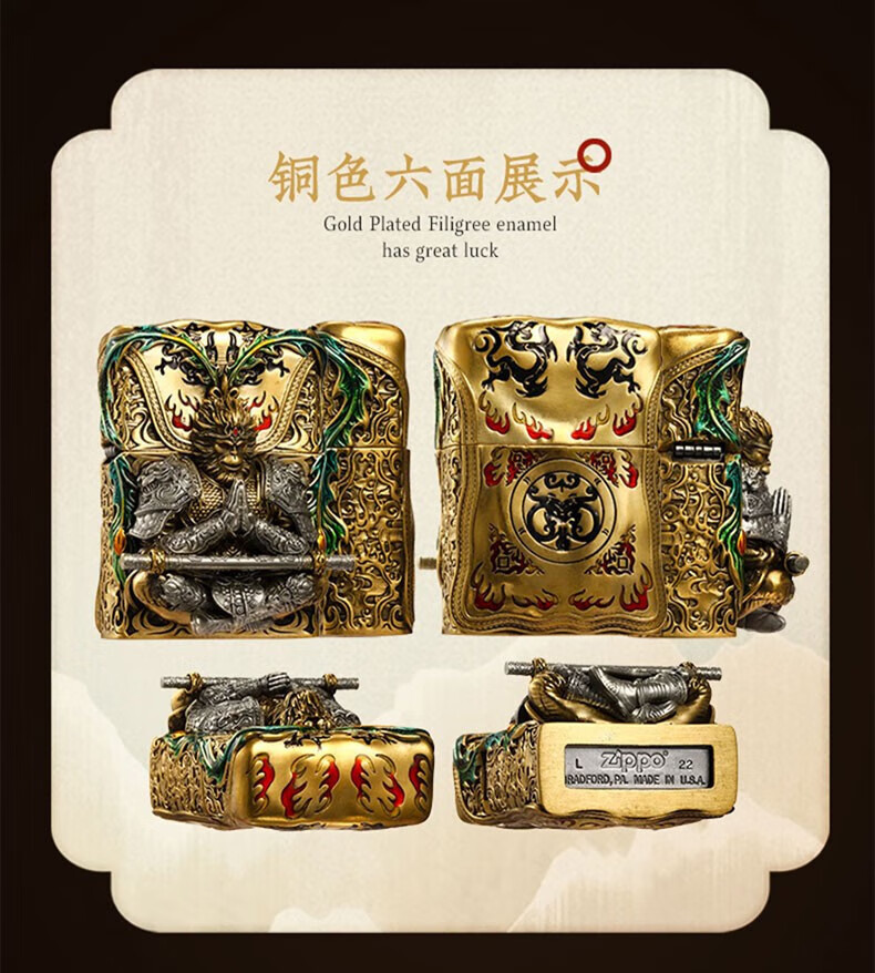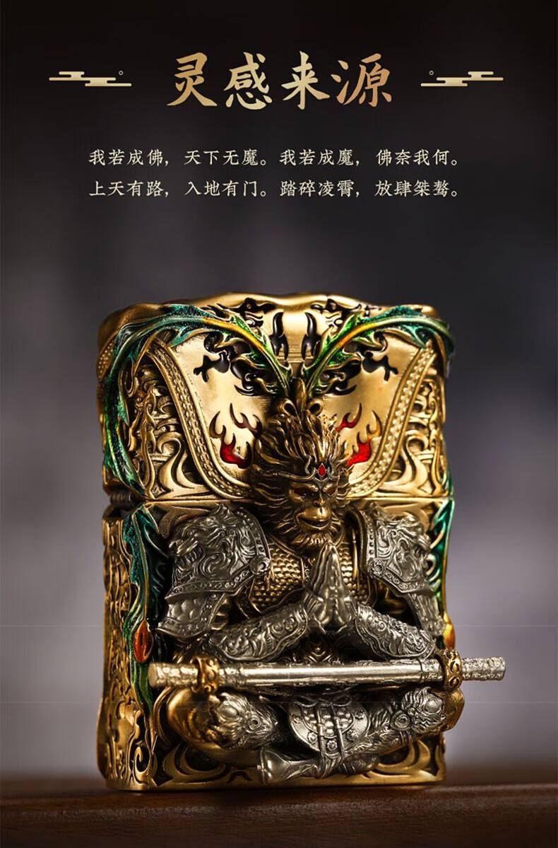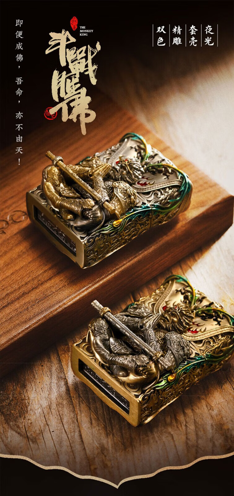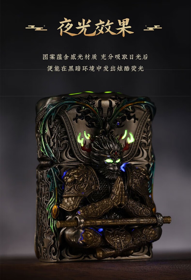 ZIPPO Lighter Black Myth Fighting and Victory over Buddha Wukong Luminous Turntable Heavy Armor Birthday Gift for Boyfriend Valentine's Day Gift Fighting and Victory over Buddha-Bronze