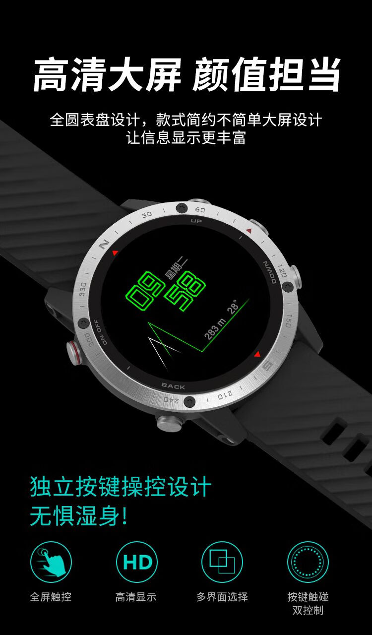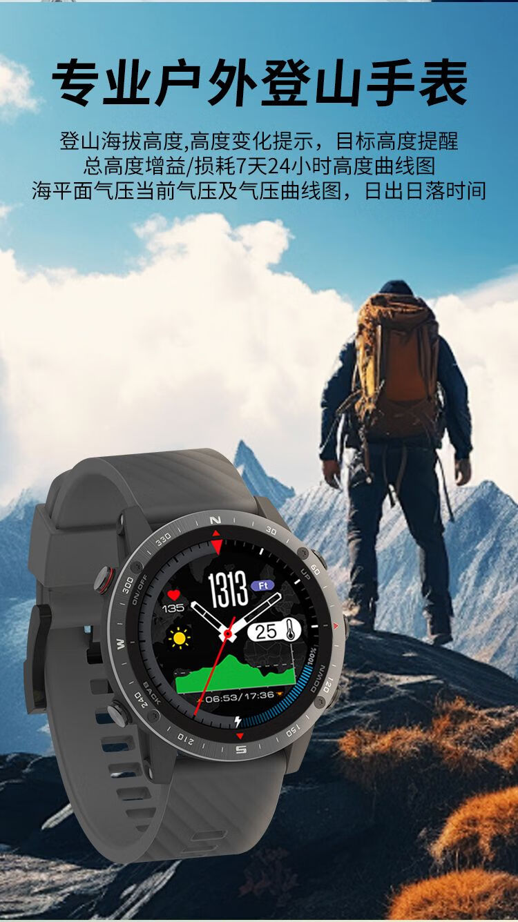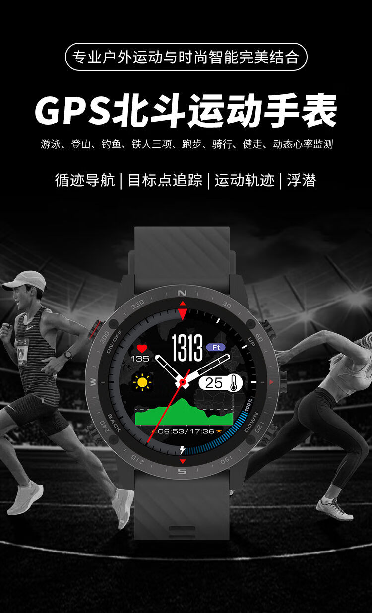 Songlu Songlu domestic GPS sports heart rate watch triathlon mountain climbing altitude running compass swimming waterproof G5pro black black silicone
