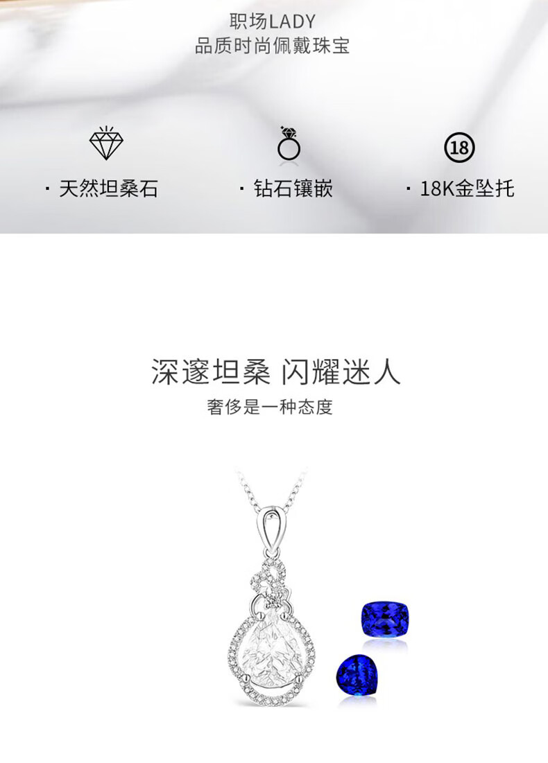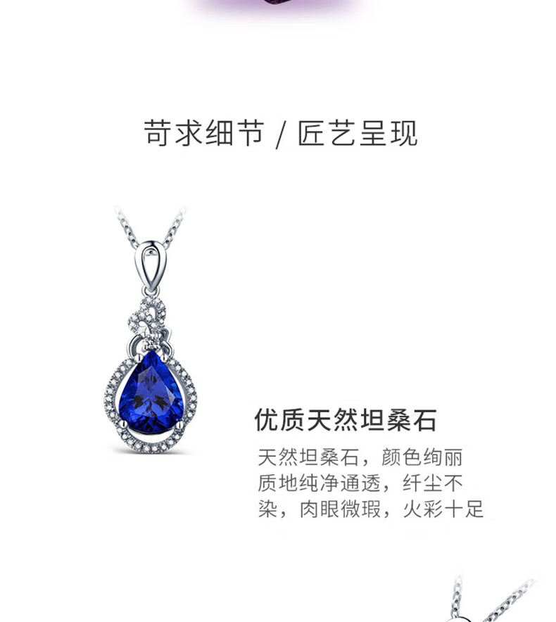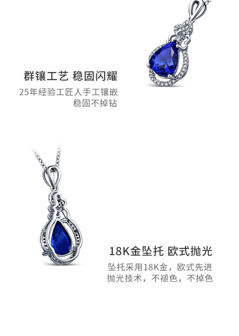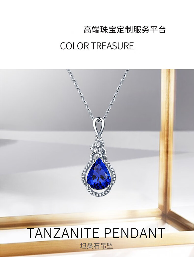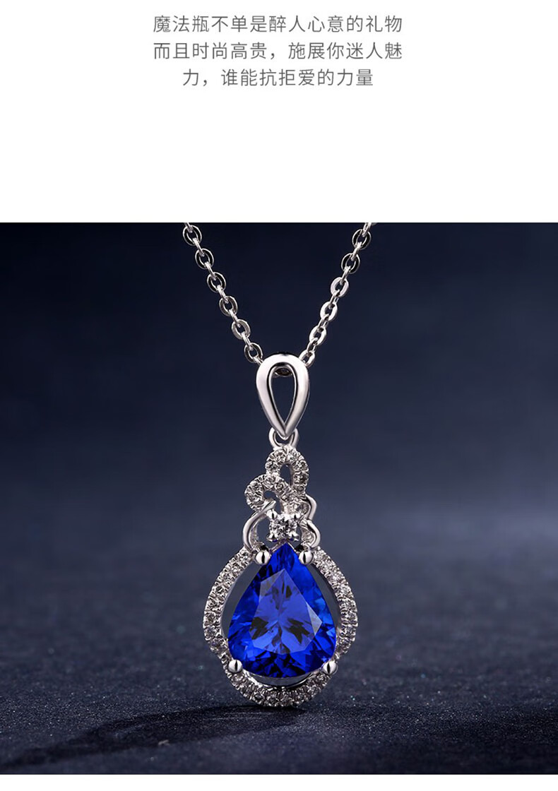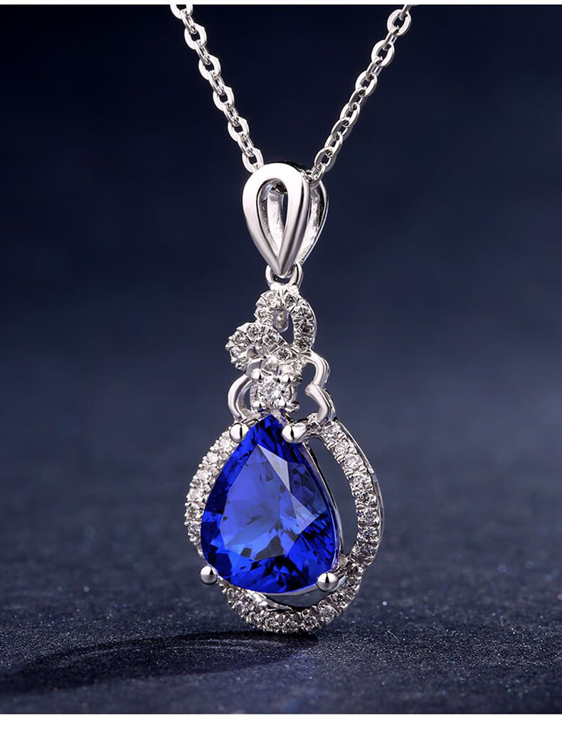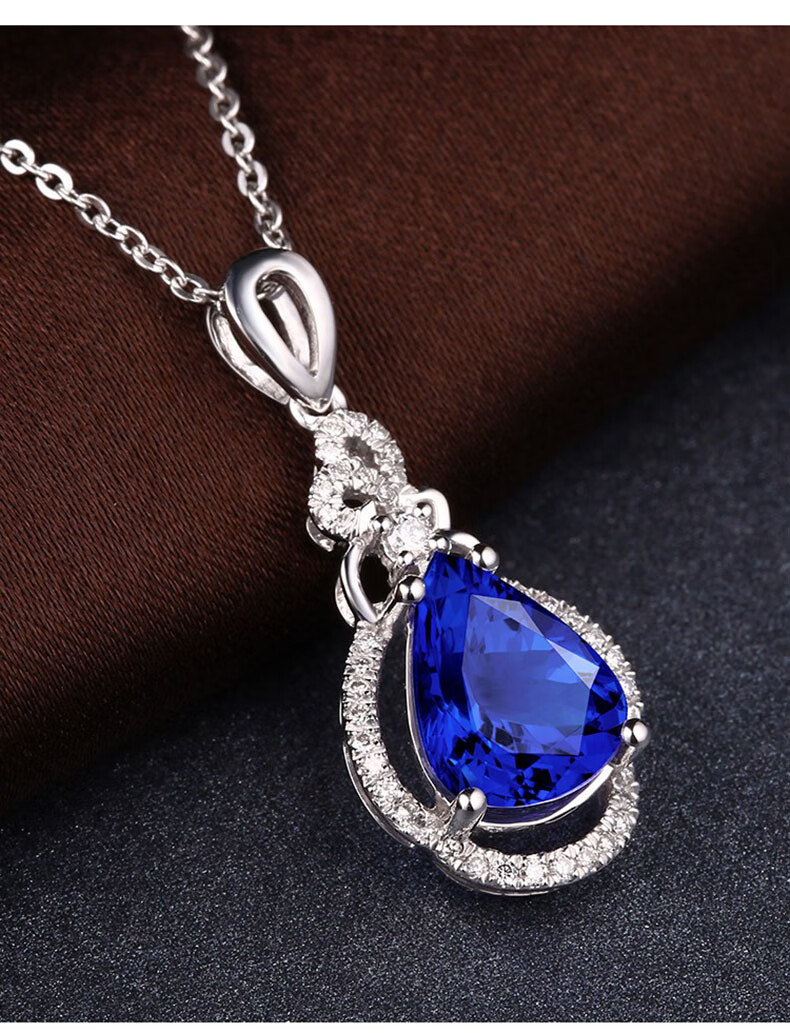 Philop Necklace Women's Tanzanite Blue Gemstone Pendant High-end Luxury Jewelry Valentine's Day Birthday Gift for Girlfriend 1.8 Carat Tanzanite Necklace Brand Gift Box