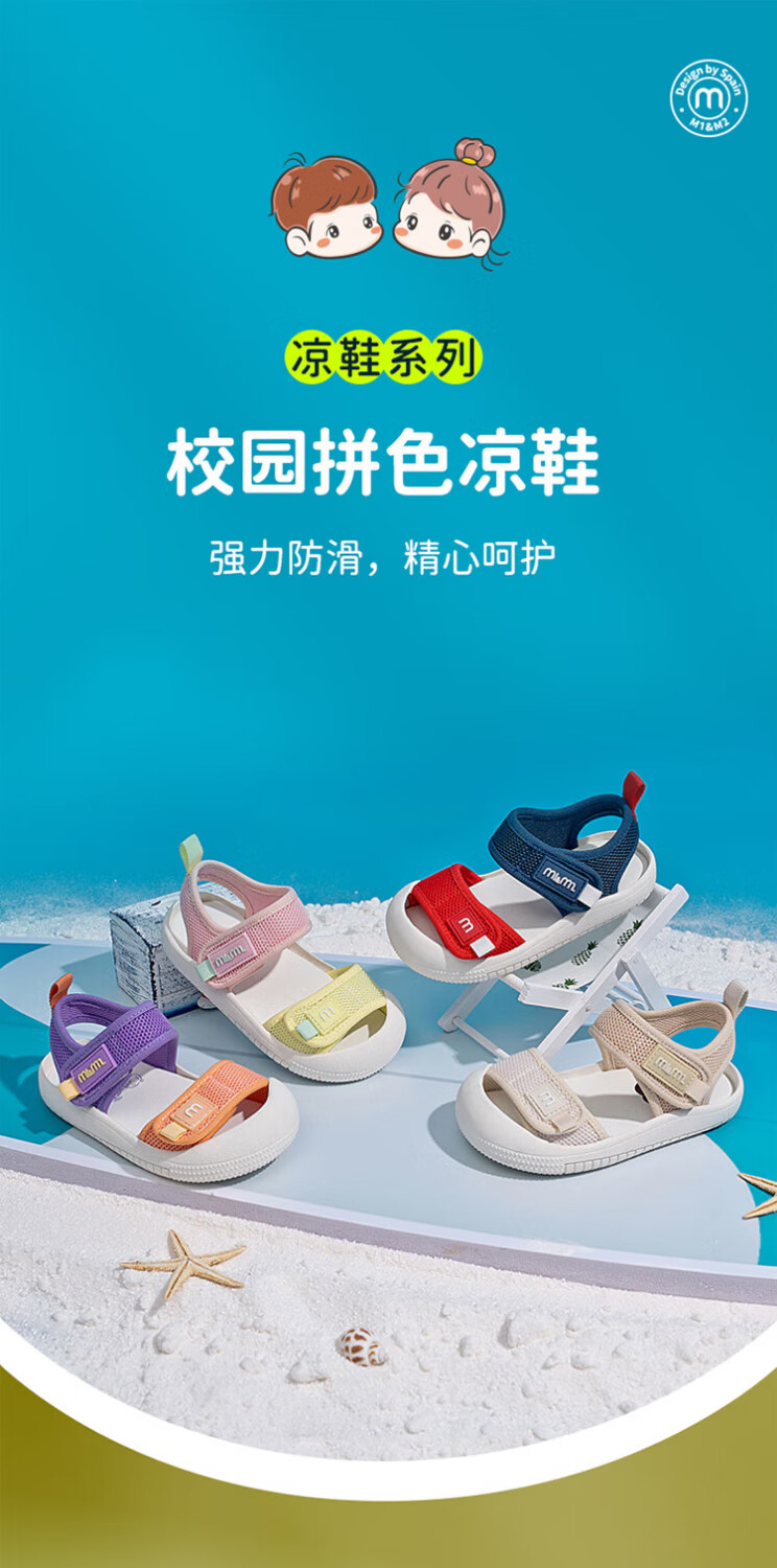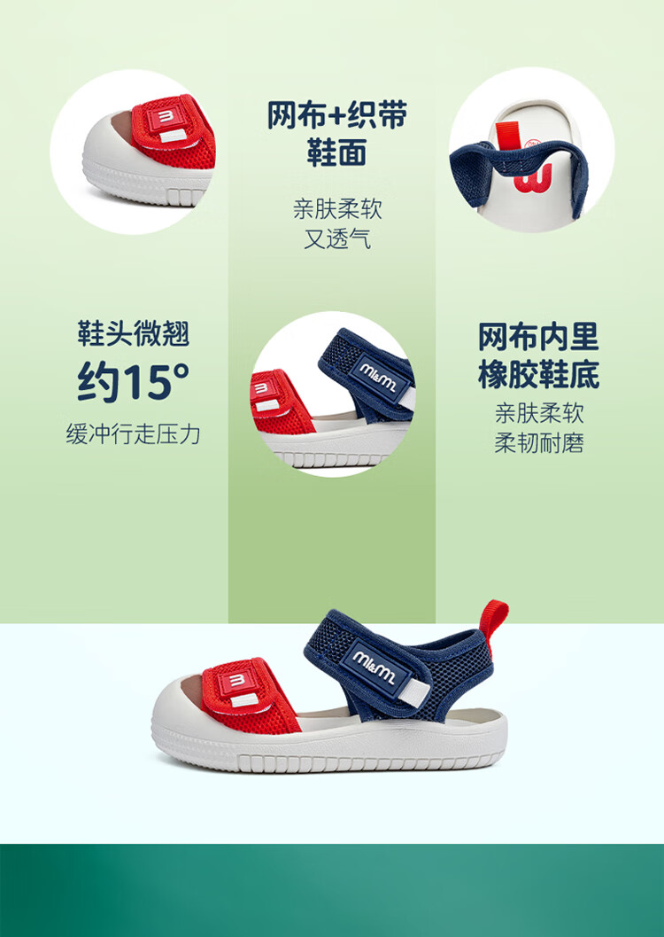M1&M2 Spanish children's shoes, children's sandals, boys and girls, new summer beach shoes, color-blocked soft soles, Velcro toe caps, red 28, suitable for feet 16.5~17cm long