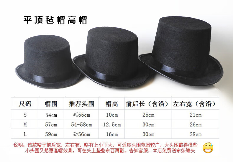 Cherry-embellished gentleman's top hat black retro high hat men's British French flat-top felt hat British Sherlock Holmes detective magic hat flat-top high hat black Sherlock Holmes Detective L (58-60cm)