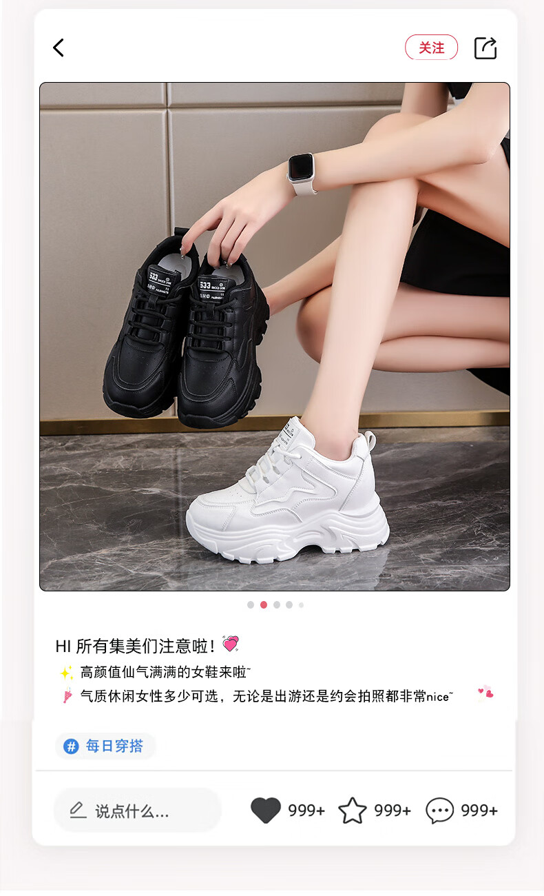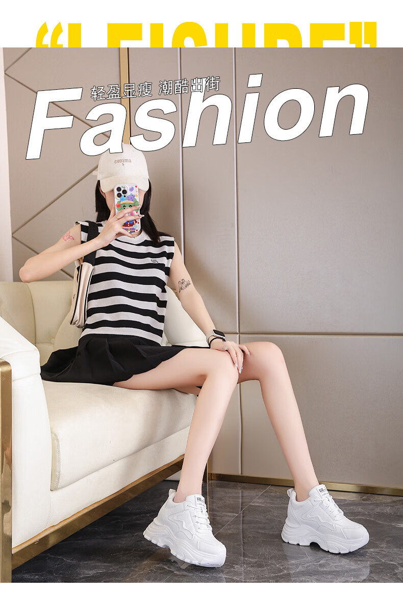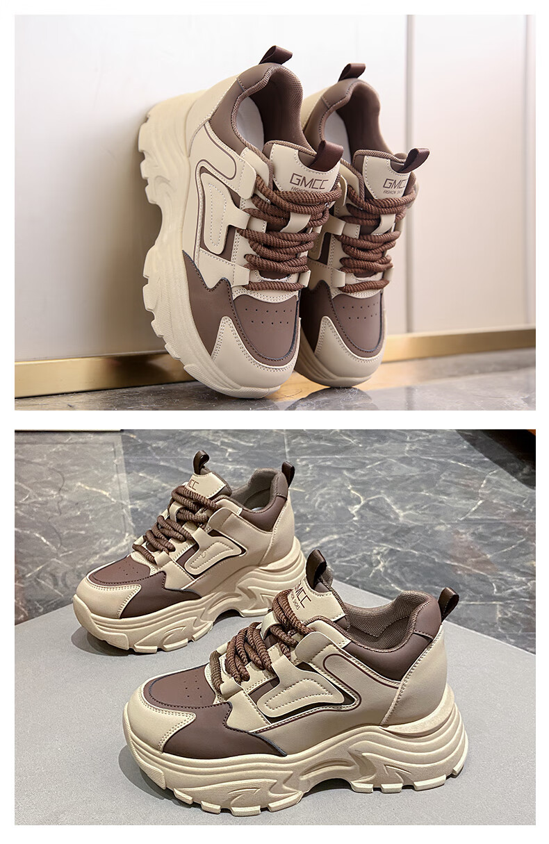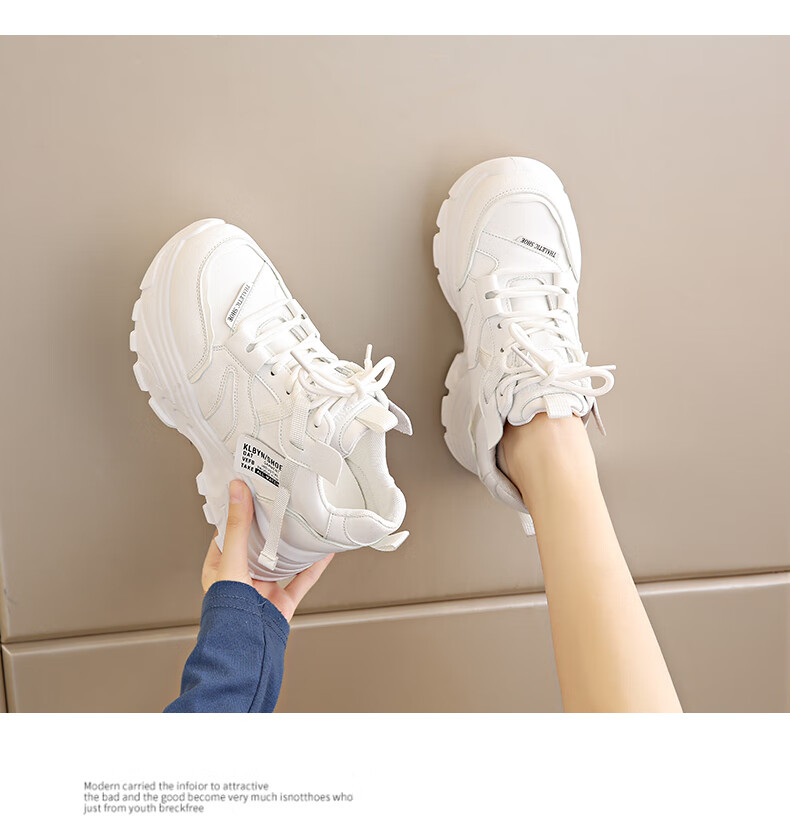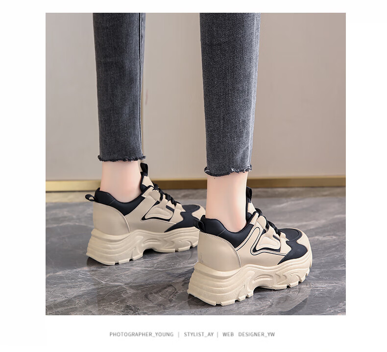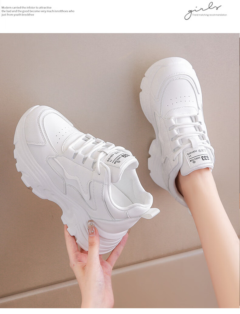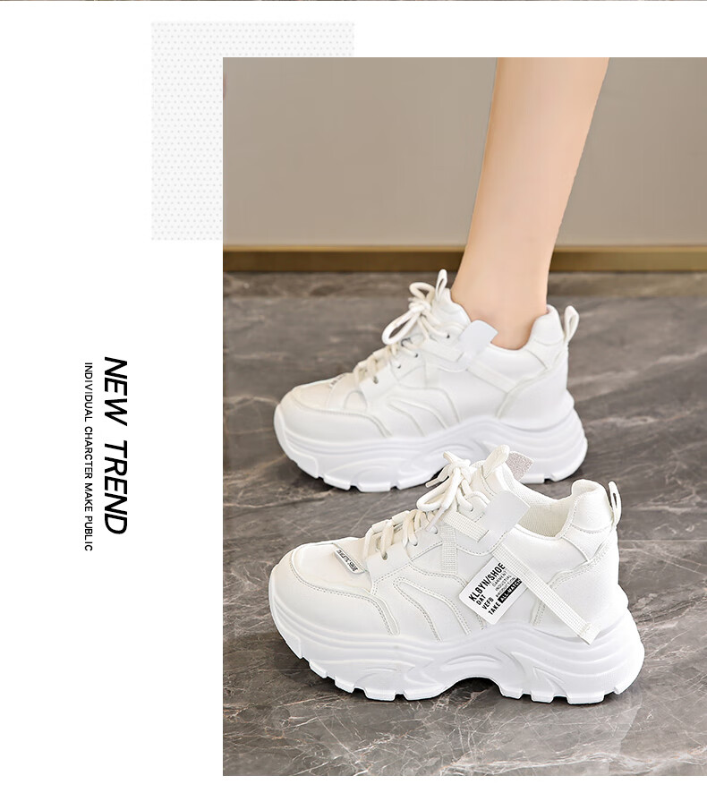 Woodpecker women's 8CM height increasing shoes small versatile wedge black sneakers autumn and winter thick sole non-slip leather daddy shoes black leather 35