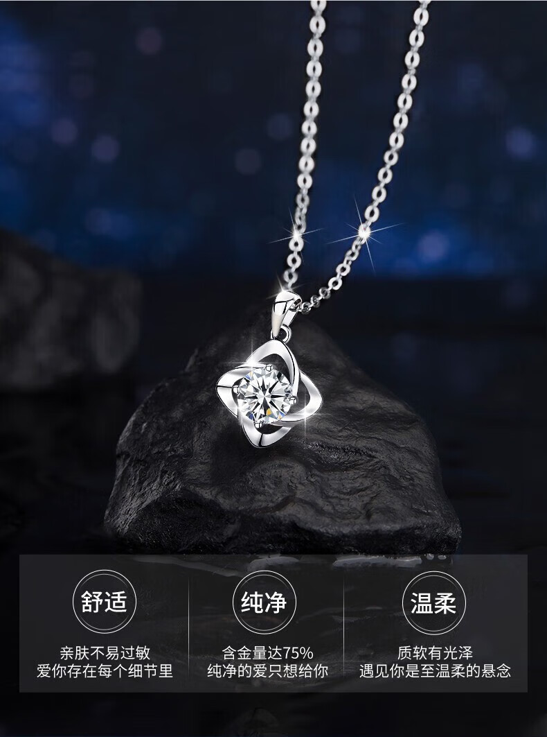 COISEE.YL light luxury 18K gold four-leaf clover necklace for women platinum rose gold color gold jewelry birthday gift for girlfriend platinum pendant + platinum chain + topaz