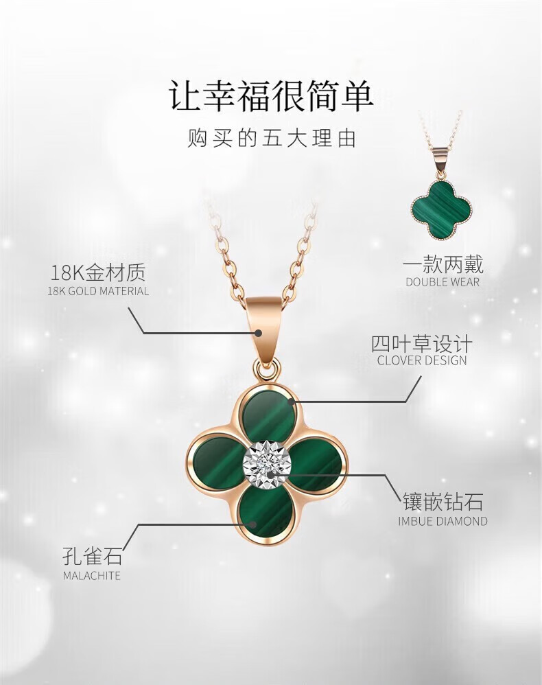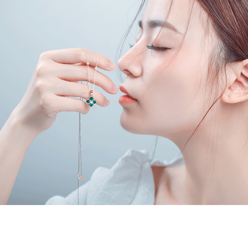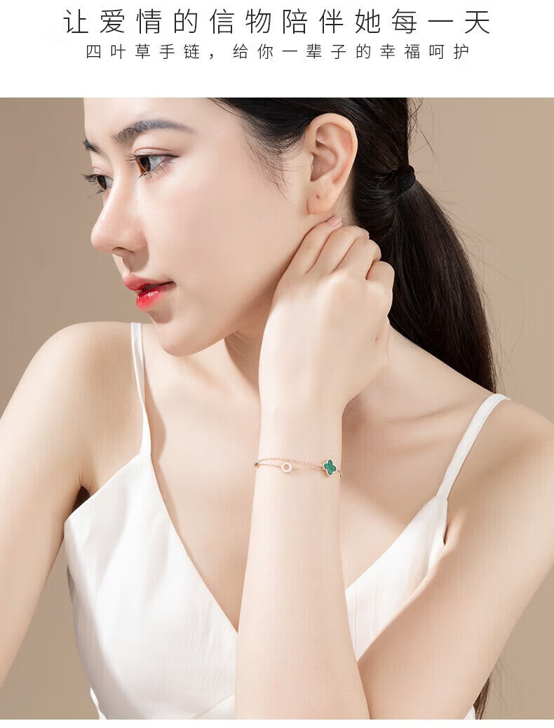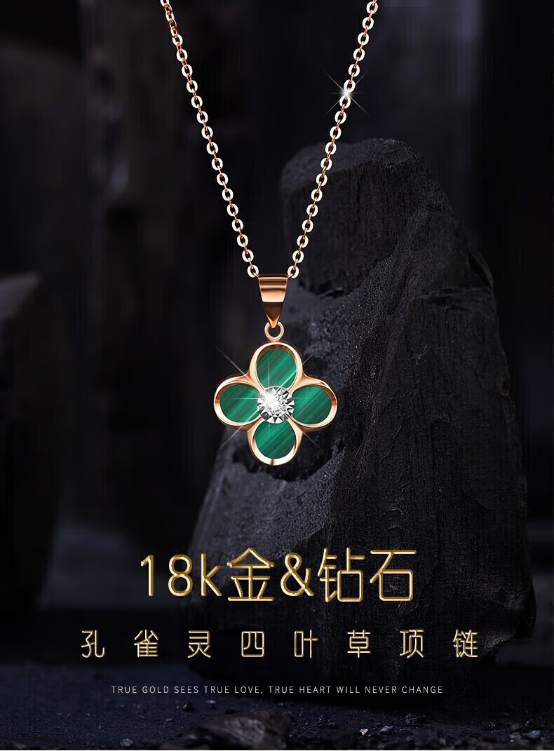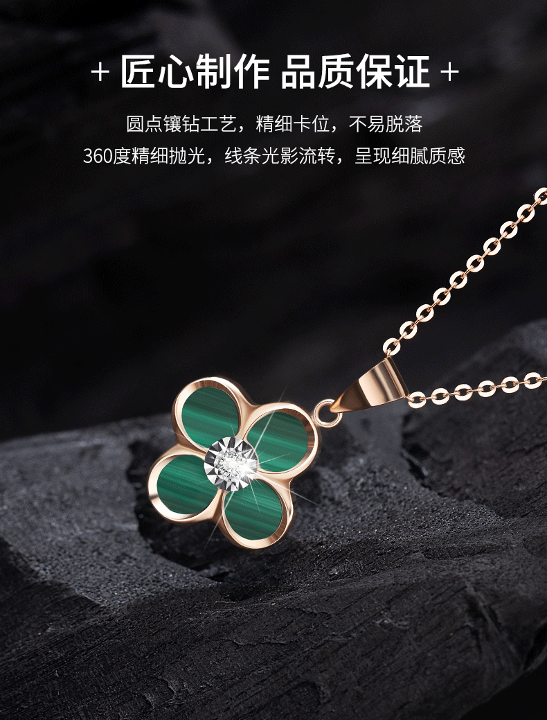 COISEE.YL18K color gold four-leaf clover diamond necklace women's rose gold bracelet Valentine's Day birthday gift for girlfriend, reversible wear Diamond K color gold necklace * red agate
