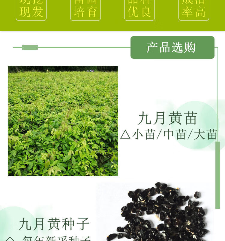 Qiuying September yellow sapling seeds, cow egg lump seedlings, August melon seedlings, five-leafed tree seedlings, wild golden bananas, September yellow seedlings, 2 large seedlings, 30-50cm