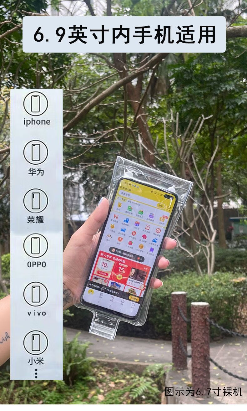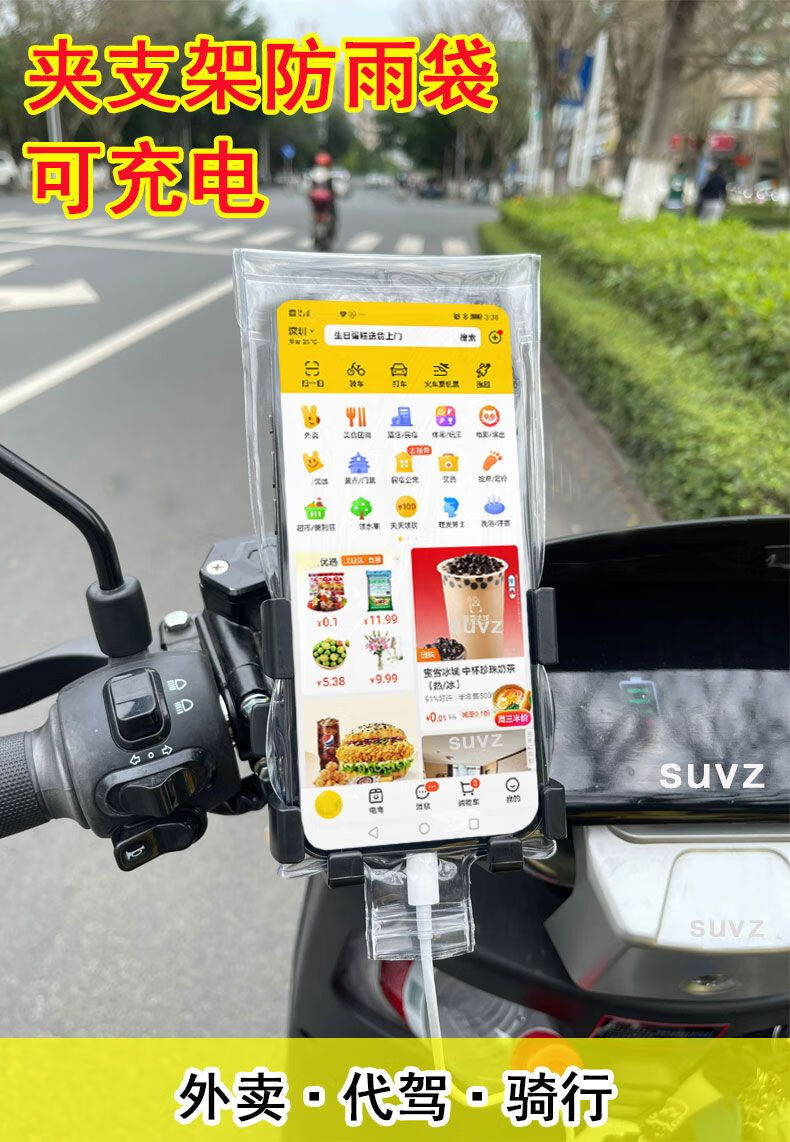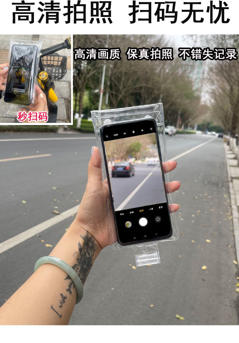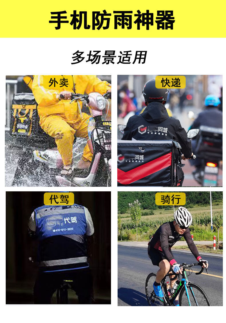 New universal waterproof mobile phone bag for takeaway riders, rechargeable clip bracket, touch screen charging hole, rainproof cover, waterproof mobile phone bag, 1 pack