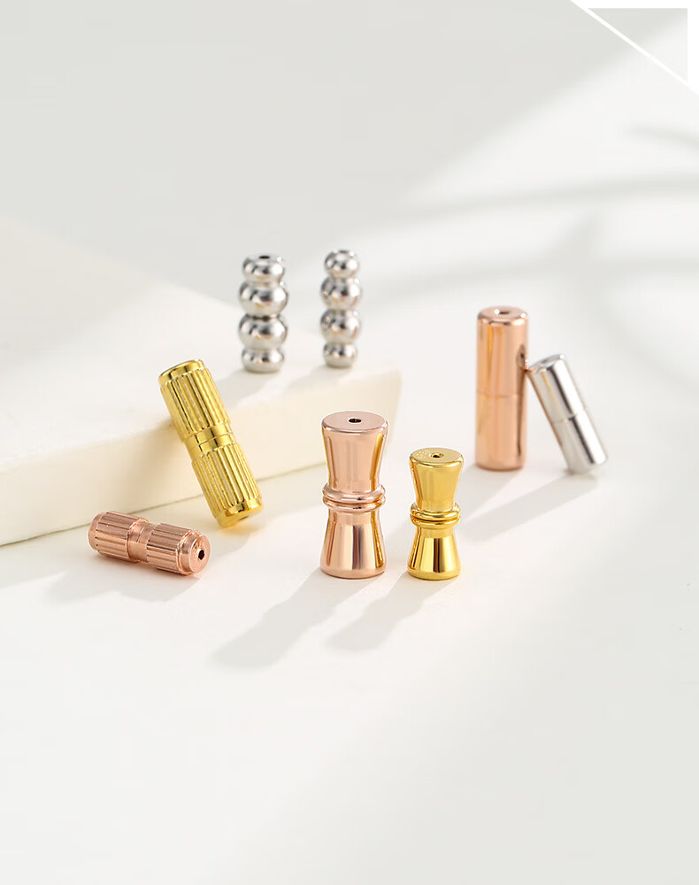 Fat Donglai same style 18k gold buckle head wear pearl necklace DIY accessories sterling silver pendant screw buckle hand link buckle silver YP73 yellow l gold 4mm