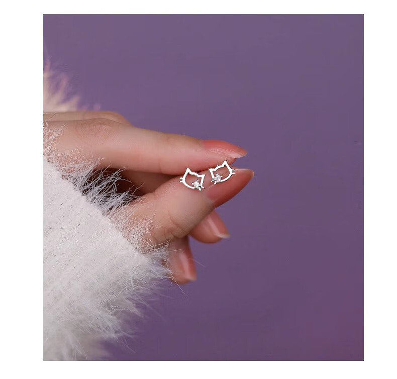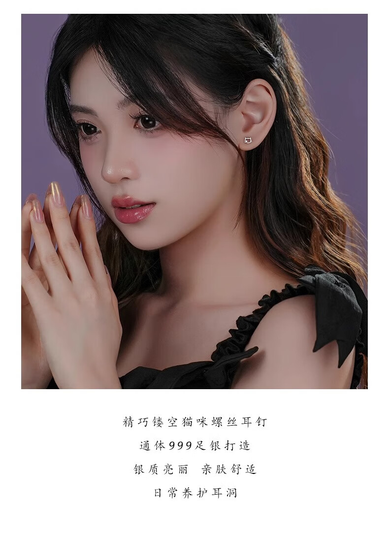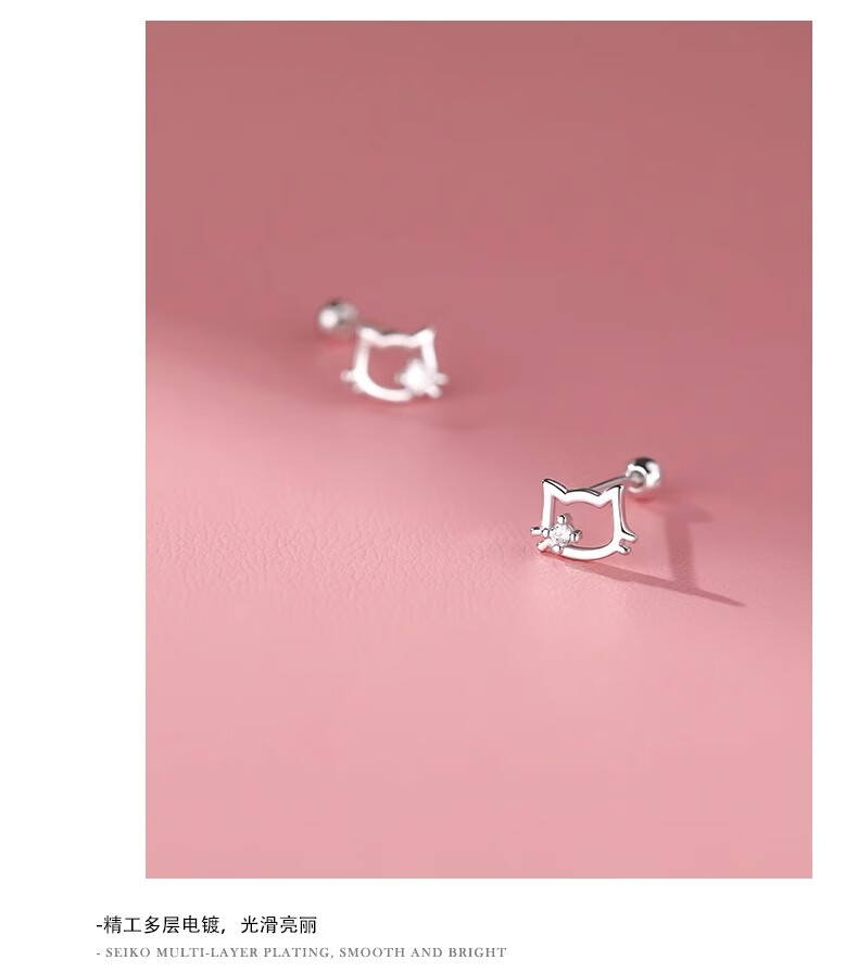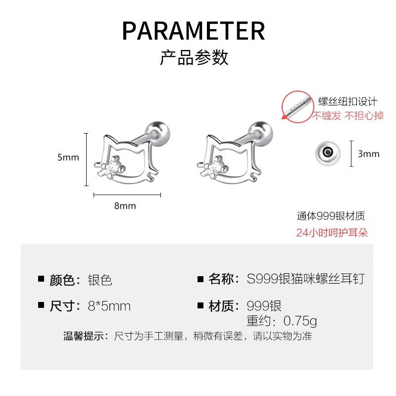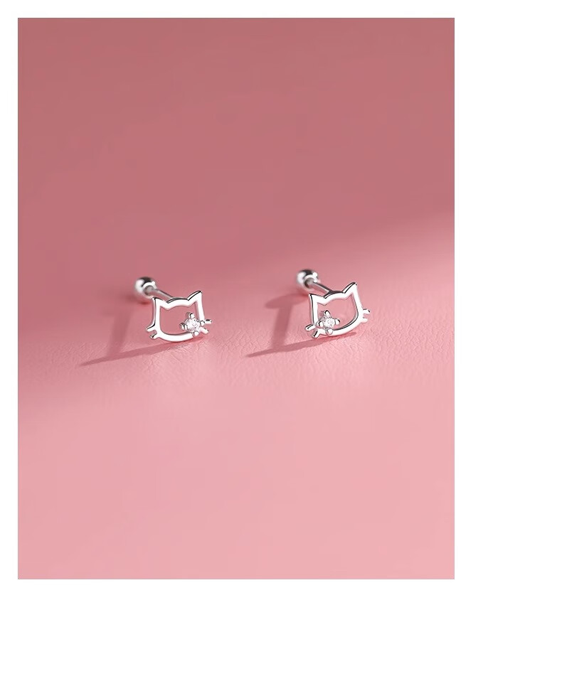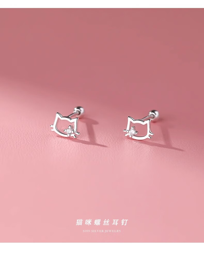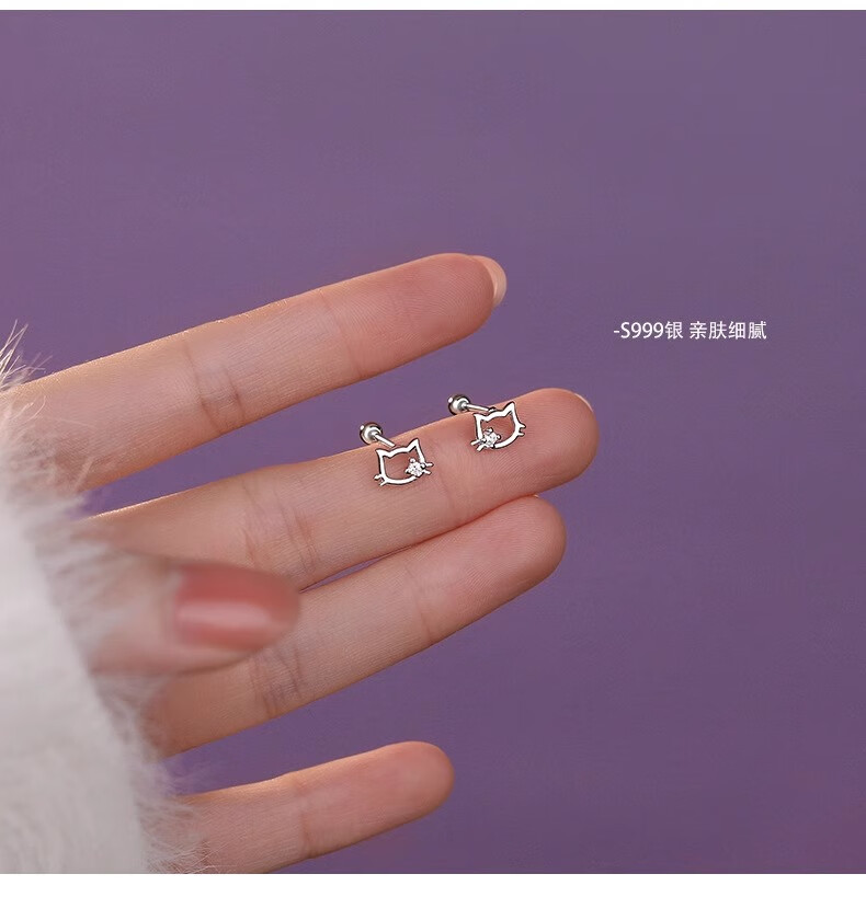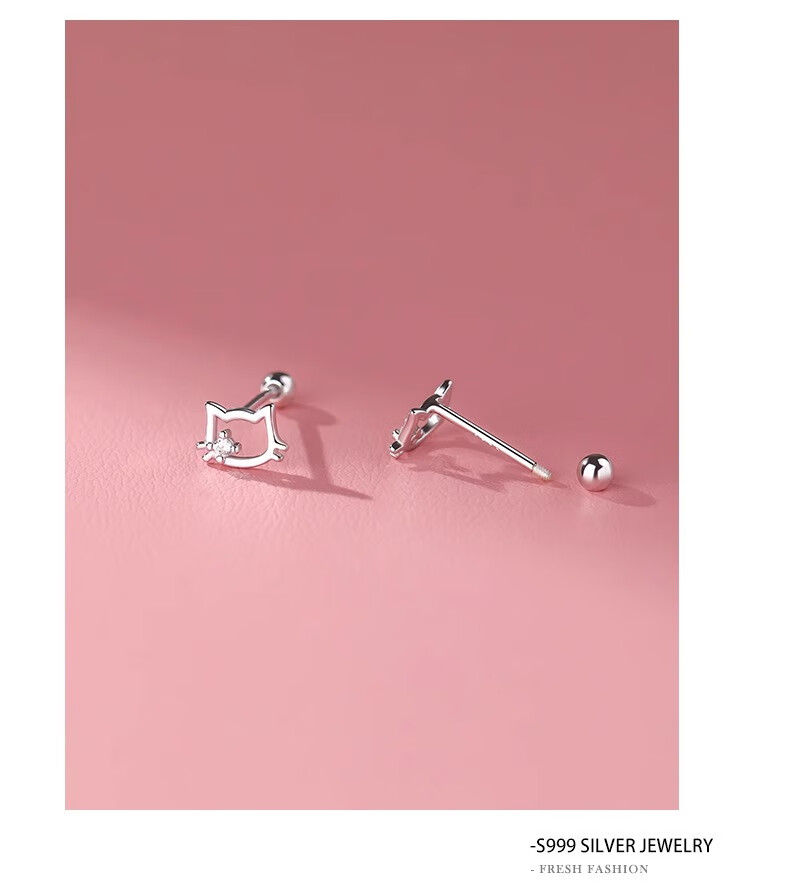 QMXDS999 sterling silver cat screw earrings for women, small pure silver earrings for ear piercing, washing and sleeping, no need to remove ear bones, children's jewelry S999 pure silver cat-screw earrings 2 price