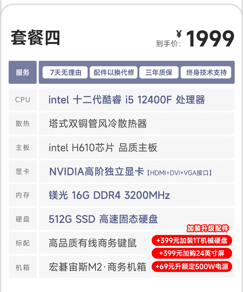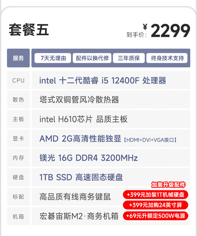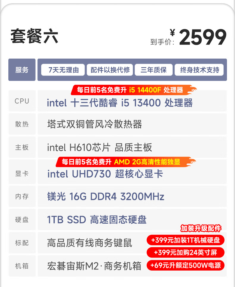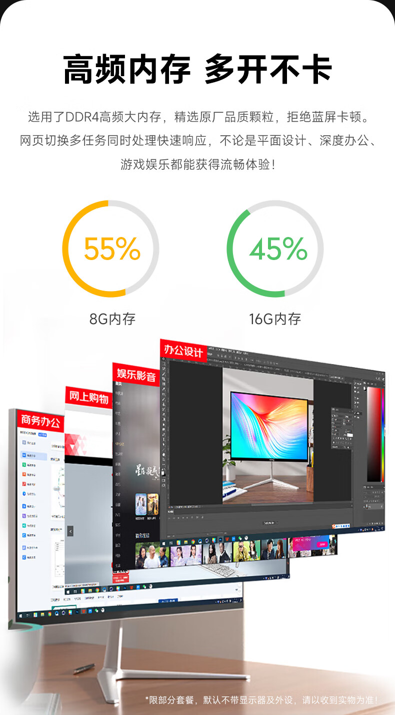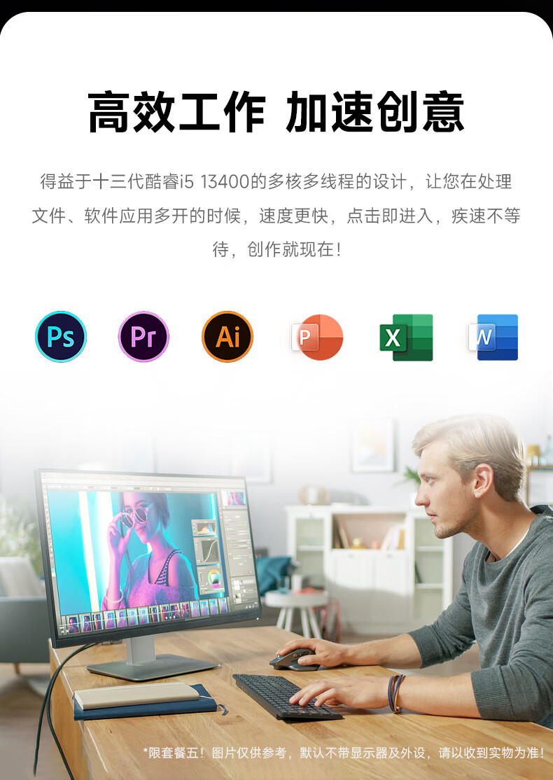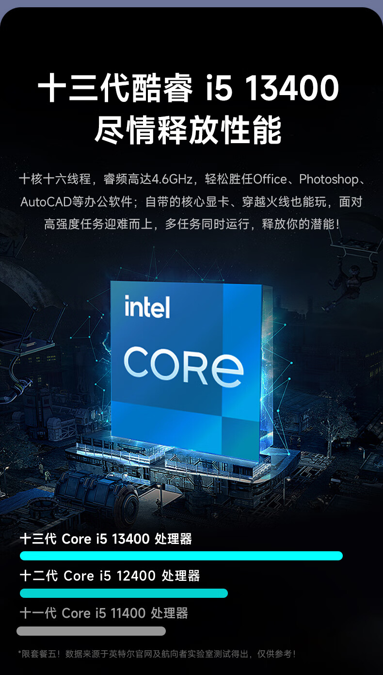 Yuqianlong 13th Generation Core i5 13400/16G/1TB Enterprise Procurement Office Design Commercial Multi-screen Home Gaming Desktop Computer Host DIY Assembly Computer Complete Set Four i5 12400F丨16G丨512G SSD