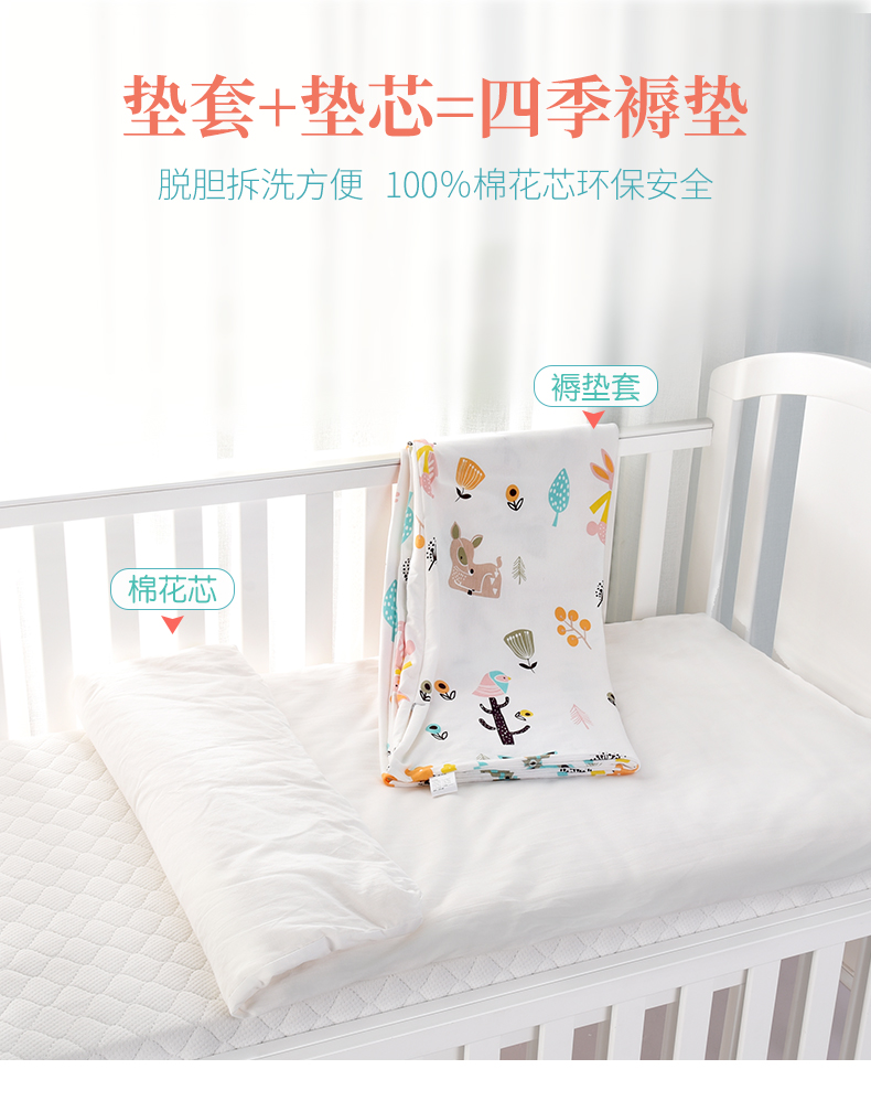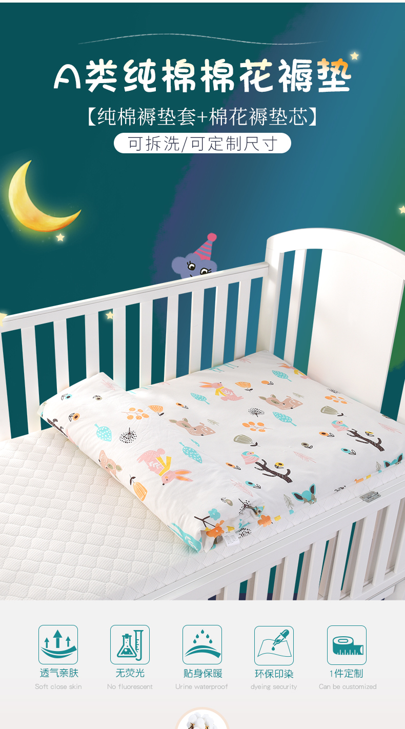 Good Baby Baby Mattress, universal baby mattress for all seasons, cotton baby kindergarten cotton mattress, children's mattress quilt, Dinosaur Paradise-cushion cover with core, removable and washable cotton pad 120*70