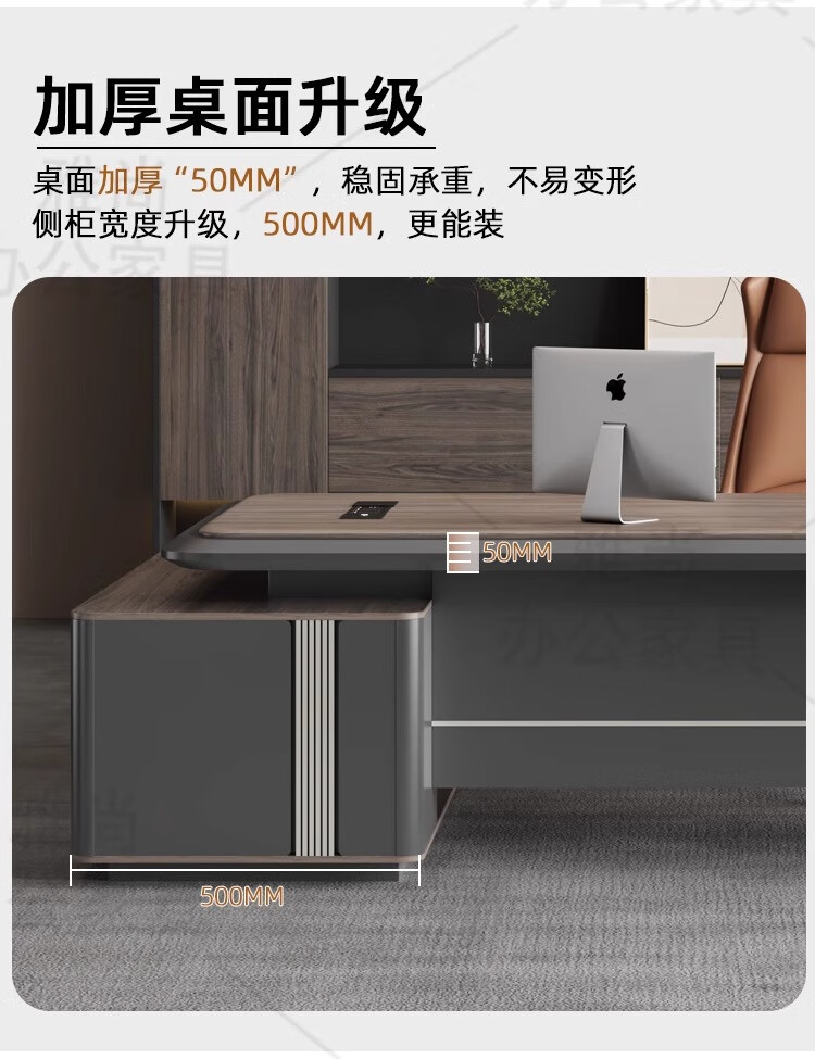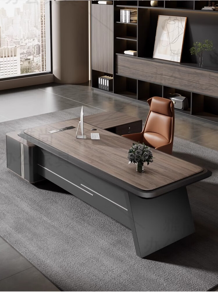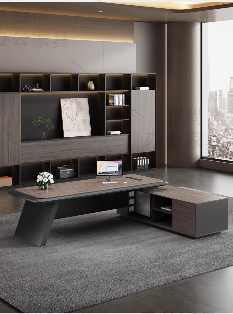Litang boss desk office desk and chair combination light luxury high-end executive desk chairman president manager office table 2.6 meters light luxury boss table + boss chair + six-door cabinet