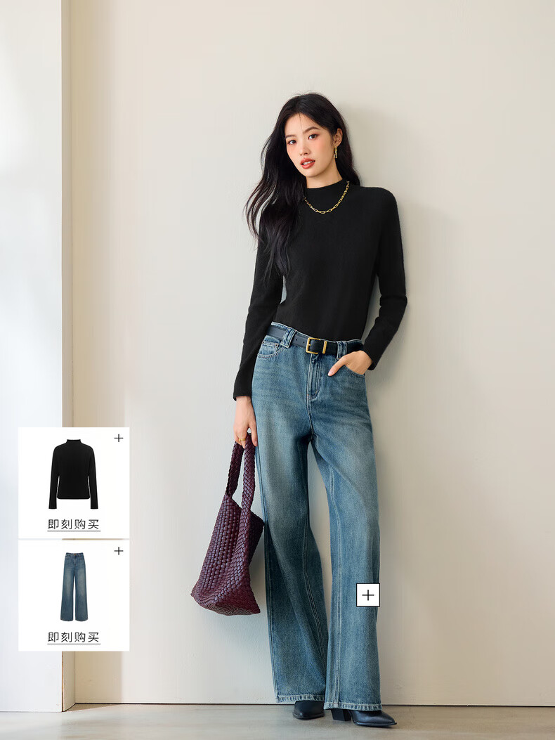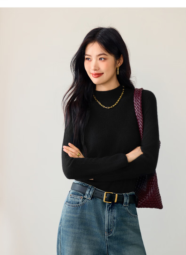 Eifini Jiang Xin endorsed all cashmere basic turtleneck pullover skin-friendly cashmere sweater top for women autumn new style black S 80-100Jin Jin is equal to 0.5 kg