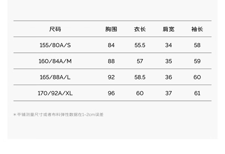 China (cm) 160-165/84-86 165-170 / 88-90 167-172 / 92-96 168-173 / 98-102 170-176 / 106-110