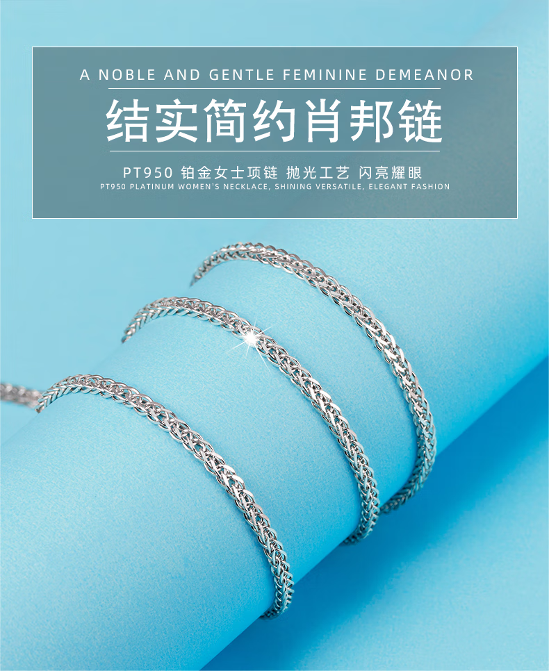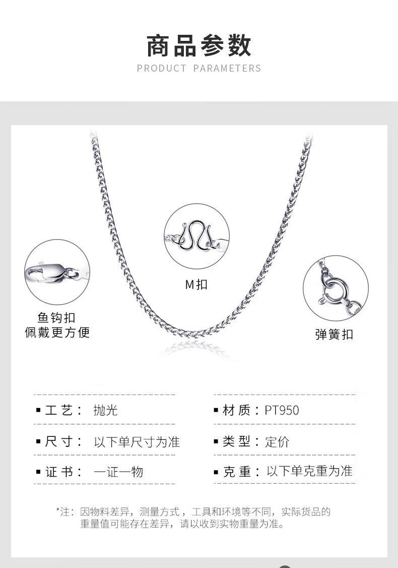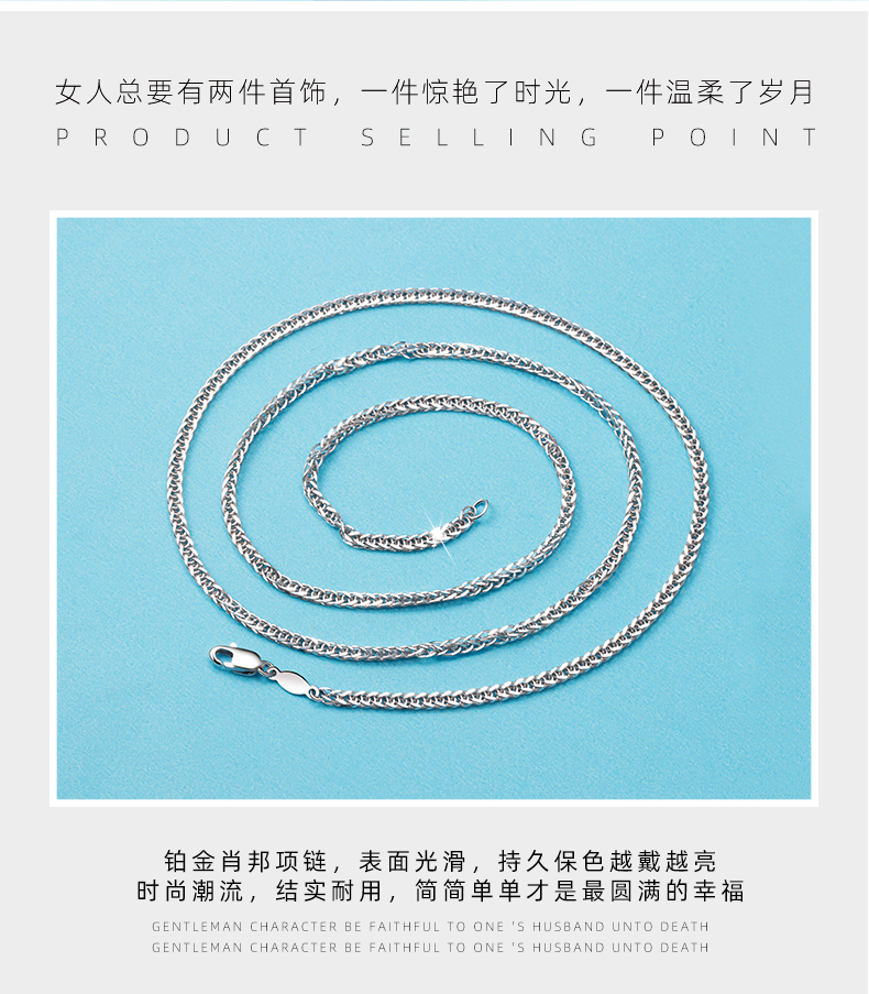 Lotus Pt950 platinum necklace women's Chopard chain platinum necklace men's and women's platinum plain chain platinum pendant clavicle chain 40cm long, about 2.15-2.3 grams in weight, 1.2mm thick