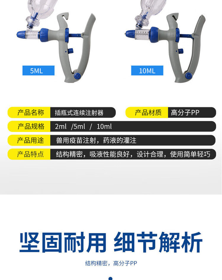 Vulgare veterinary continuous syringe, bottle-type syringe 2ml, 5ml, 10ml vaccine syringe for chickens, ducks, geese, cattle, sheep and pigs, Y-type bottle-type continuous syringe 2ml, no delivery