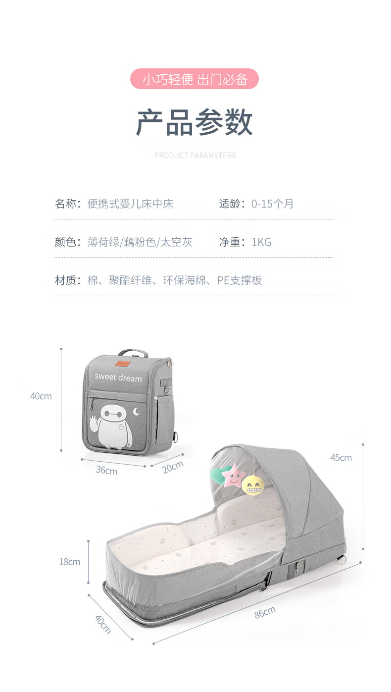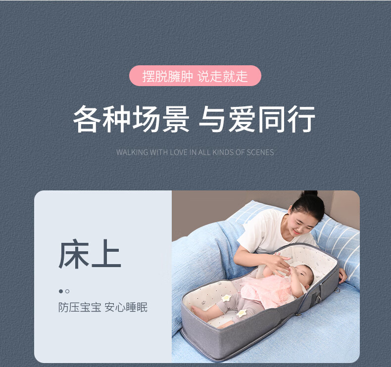 CLCEY Portable Bed-in-Bed Baby Baby Foldable Mobile Newborn Sleeping Bed Bionic Bed Anti-pressure New Style - Khaki Standard Style