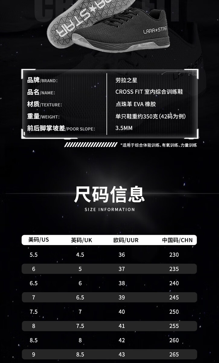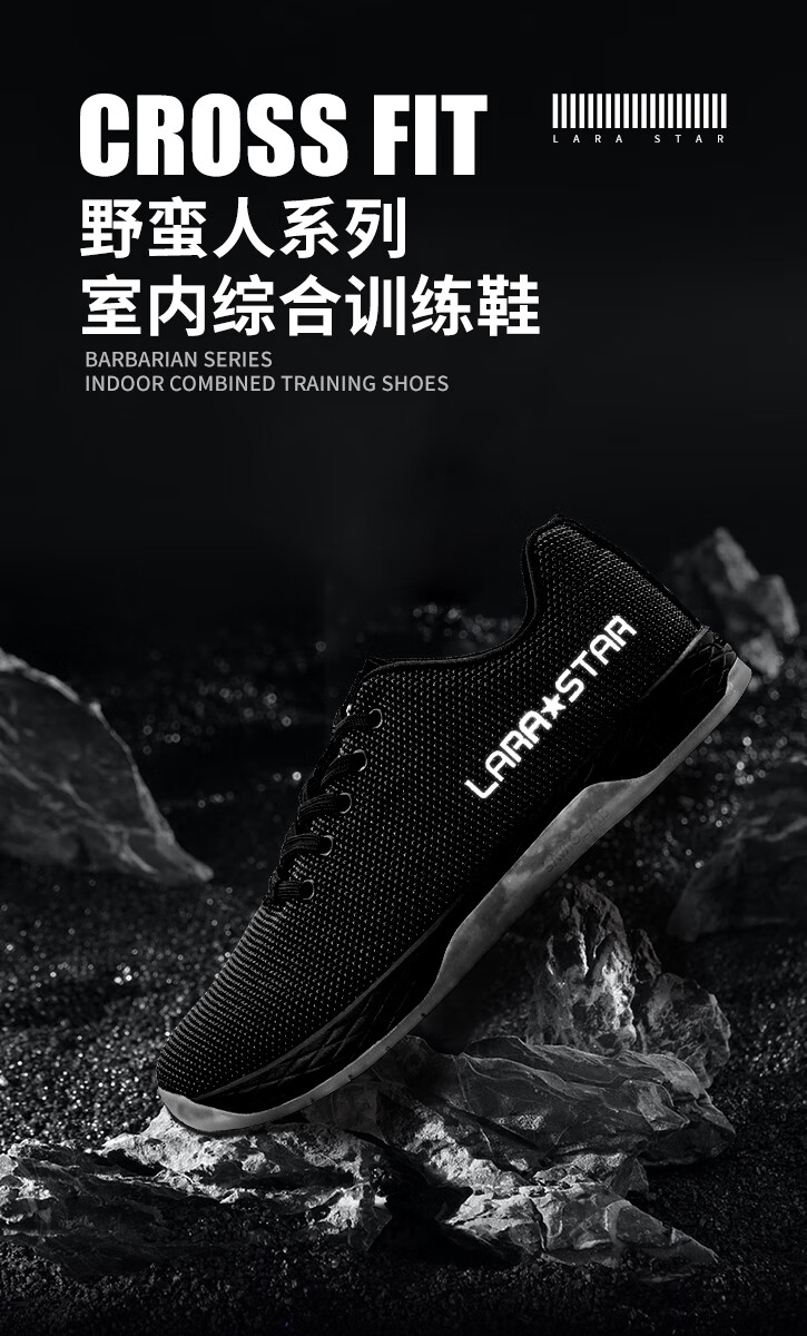 Laura Star 0087 Barbarian Series CF Comprehensive Training Shoes Soft Sole Running Skipping Rope Training Fitness Shoes Black Dotted Leather Upper EVA 40
