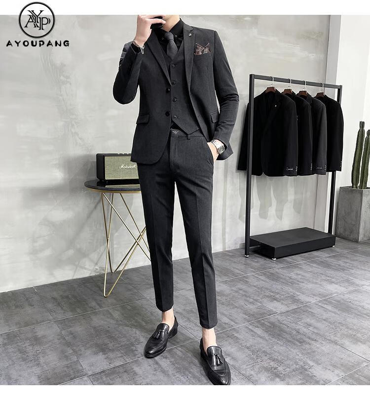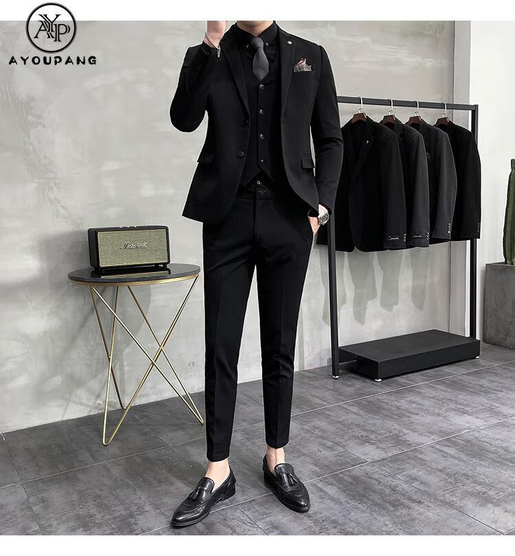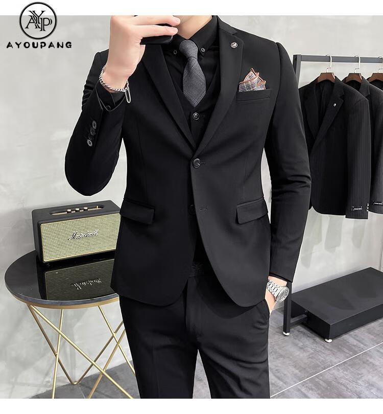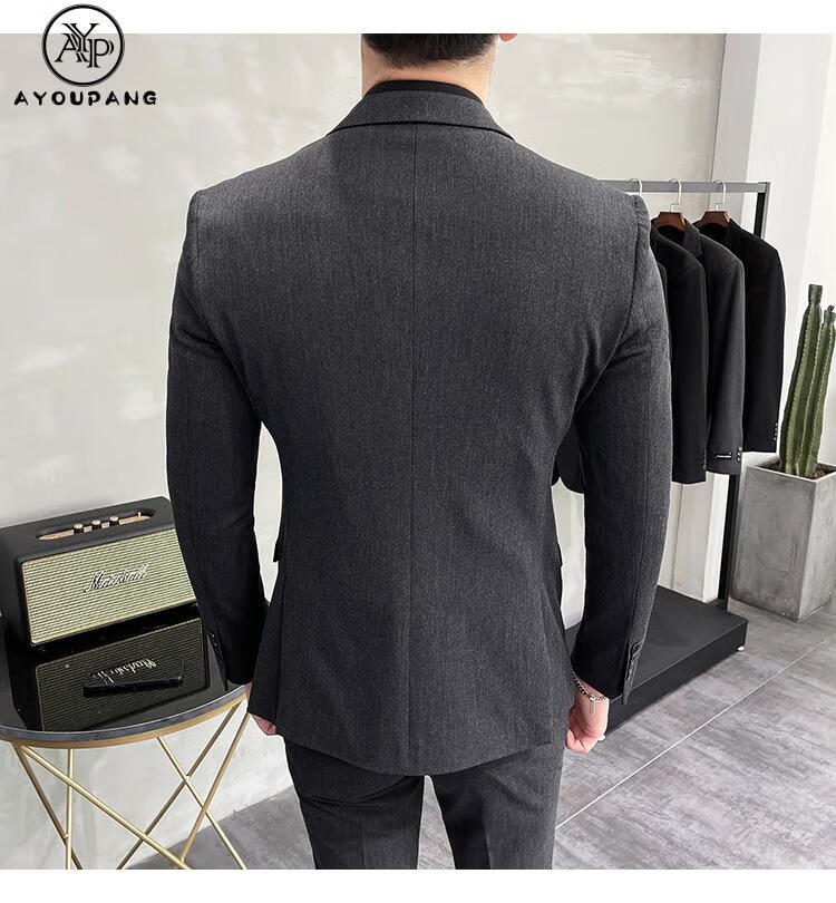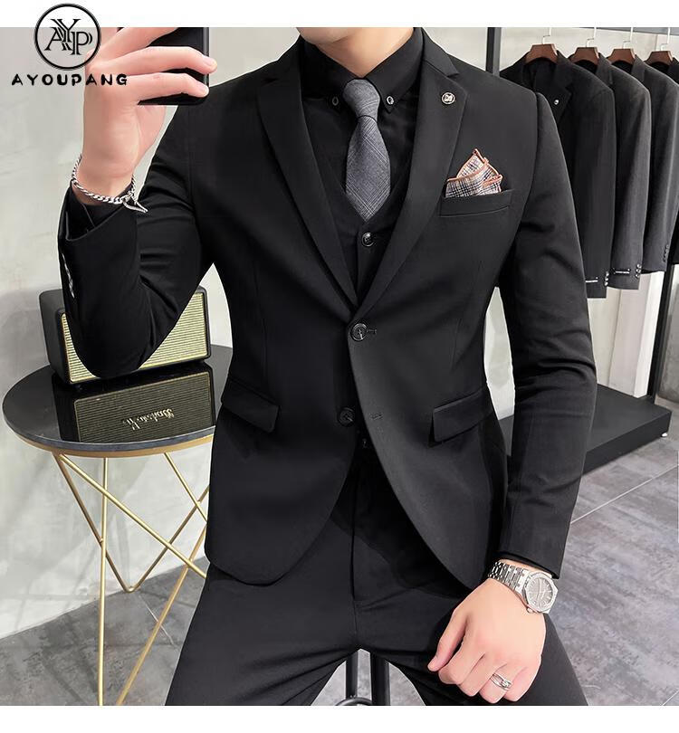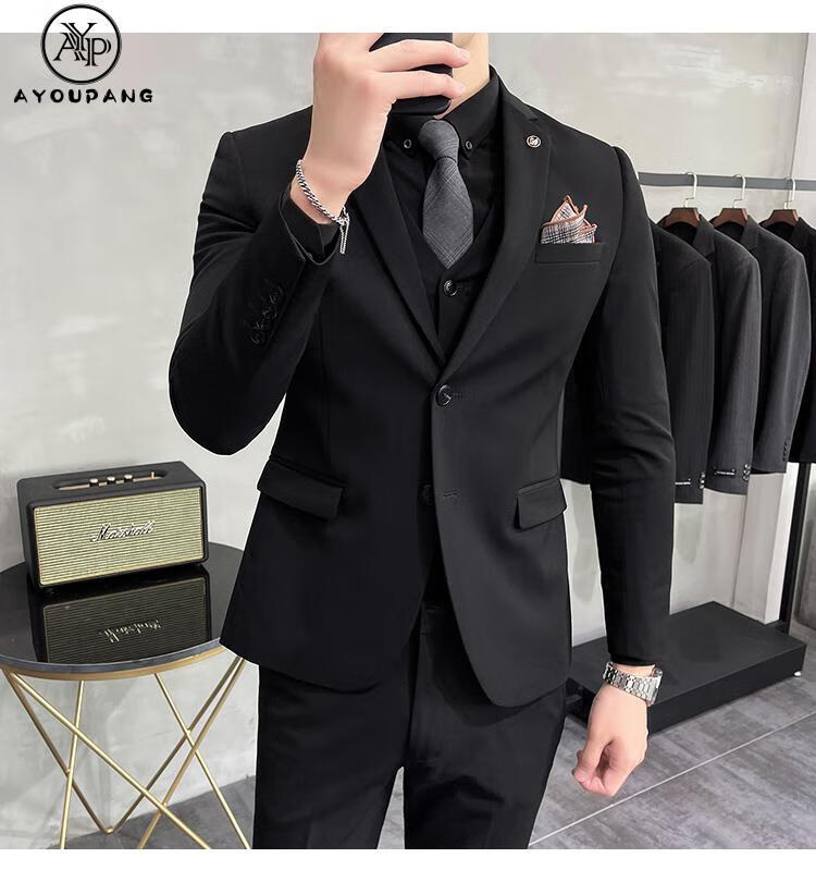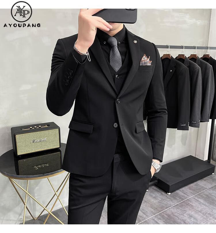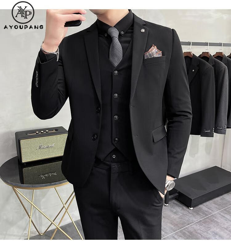 AYOUPANG large size suit suit male groom groomsman wedding dress business commuting workwear professional interview slim suit black single suit L 120-130Jin Jin is equal to 0.5 kg