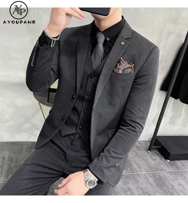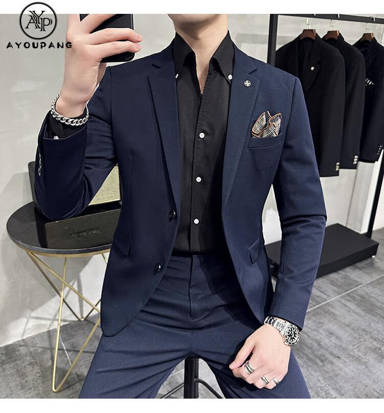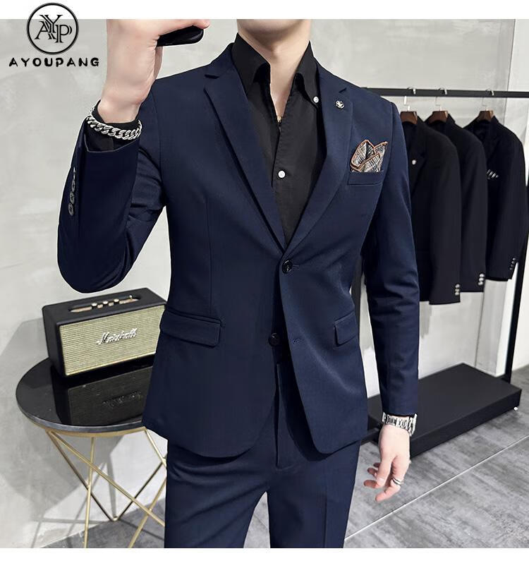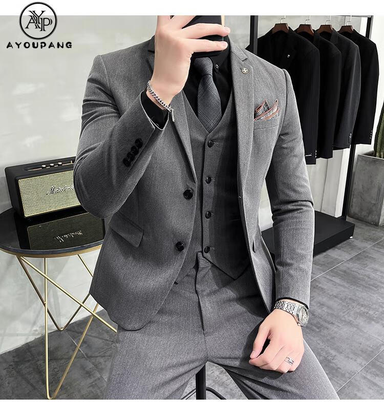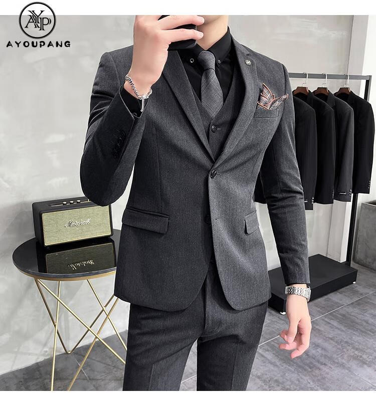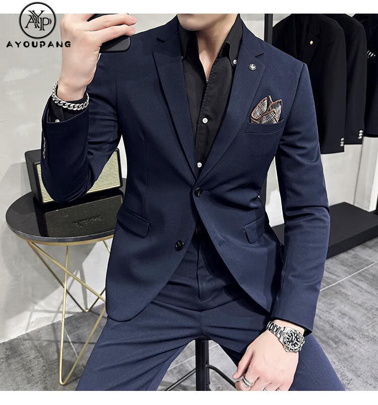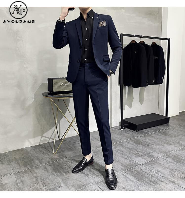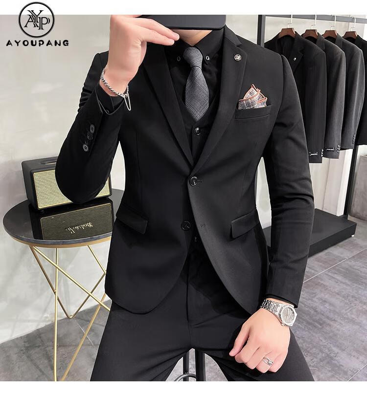 AYOUPANG large size suit suit male groom groomsman wedding dress business commuting workwear professional interview slim suit black single suit L 120-130Jin Jin is equal to 0.5 kg