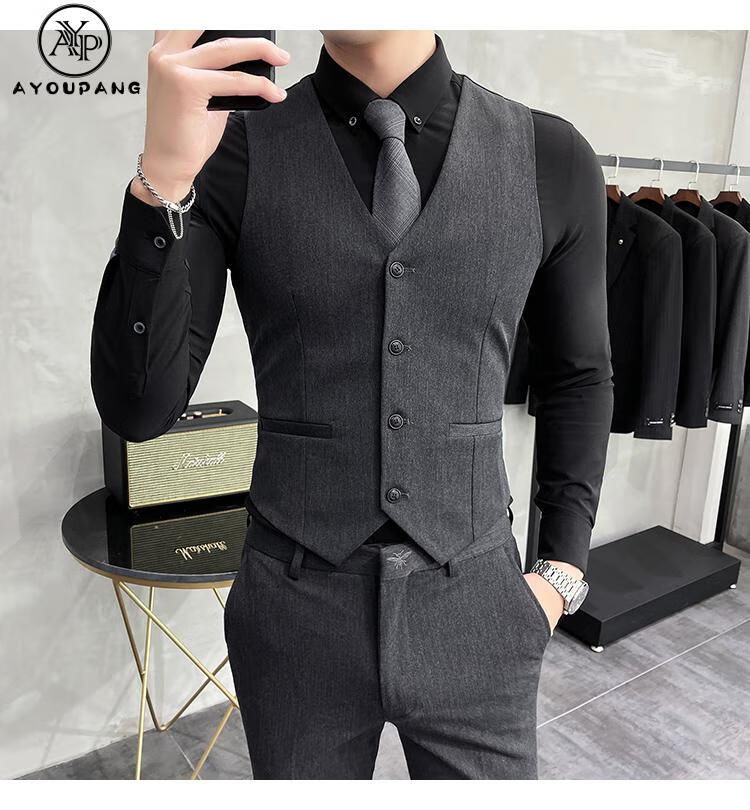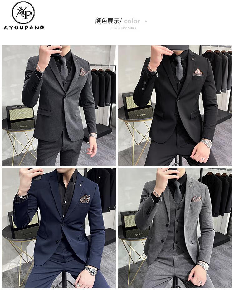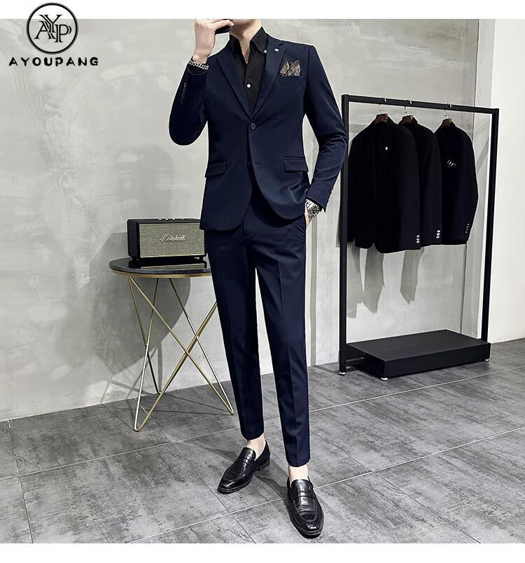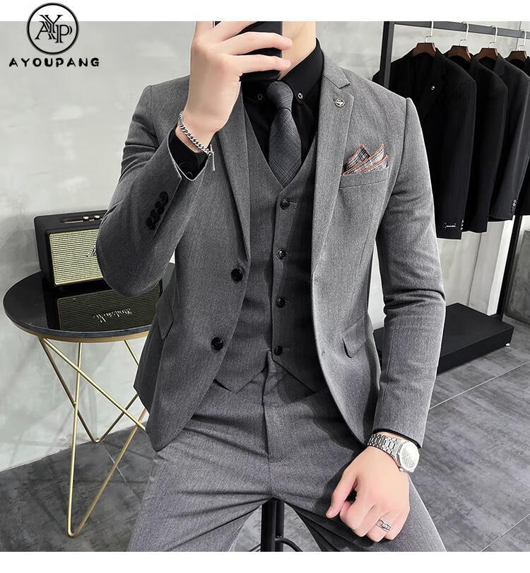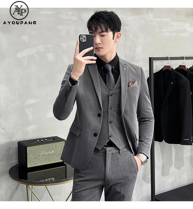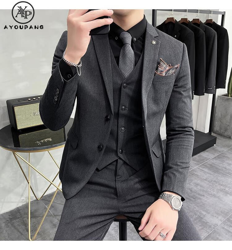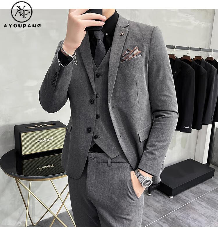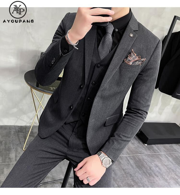 AYOUPANG large size suit suit male groom groomsman wedding dress business commuting workwear professional interview slim suit black single suit L 120-130Jin Jin is equal to 0.5 kg