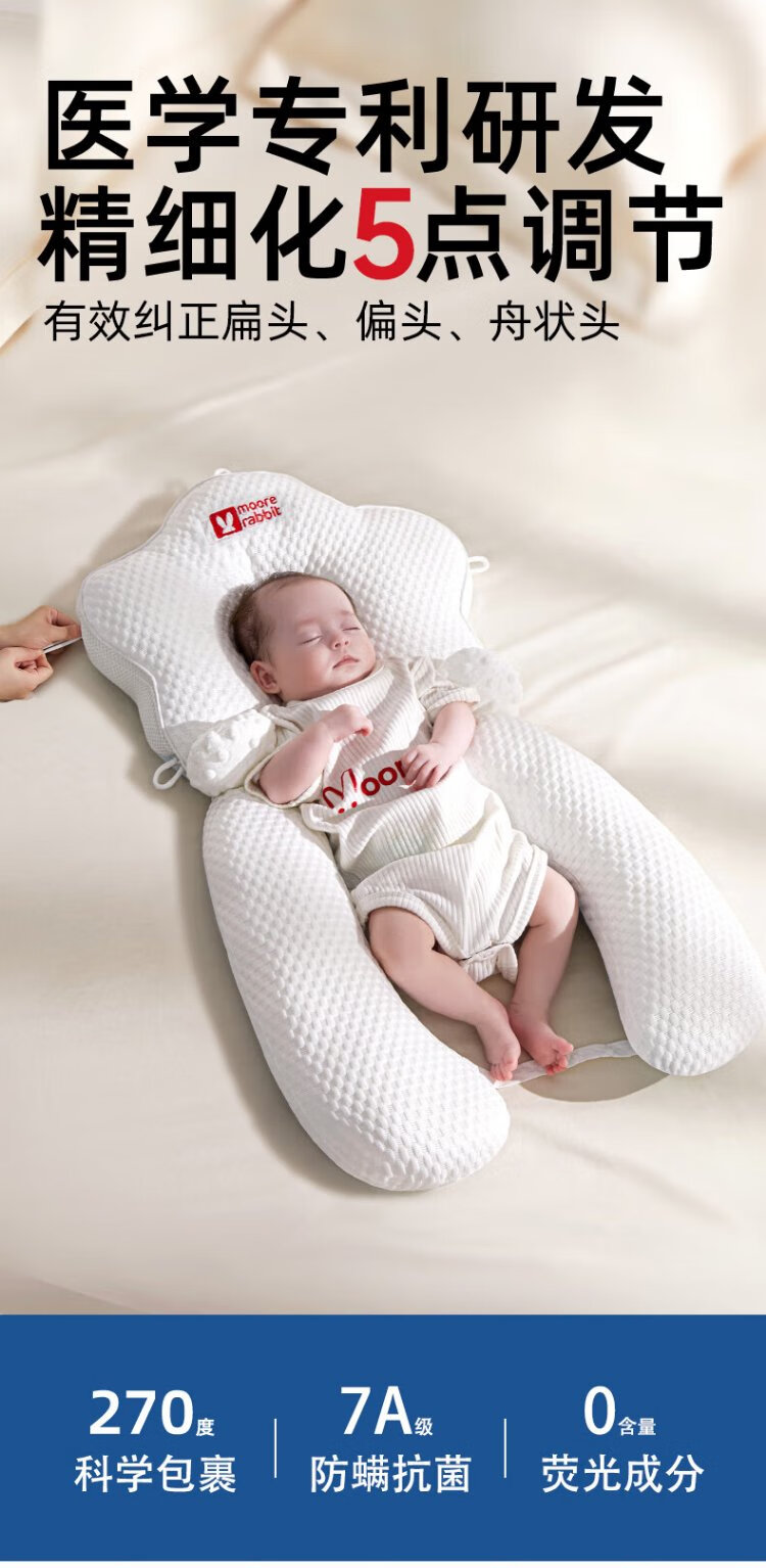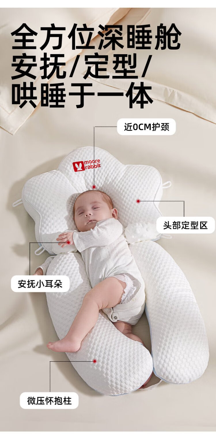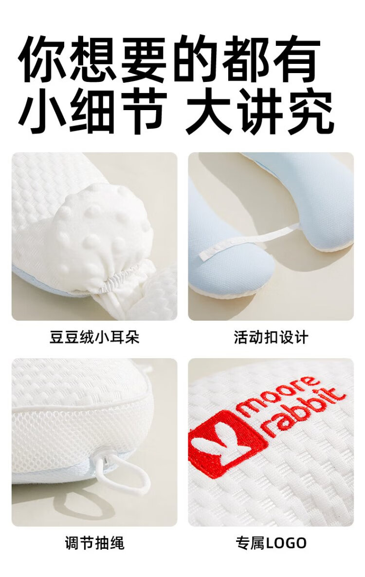 More Rabbit Baby Shaping Pillow 0 to 6 months and above soothes babies to sleep on their stomachs and corrects their head shape. Special starfish pillow for newborns. Five-way adjustment to fix the head shape. Baby Blue