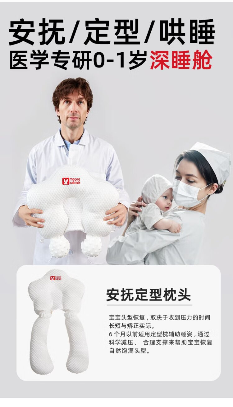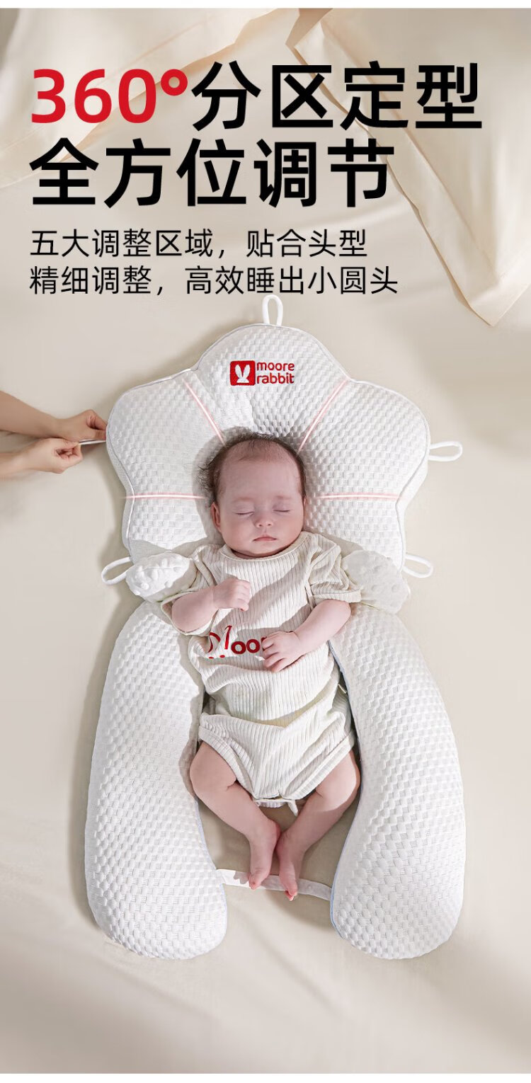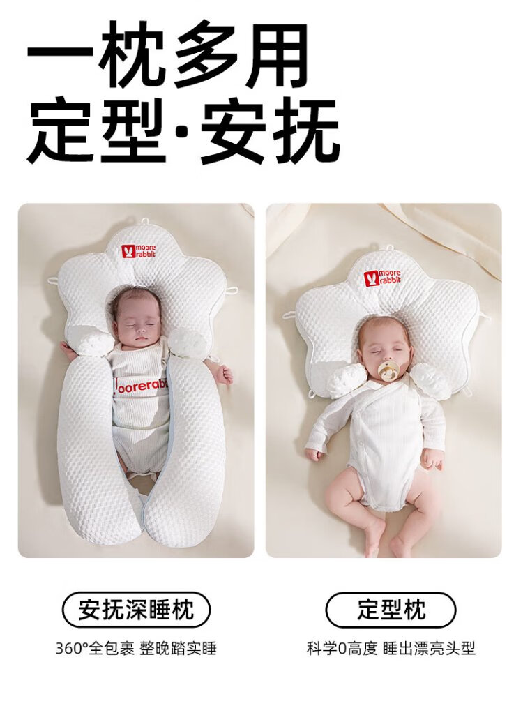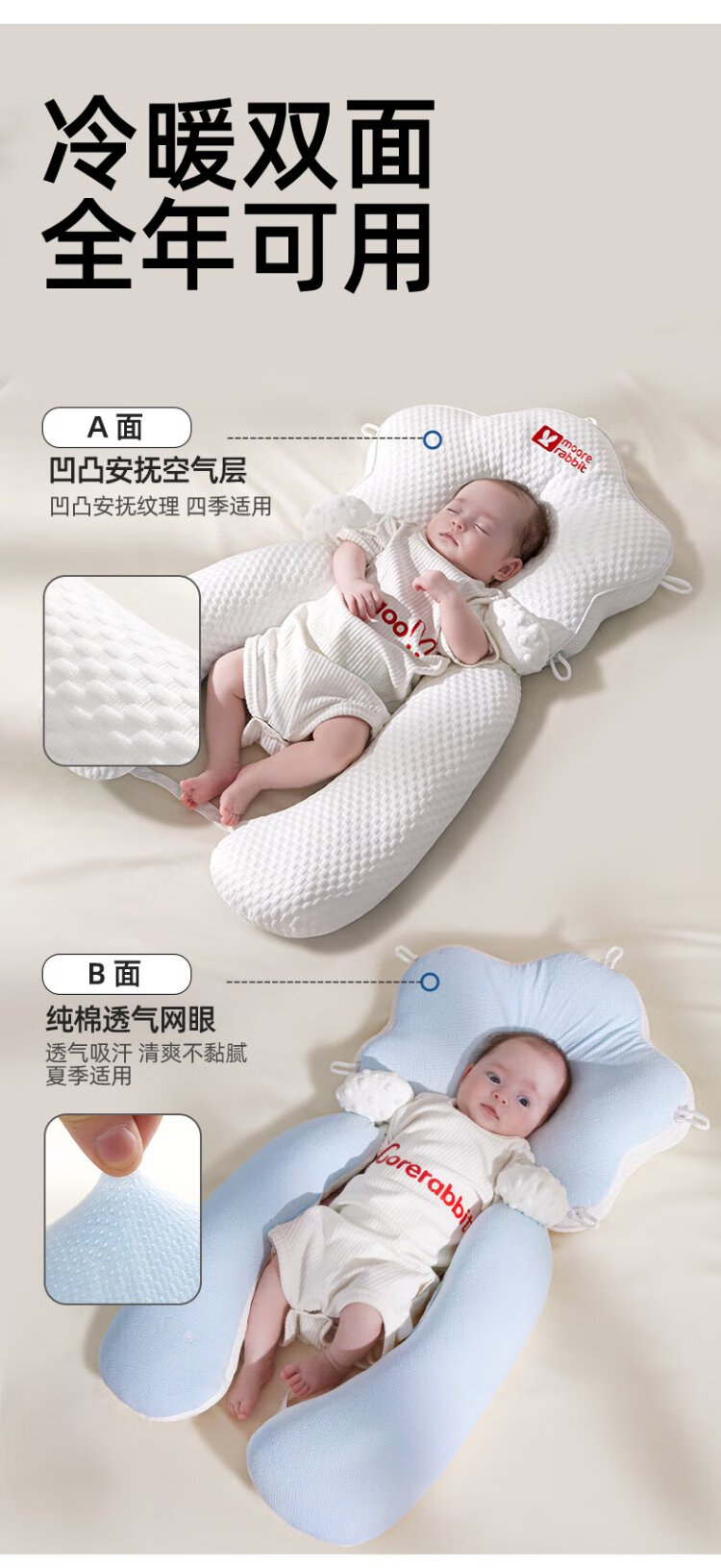 More Rabbit Baby Shaping Pillow 0 to 6 months and above soothes babies to sleep on their stomachs and corrects their head shape. Special starfish pillow for newborns. Five-way adjustment to fix the head shape. Baby Blue