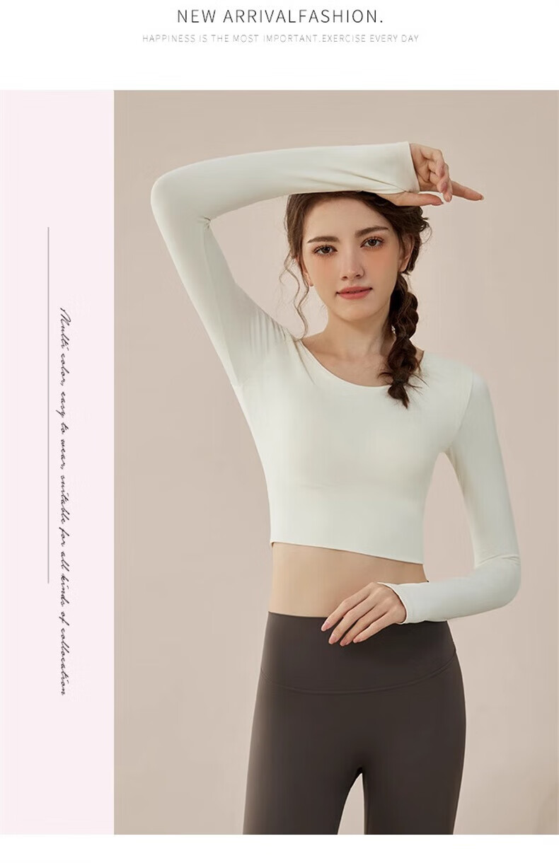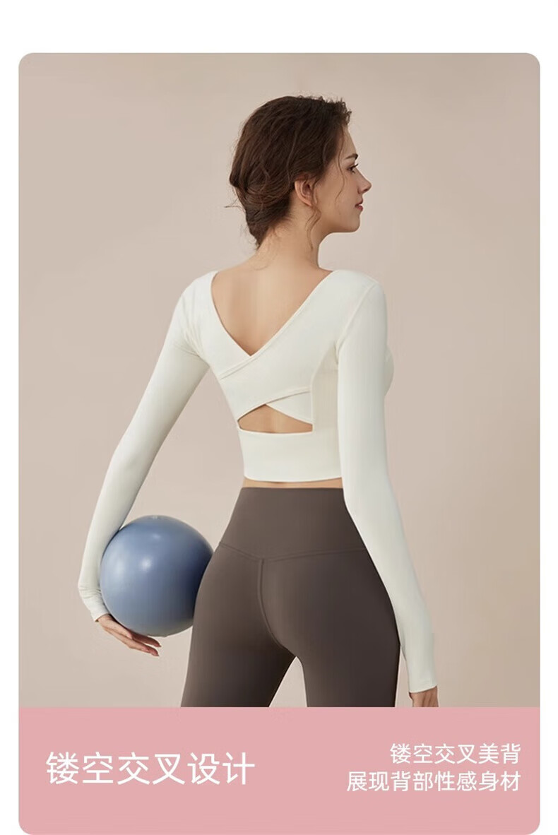 Youyou yoga clothes for women 2025 new spring and summer suit fitness clothes Pilates long-sleeved tops with chest pads 34002 Twilight coffee + gray yoga pants S (recommended weight 85-100 Jin Jin equals 0.5 kg)
