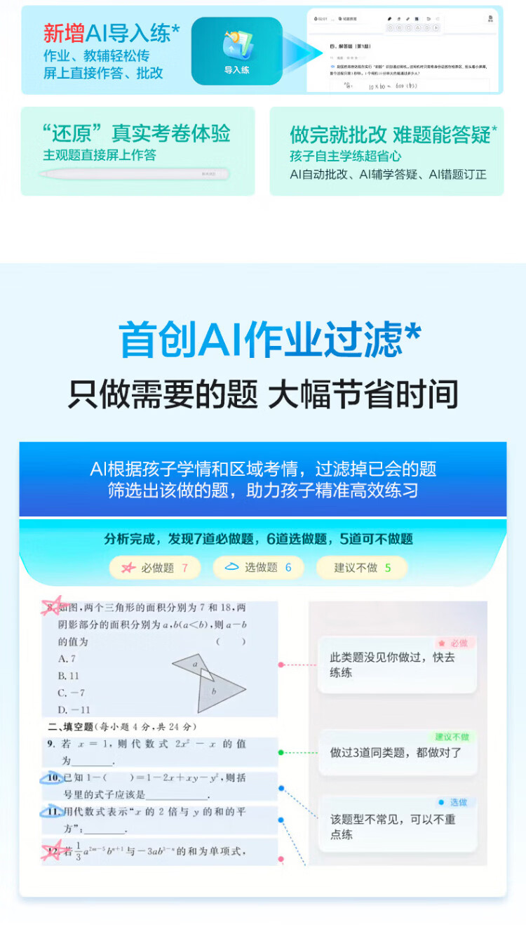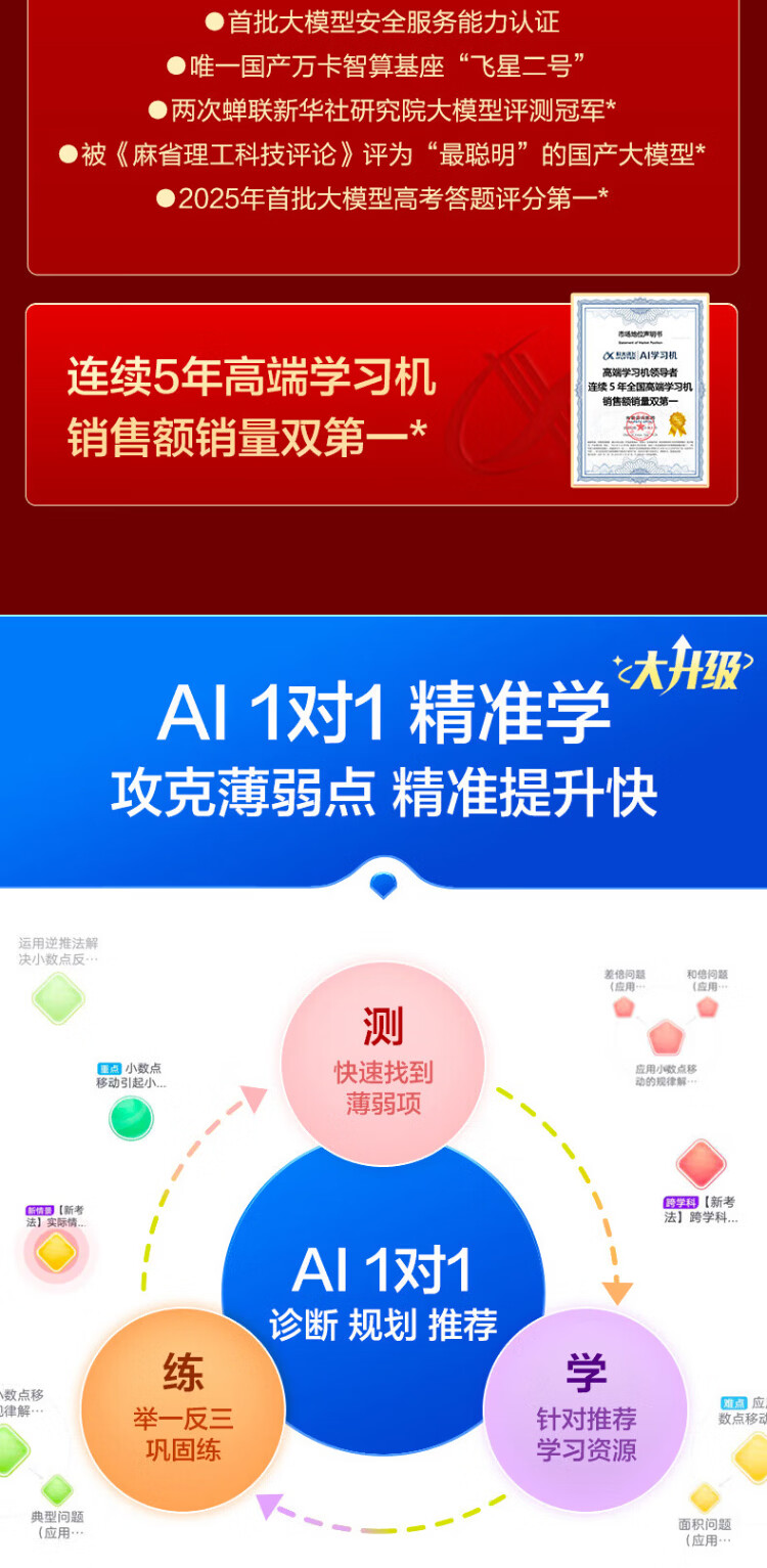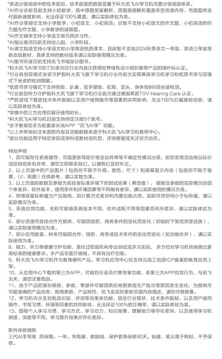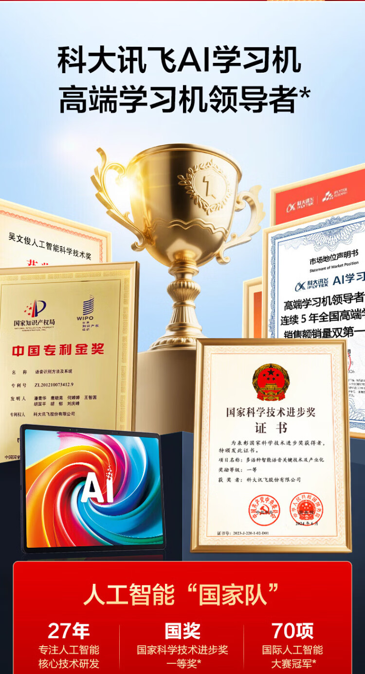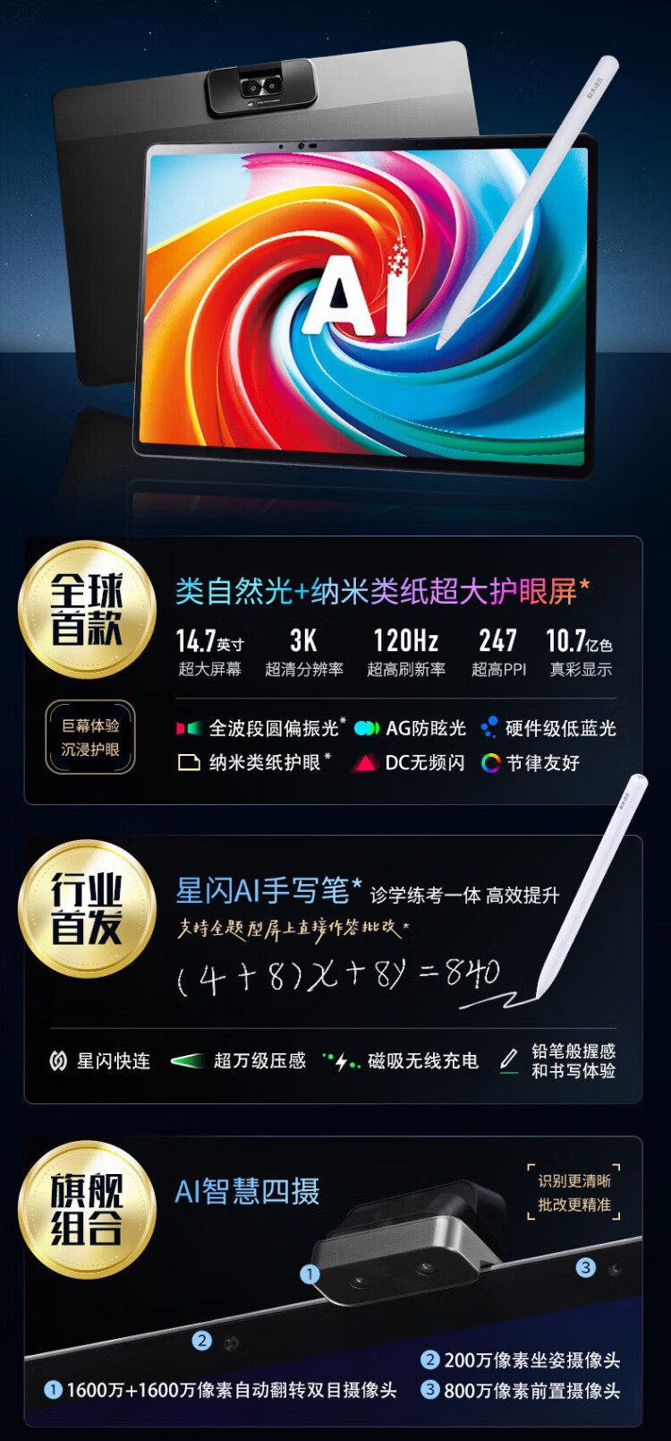 IFLYTEK Artificial Intelligence Learning Machine T30Pro/T30 Lite Primary School Junior High School High School AI Accurate Question Answering Spark+DeepSeek Large Screen Eye Protection Student Tablet Tutoring Machine T30 Pro 12+512G 14.7-inch Large Screen