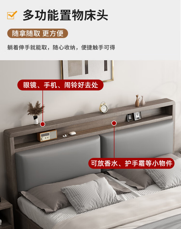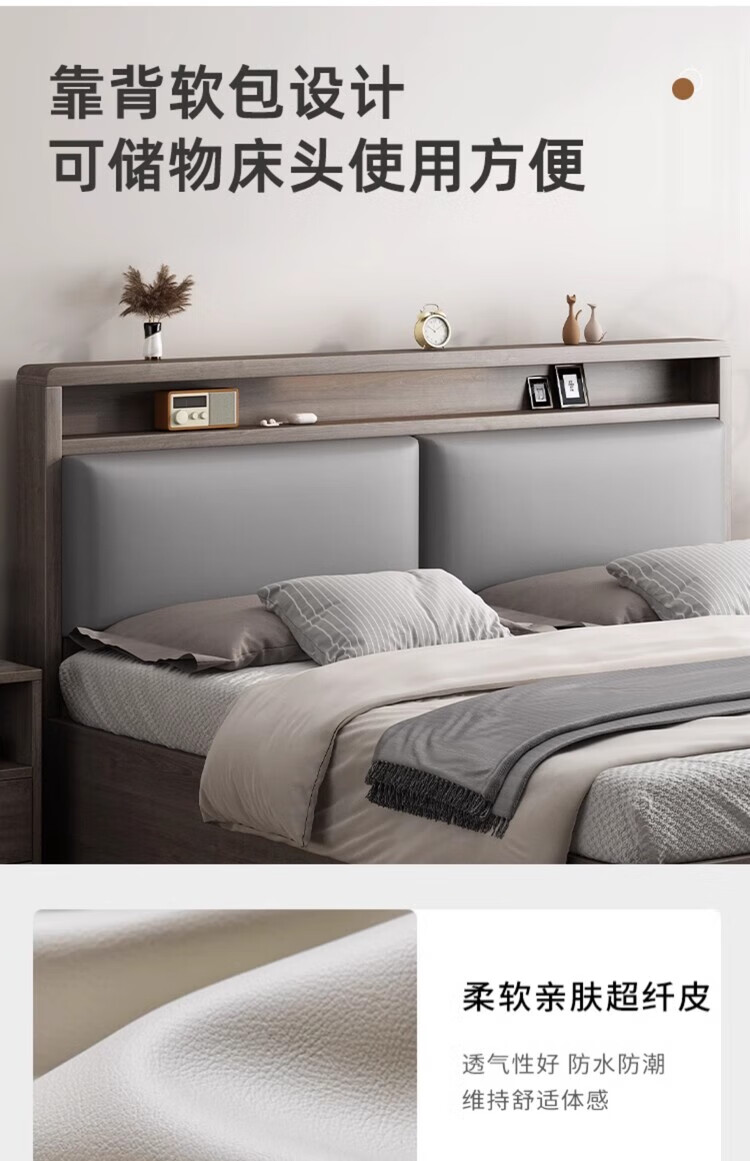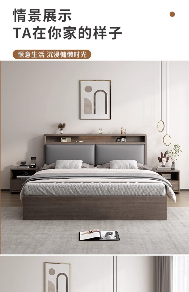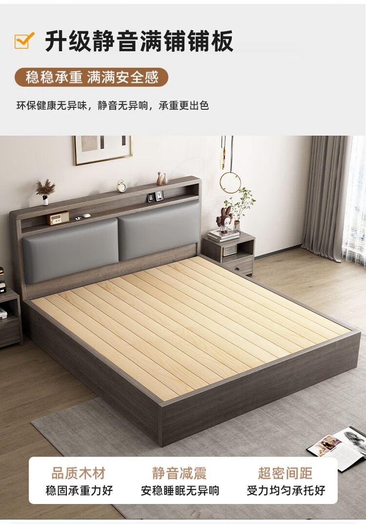 Edith bed solid wood bed modern simple 1.5m master bedroom double bed rental room soft package storage large bed 1.8 single bed gray single bed 1500mm*2000mm