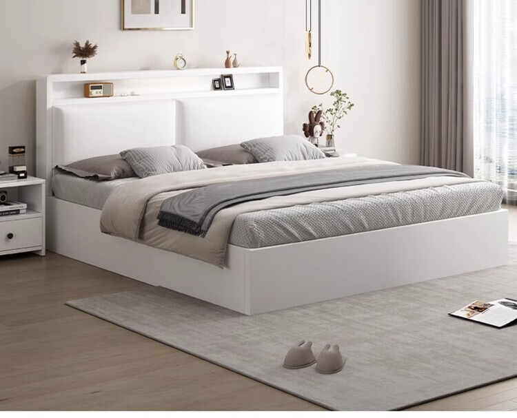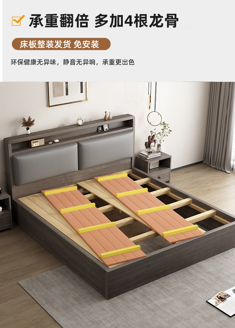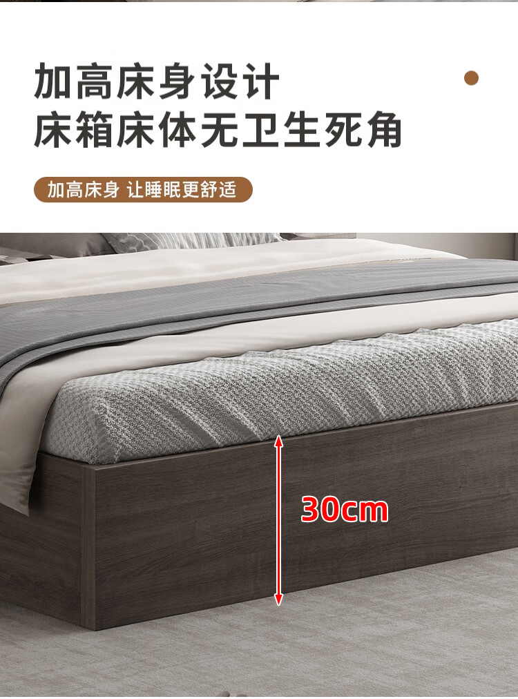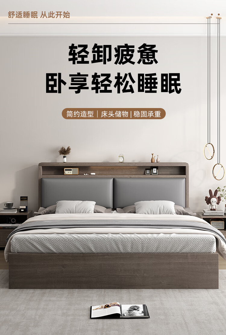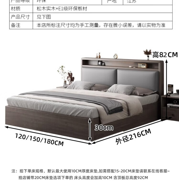 Edith bed solid wood bed modern simple 1.5m master bedroom double bed rental room soft package storage large bed 1.8 single bed gray single bed 1500mm*2000mm