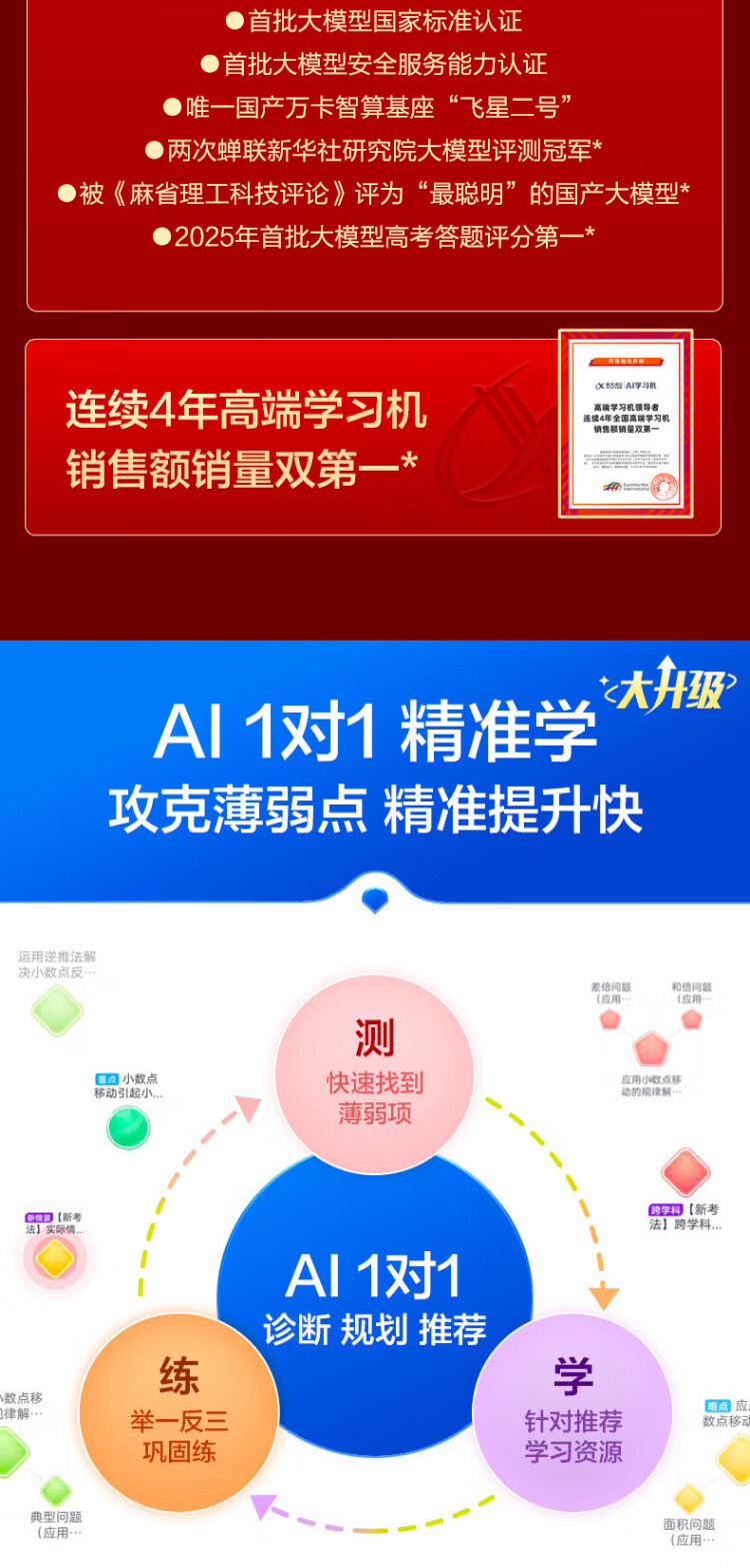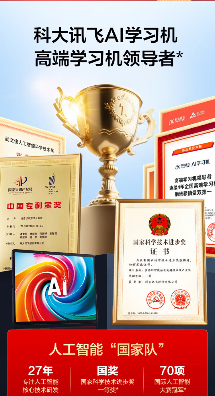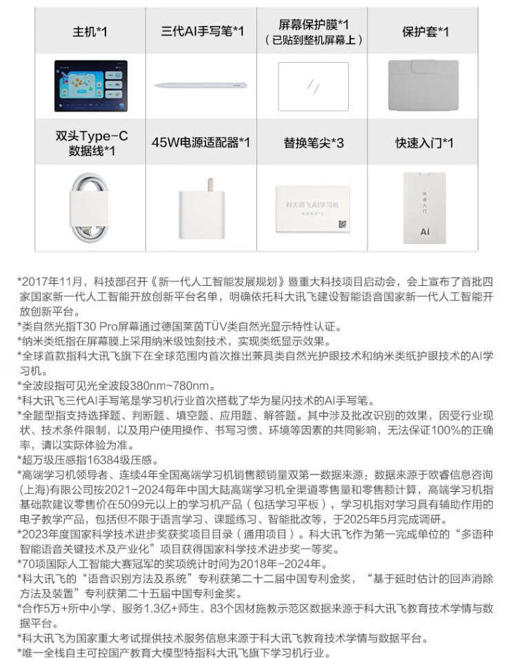 IFLYTEK Artificial Intelligence Learning Machine T30Pro/T30 Lite Primary School Junior High School High School AI Accurate Question Answering Spark + DeepSeek Large Screen Eye Protection Student Tablet Tutoring Machine T30 Lite 8+512G 12.5 inches