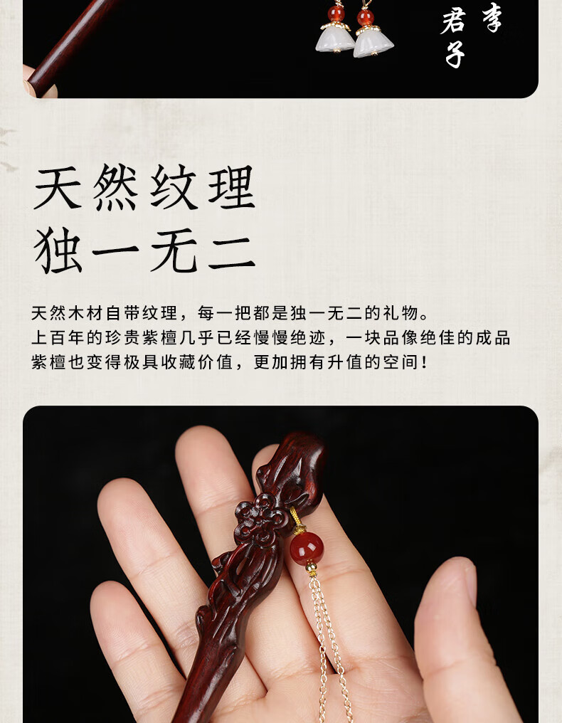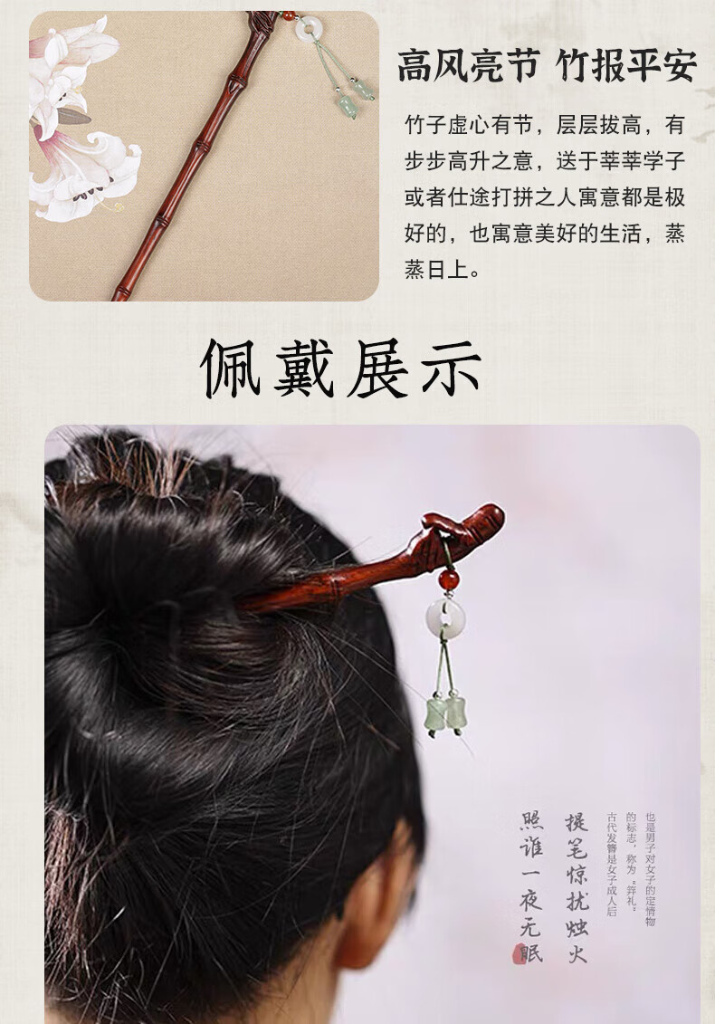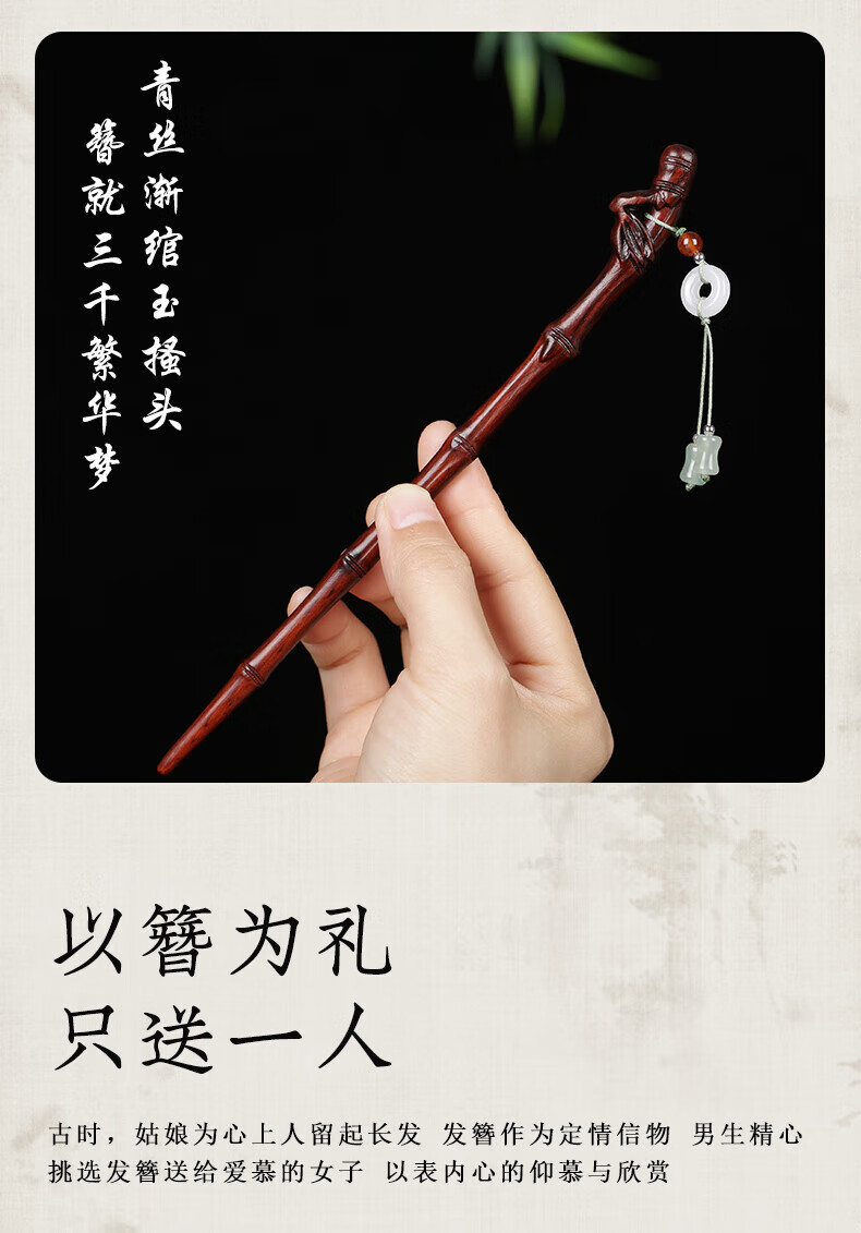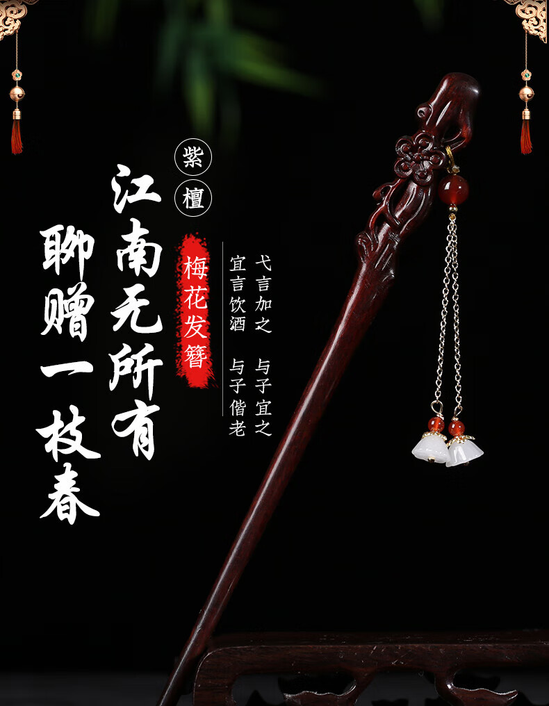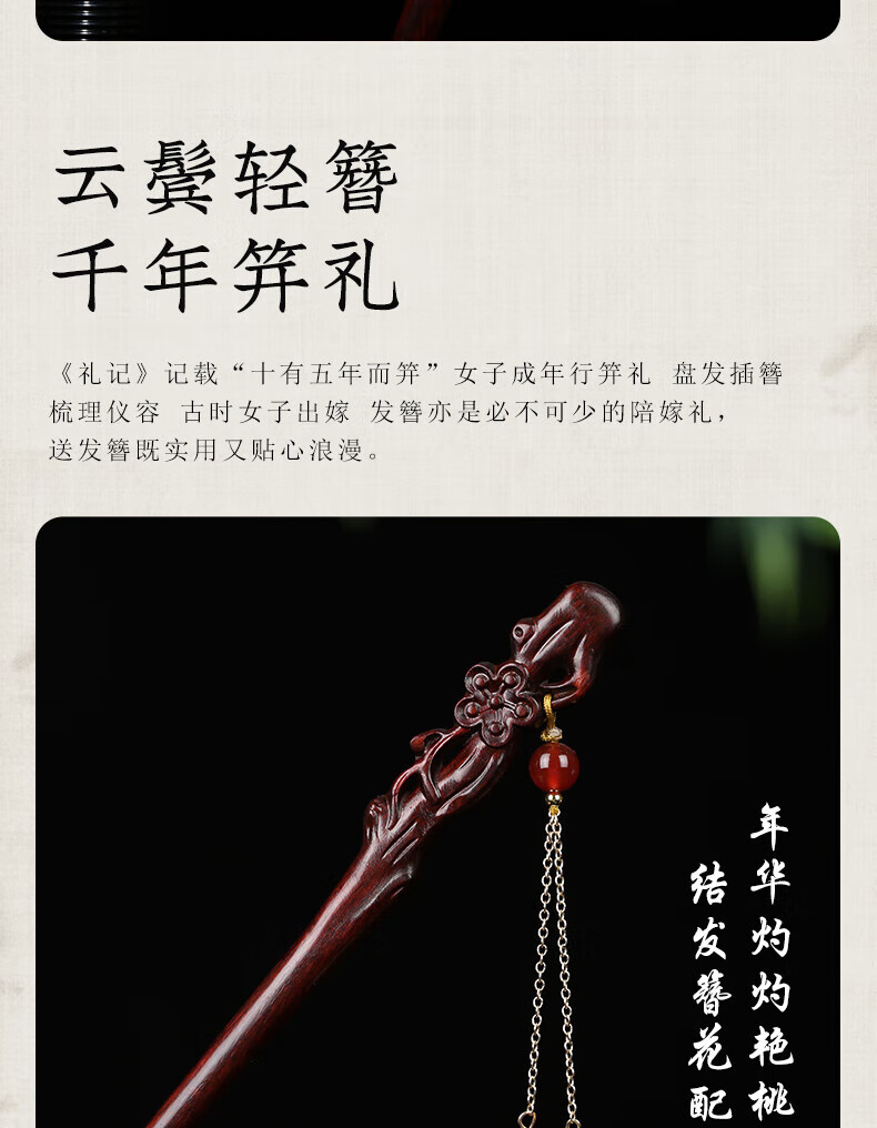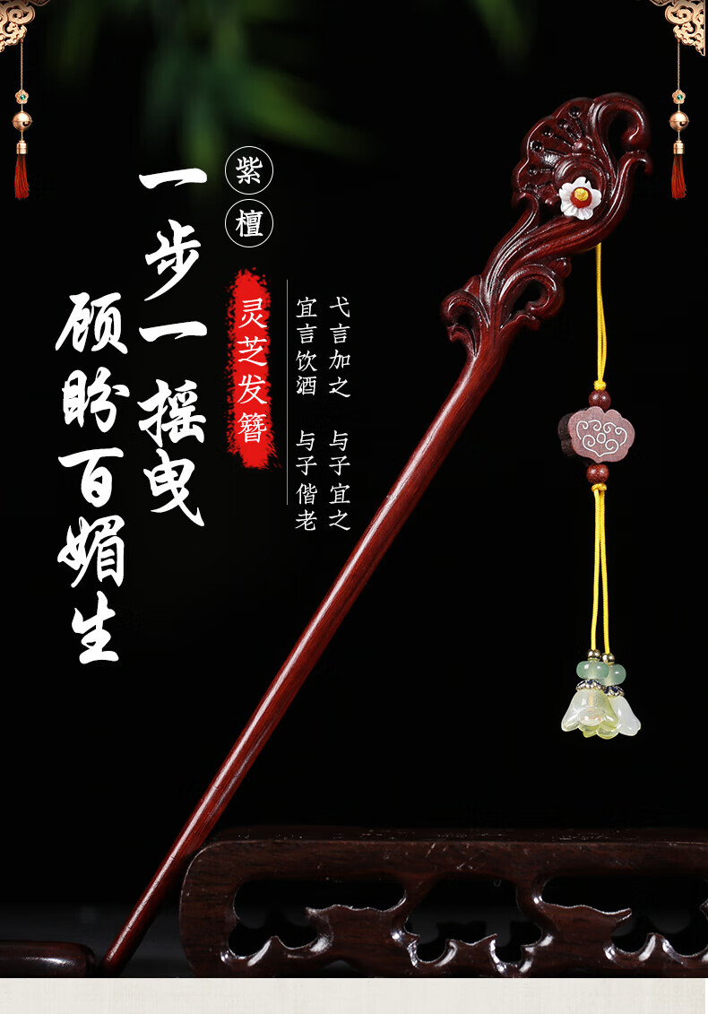 Mansontang small-leaf rosewood wooden hairpin for women, new Chinese style antique style hairpin for women, Chinese Valentine's Day gift for women, Ganoderma lucidum and rosewood hairpin