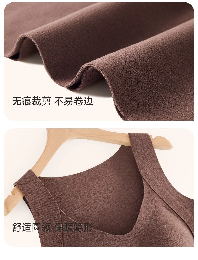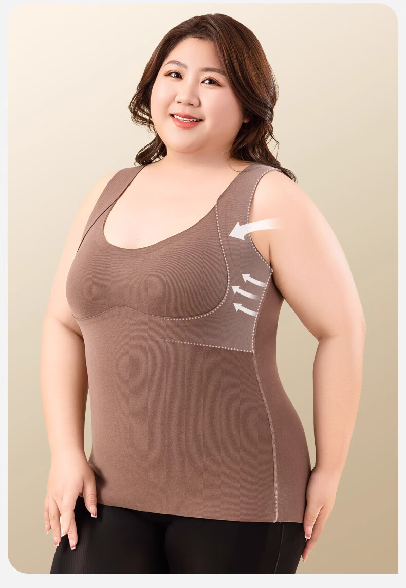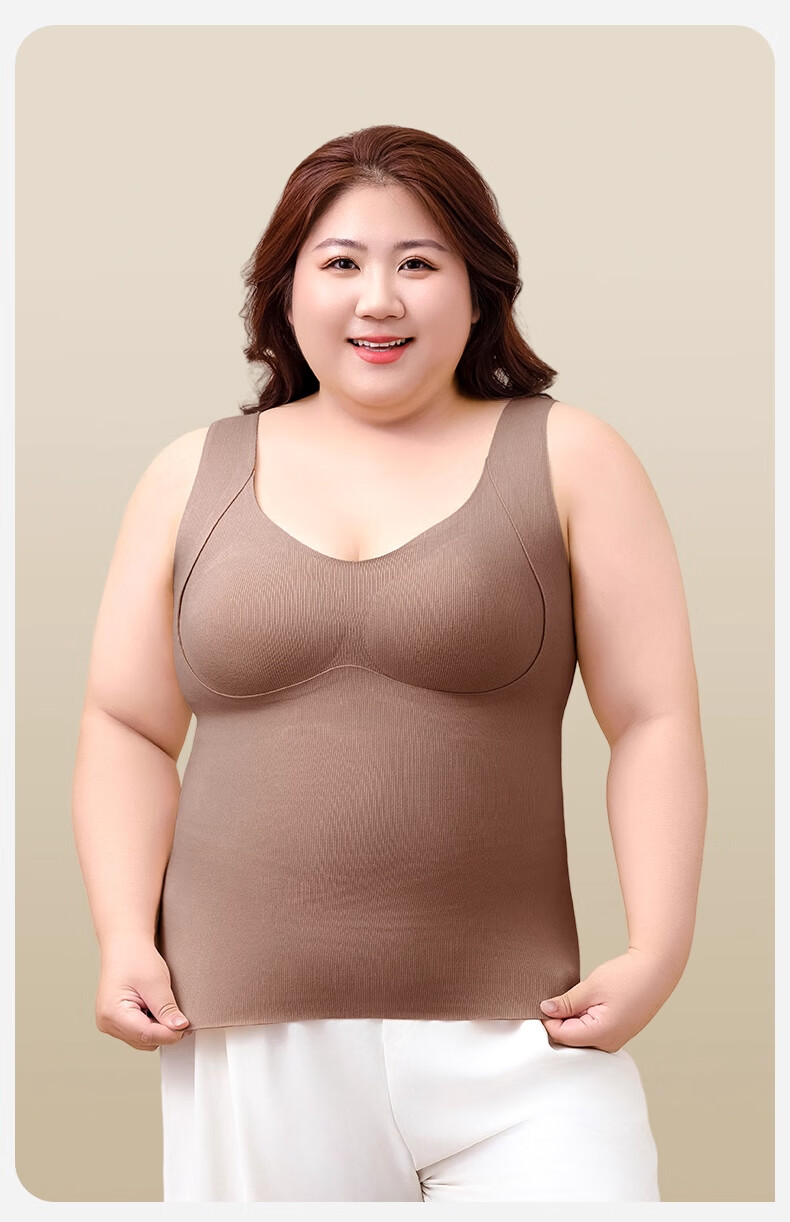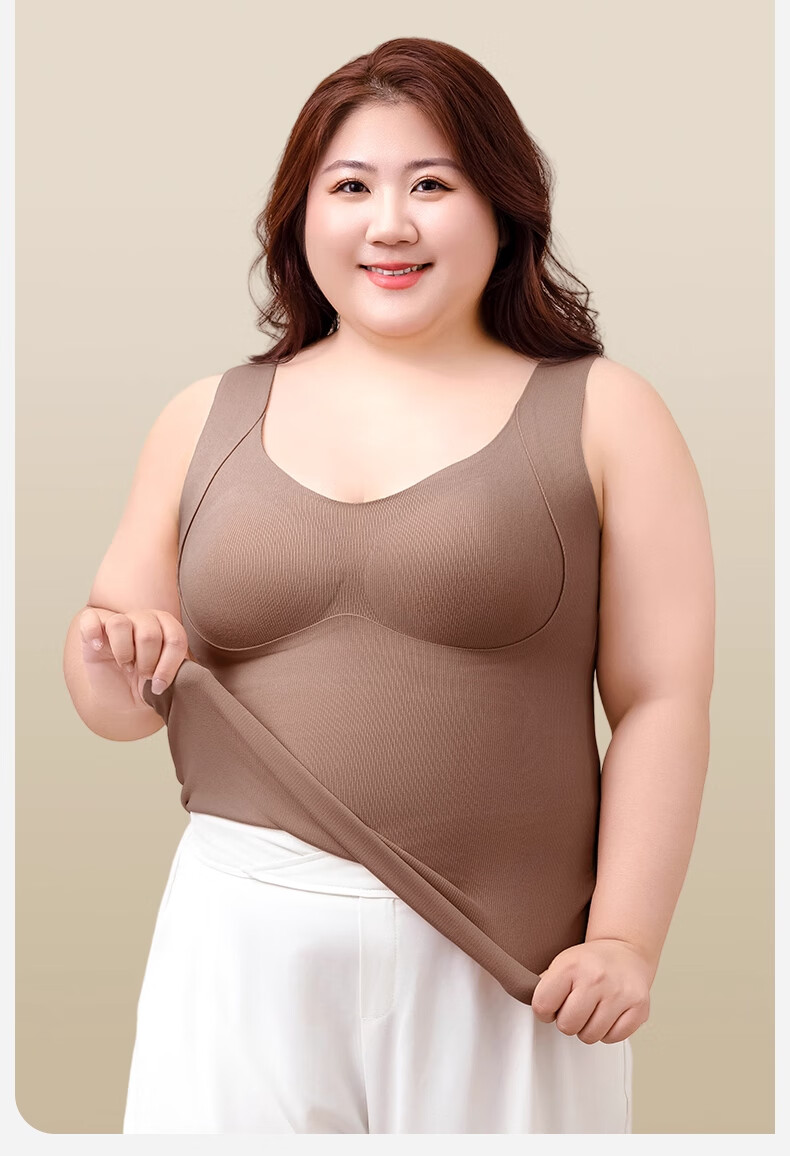 美·雅·挺无痕大码保暖背心女200斤内搭加绒免穿文胸自带胸垫德绒保暖内衣 【大码单件】咖啡 3XL 【建议150-180斤】