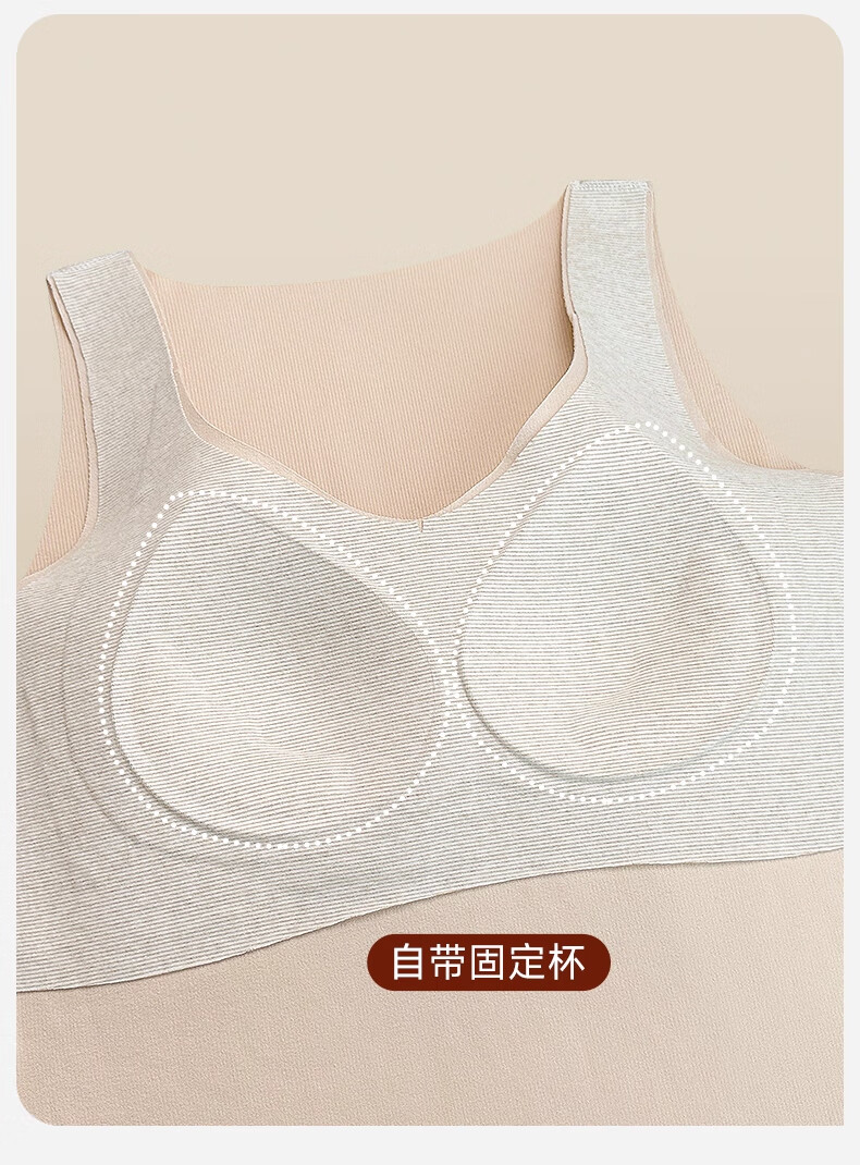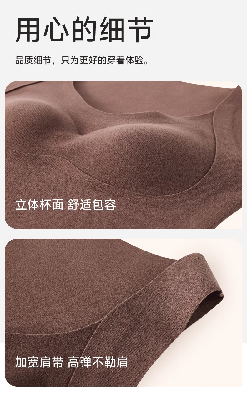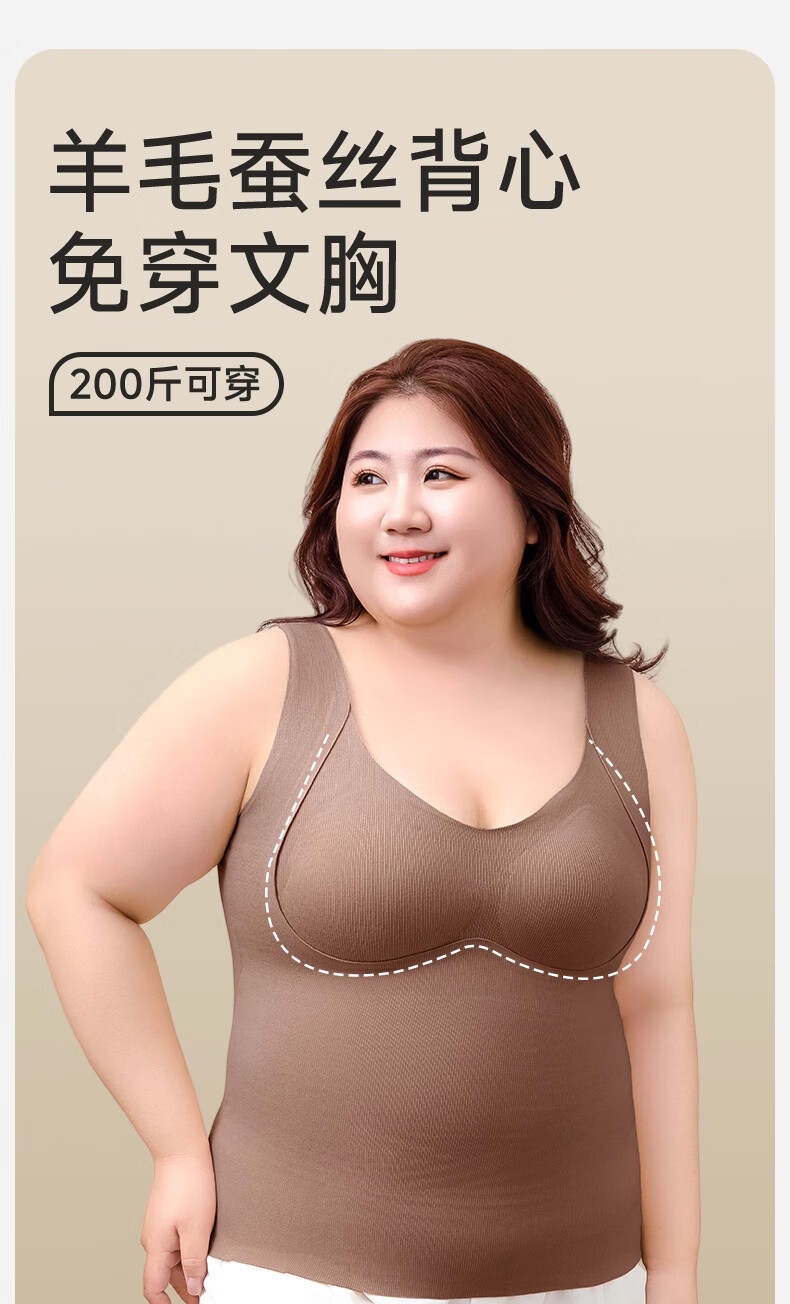 美·雅·挺无痕大码保暖背心女200斤内搭加绒免穿文胸自带胸垫德绒保暖内衣 【大码单件】咖啡 3XL 【建议150-180斤】