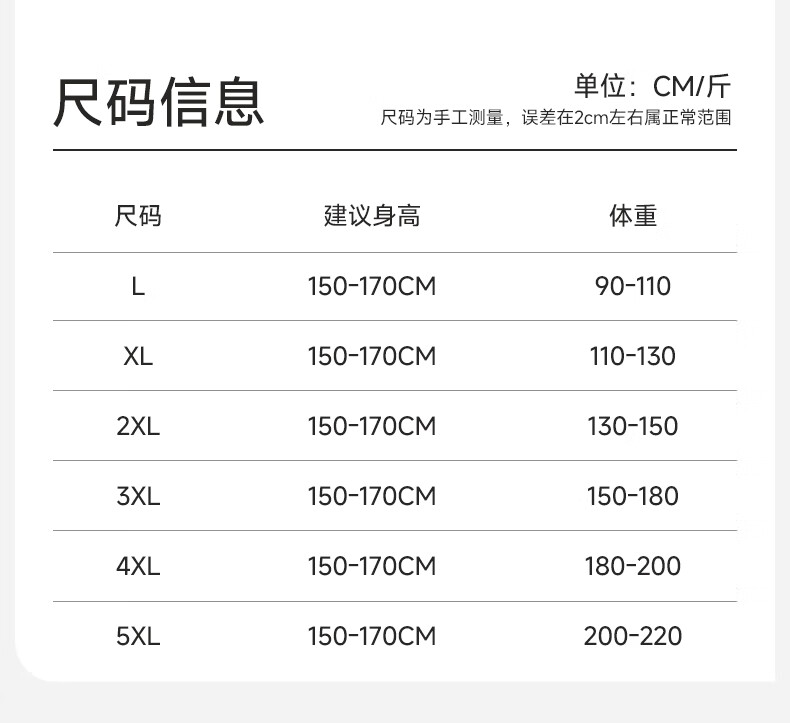 China (cm) 165 / 88-90 170 / 96-98 175 / 108-110 180 / 118-122 185 / 126-130