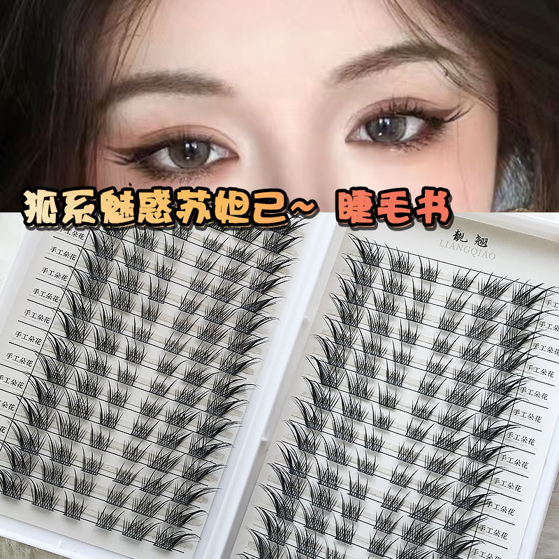 Beautiful Su Daji Fox type false eyelashes large capacity eyelash book combination oblique flying fox type thick exaggerated eye tail extension 32 rows large capacity Su Daji eyelash book 192 clusters single box of eyelashes (no tools)