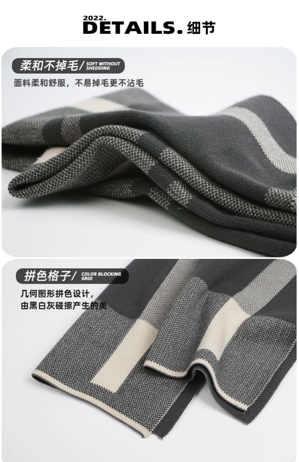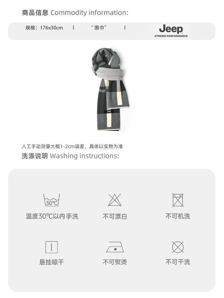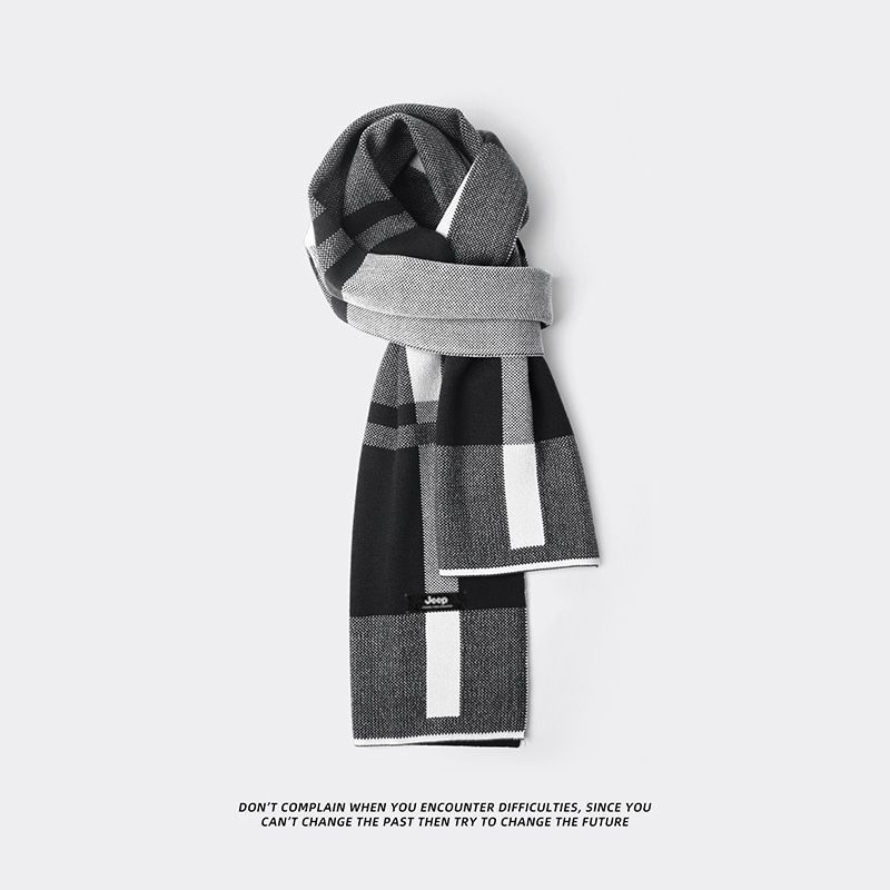 JEEP Jeep Men's Scarf Men's Winter Autumn and Winter Warm Casual Korean Style Versatile Gift Scarf for Boys Gray Gray Free High-End Gift Box