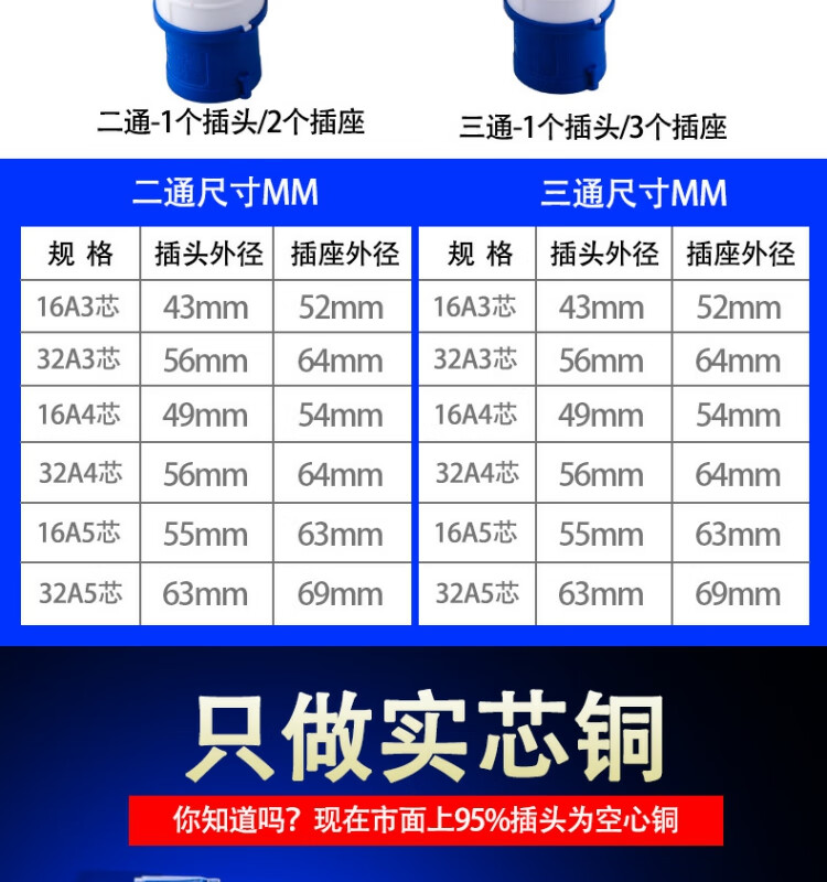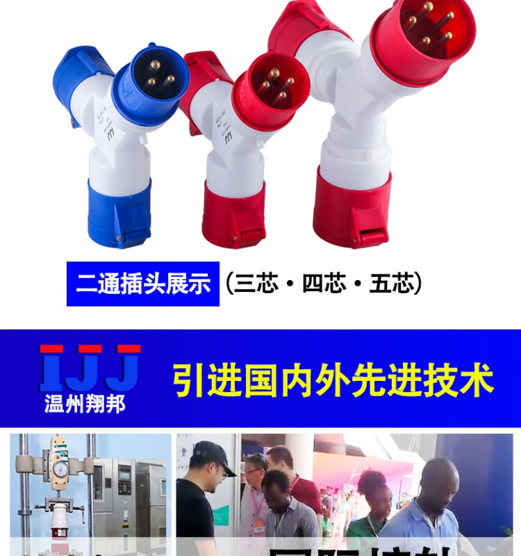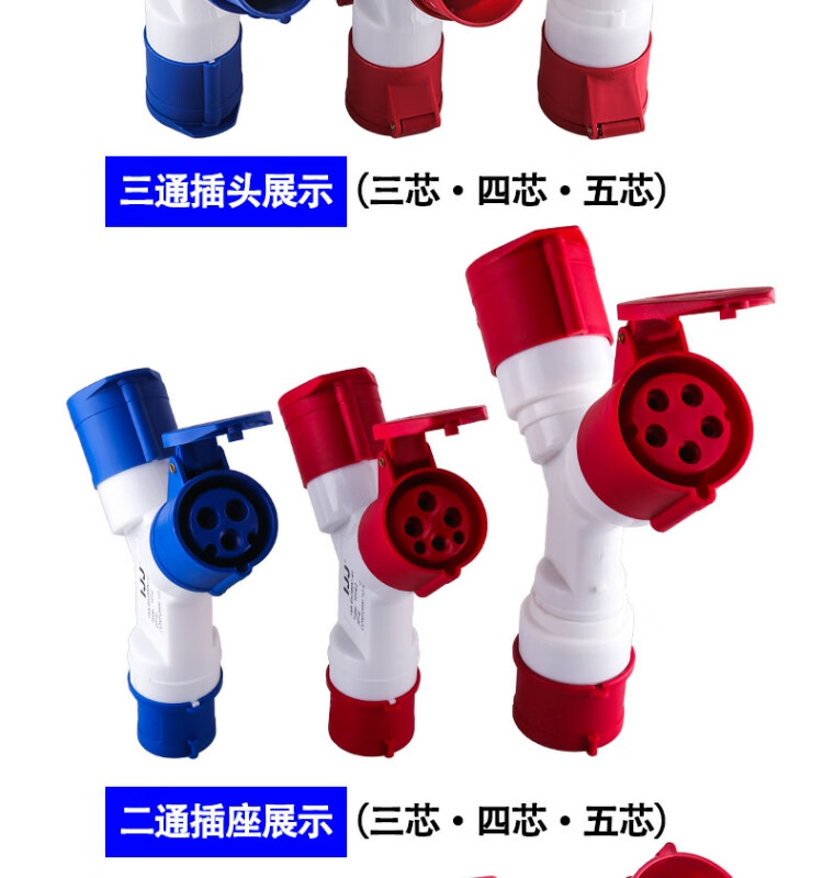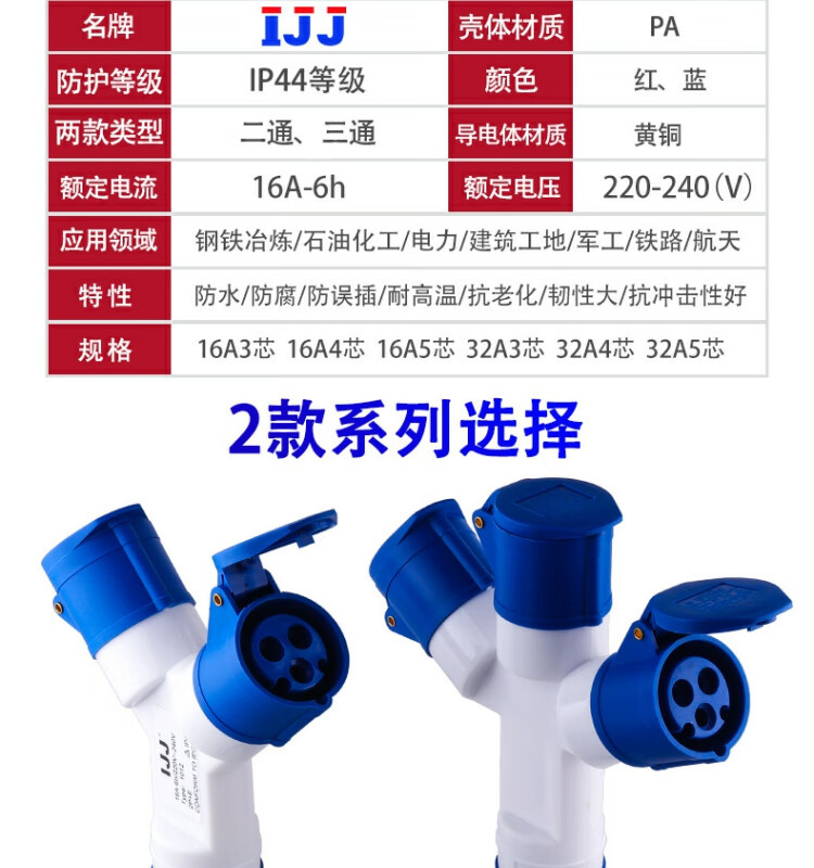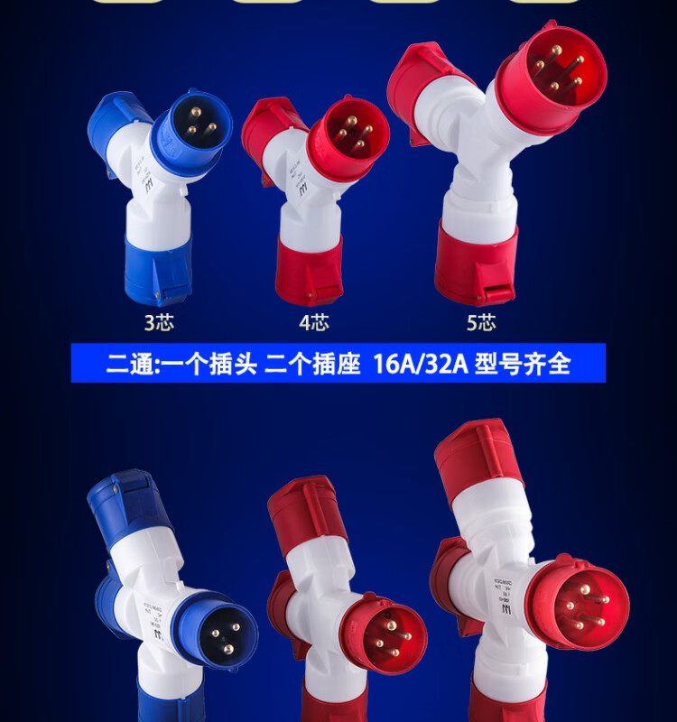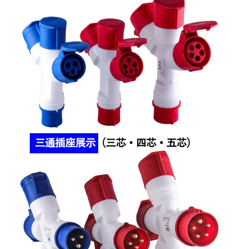 IJJ industrial plug Y-type multi-functional three-way branch socket waterproof 220v380 three-phase 32A16a three-hole four-hole five-hole 4-core aviation non-explosion-proof plug 1012 (1 point 2 sockets 16A 3 holes)