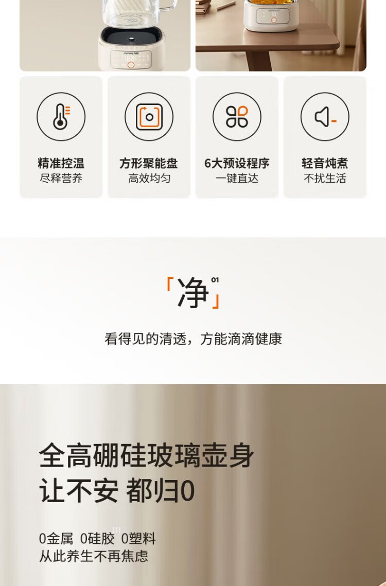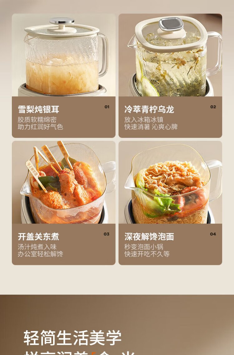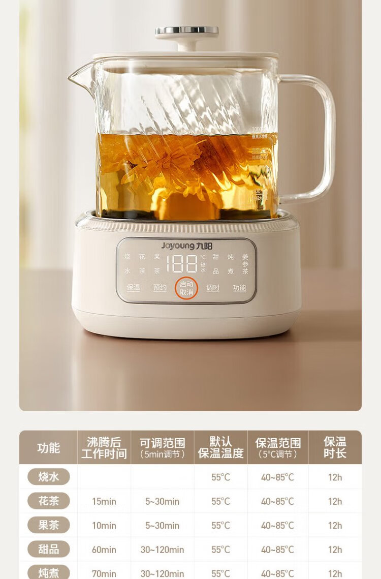 Joyoung all-glass health pot mini household multi-function kettle teapot soft sound stew pot constant temperature kettle non-WY101 office tea maker WY103 0 metal all-glass pot body 1L