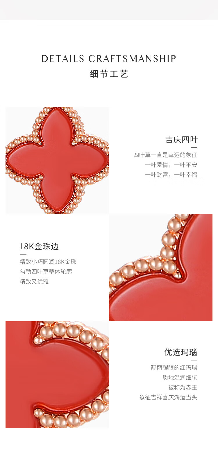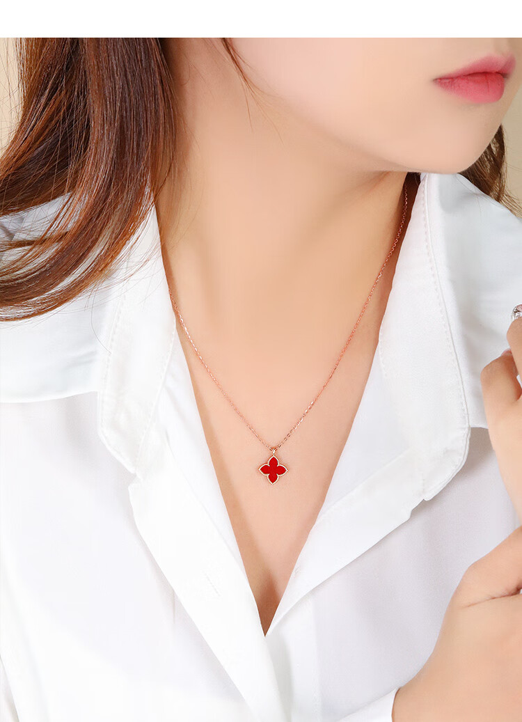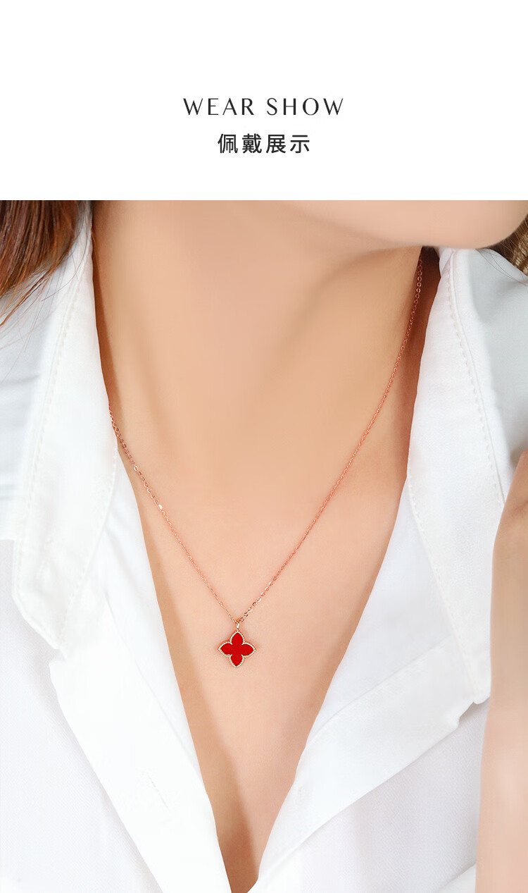 Chiba Jewelry 18k gold agate pendant Happy four-leaf clover 3D hard gold four-leaf clover necklace as a birthday gift for girlfriend 18k gold agate diamond pendant weighs about 0.2g (subject to actual)