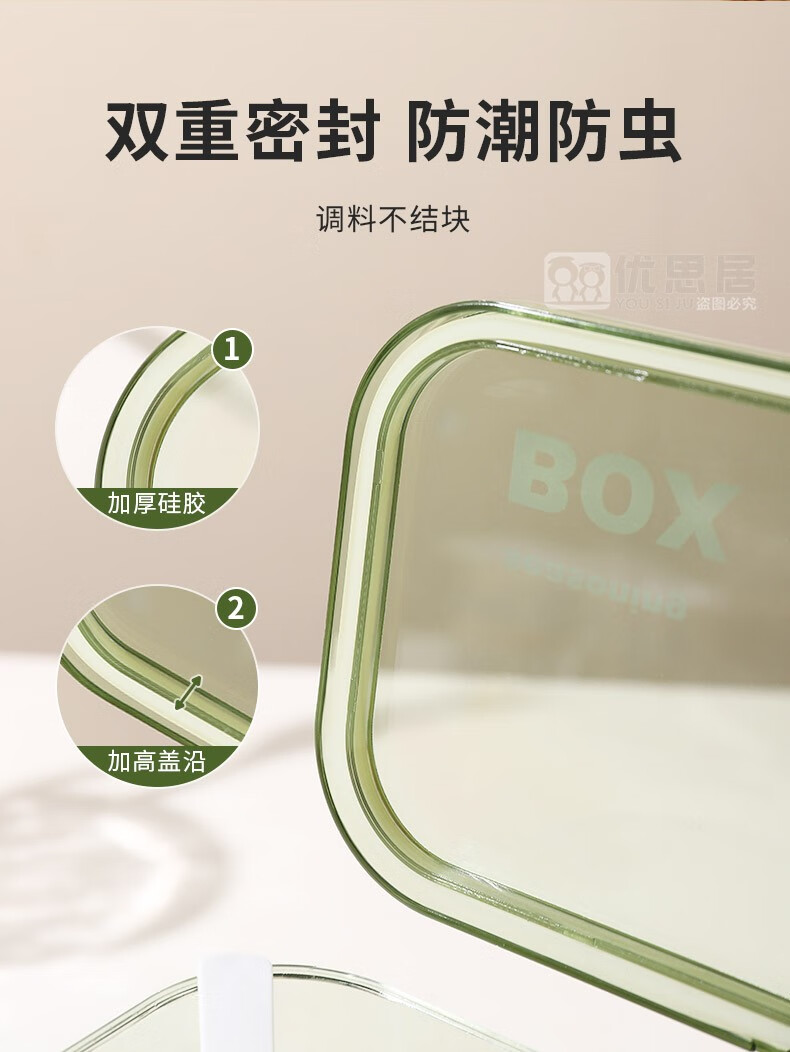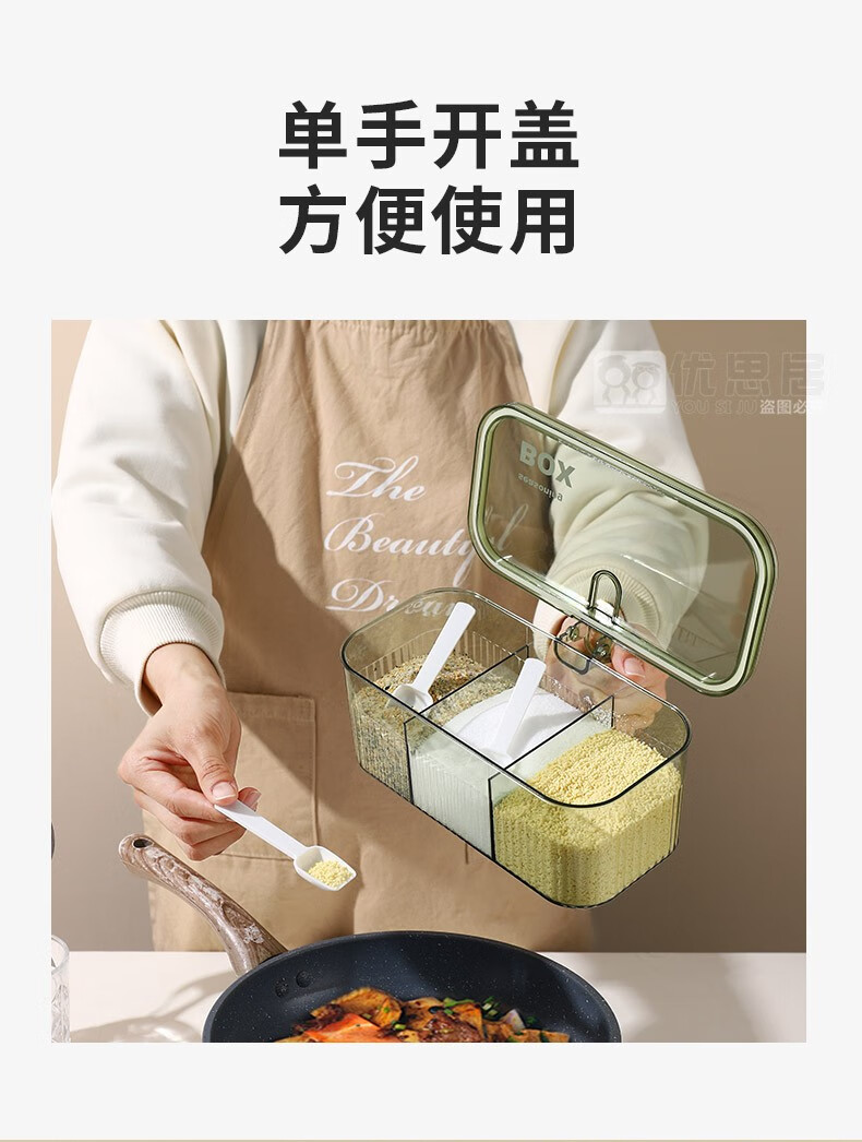 Seasoning box integrated multi-compartment home kitchen high-end MSG salt seasoning jar multi-functional storage box combination set large three compartments - transparent green