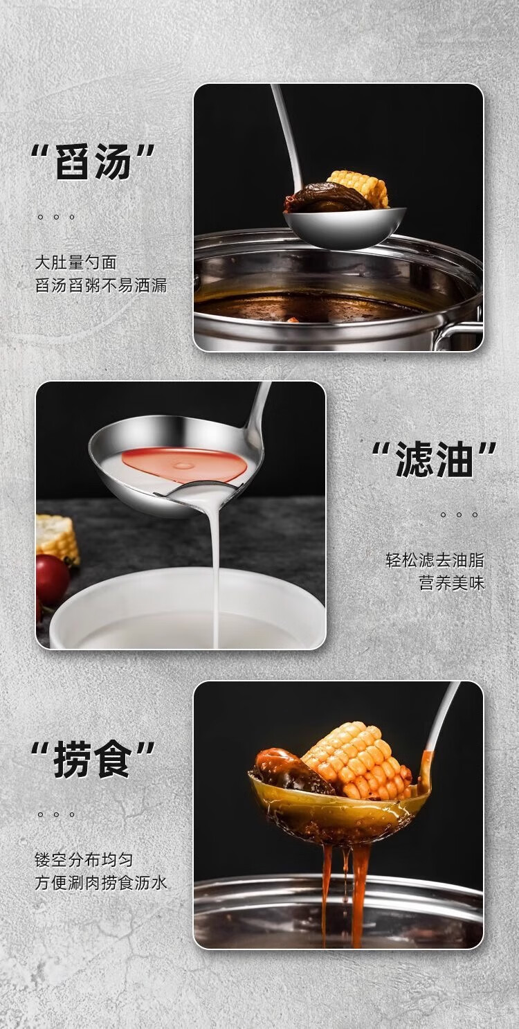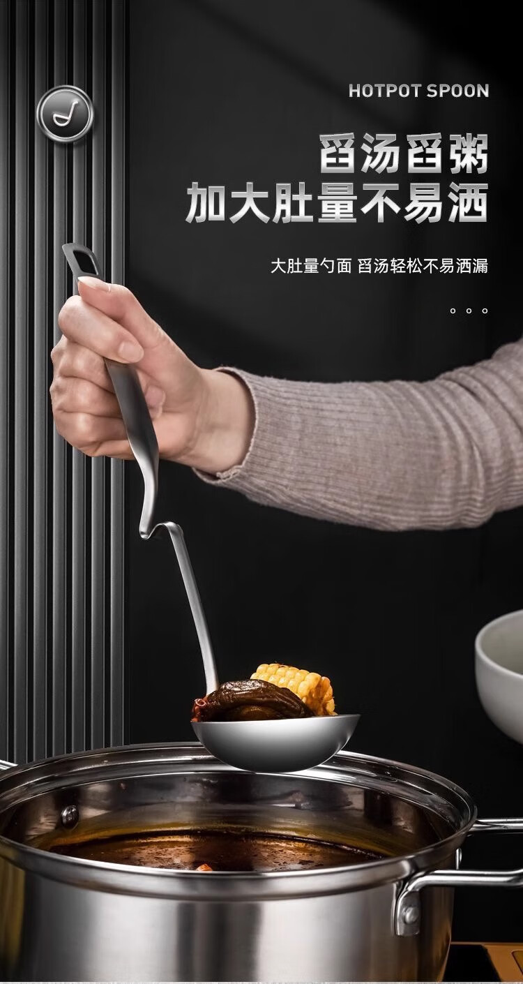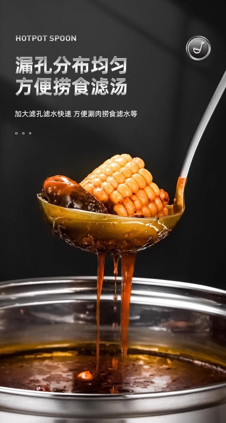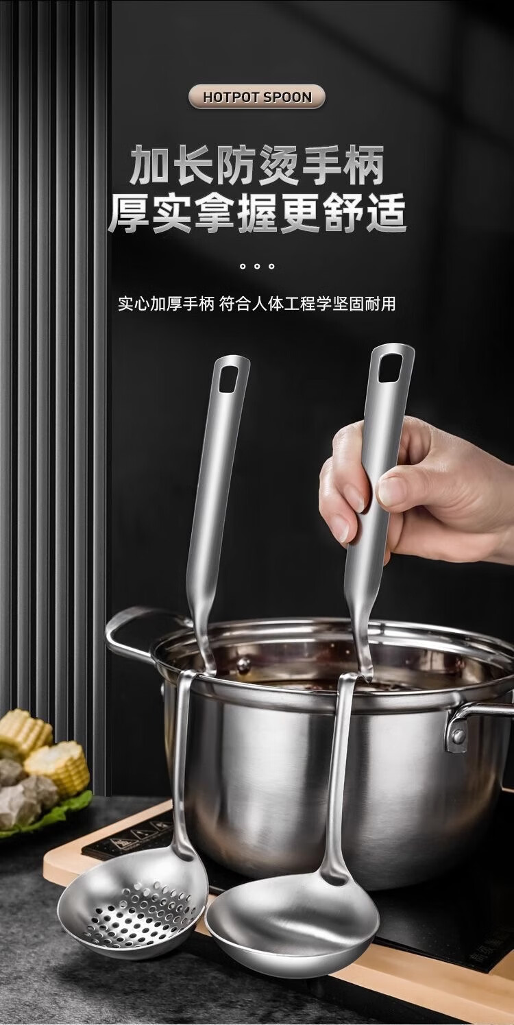 Stainless steel household kitchen hot pot spoon soup spoon colander set commercial hot pot restaurant special soup spoon colander hot pot wall hanging colander 1 piece set