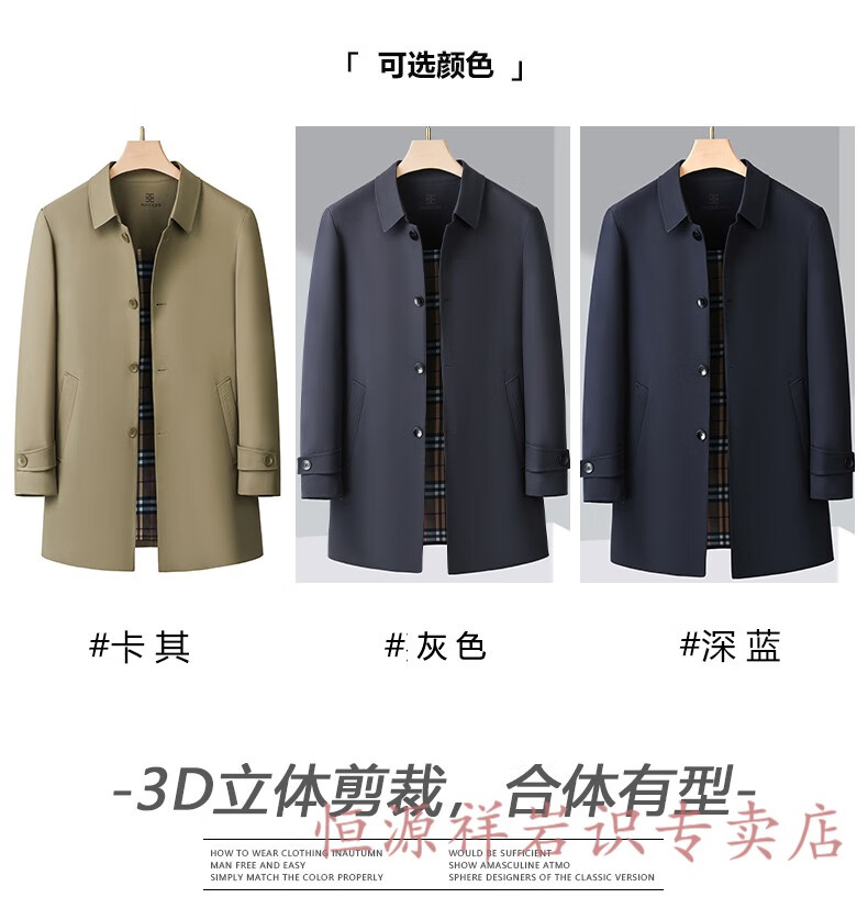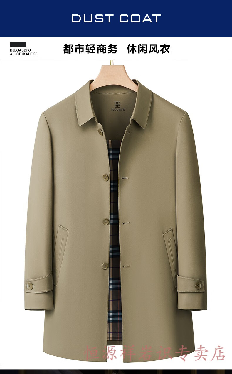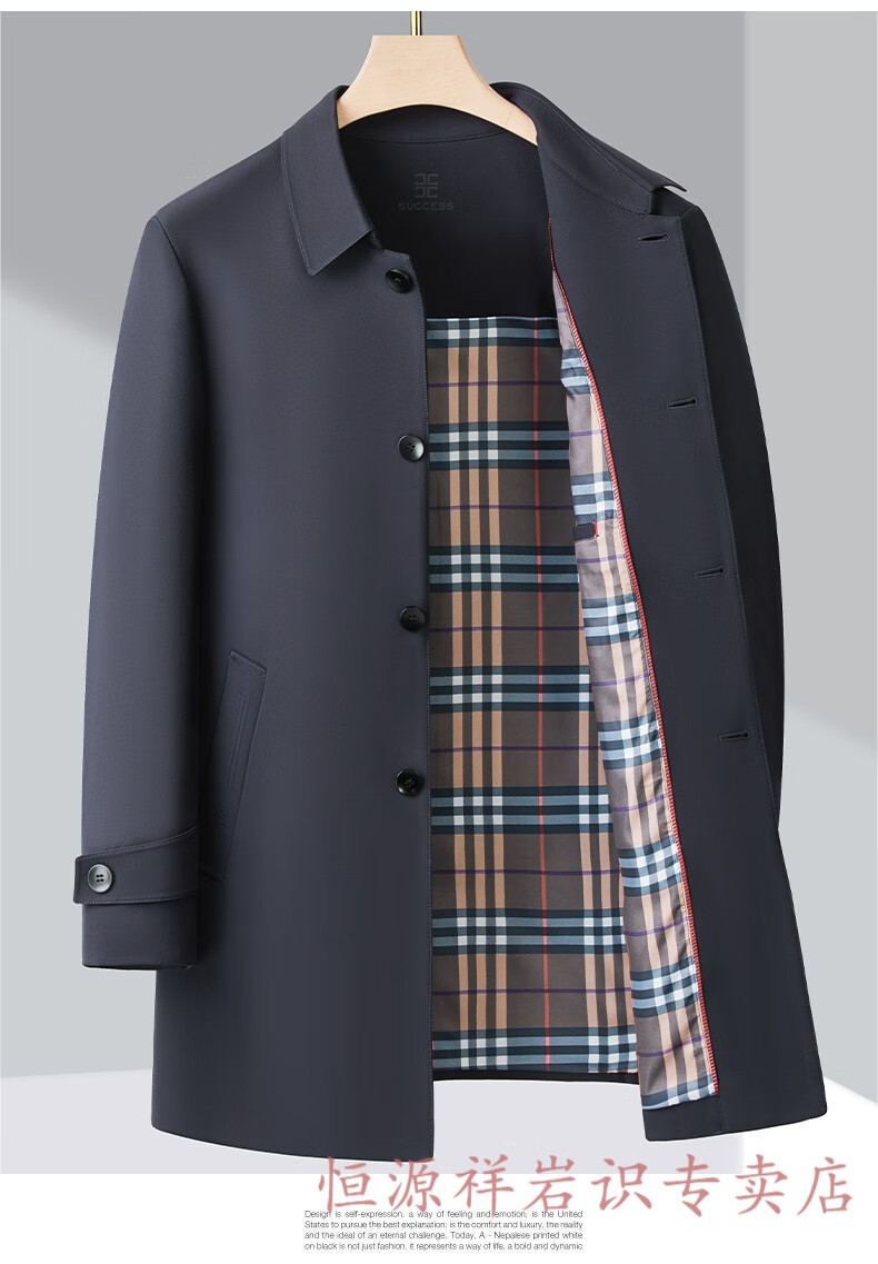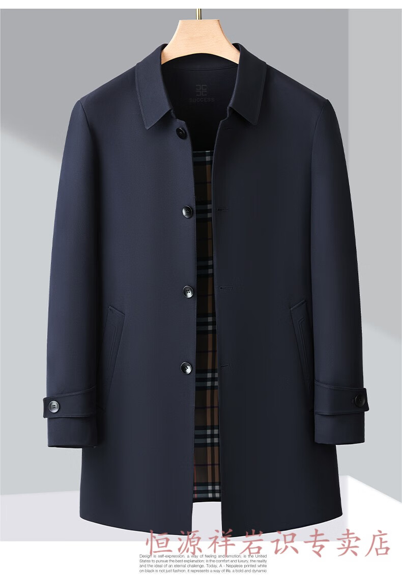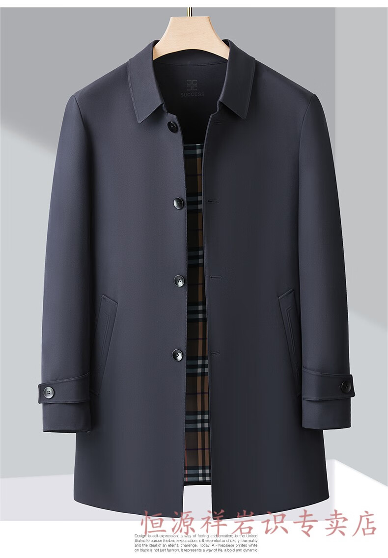 Hengyuanxiang brand men's high-end mulberry silk mid-length windbreaker spring and autumn new middle-aged dad wear lapel casual jacket navy blue 2156 195/4XL recommended 190-210Jin Jin equals 0.5 kg