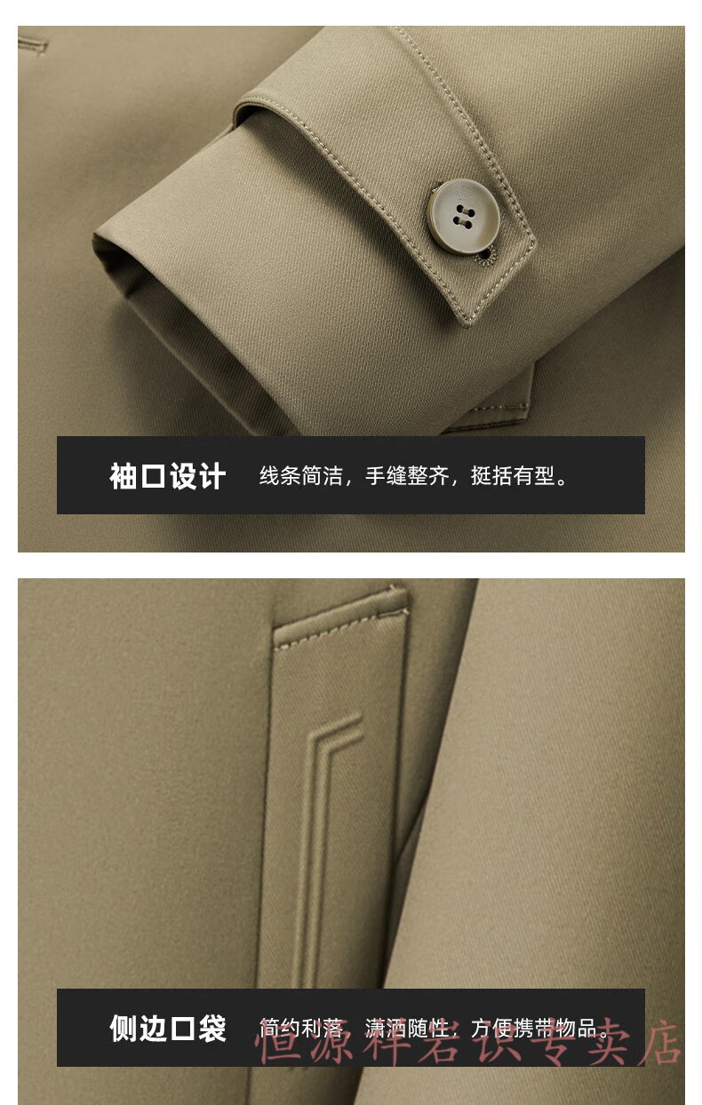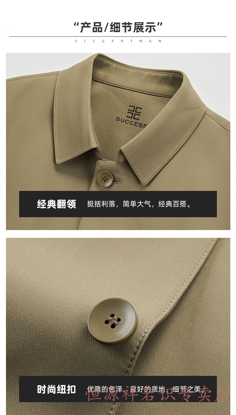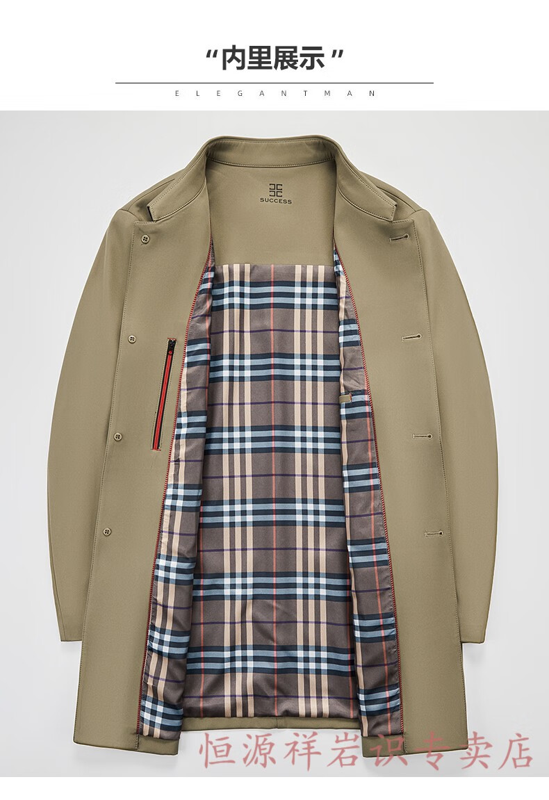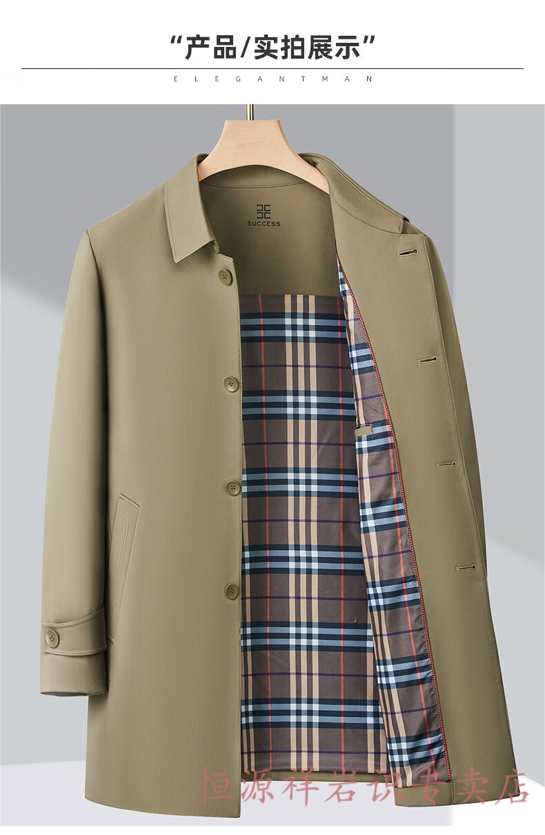 Hengyuanxiang brand men's high-end mulberry silk mid-length windbreaker spring and autumn new middle-aged dad wear lapel casual jacket navy blue 2156 195/4XL recommended 190-210Jin Jin equals 0.5 kg