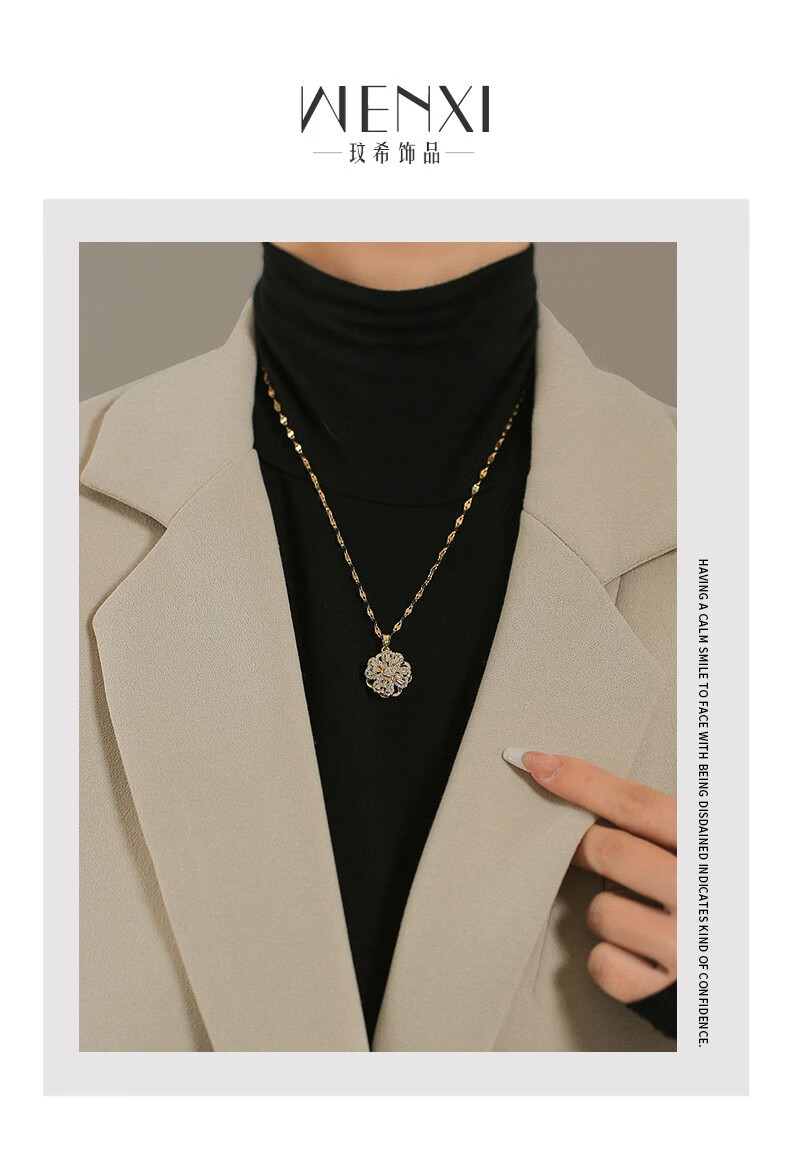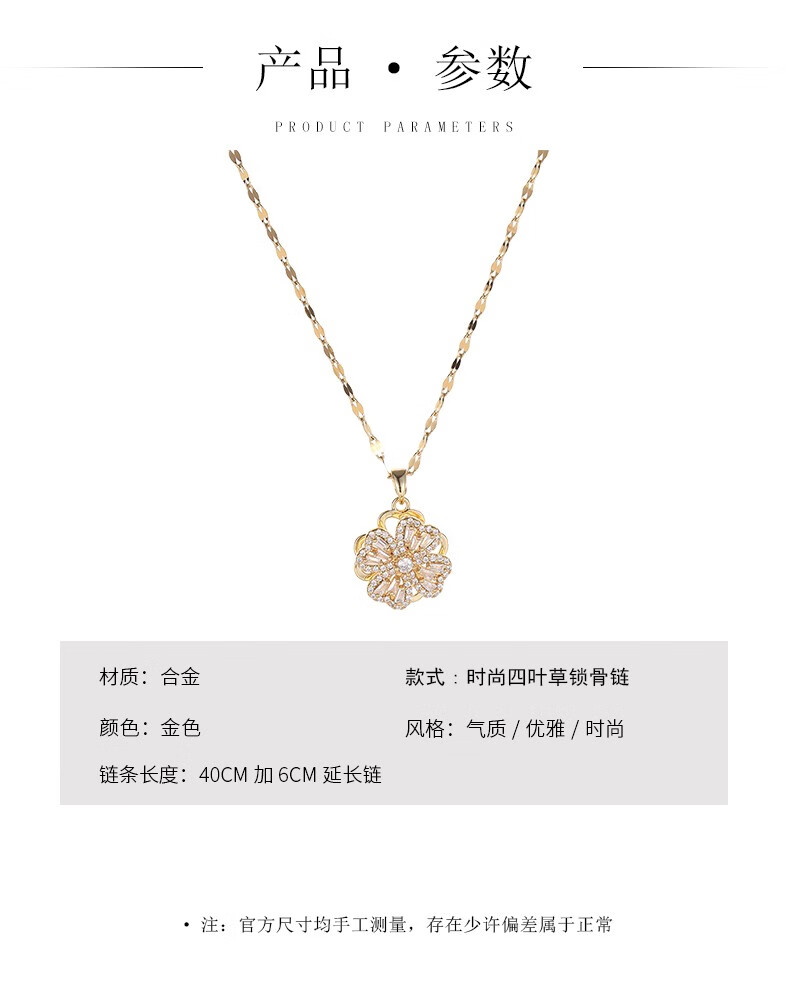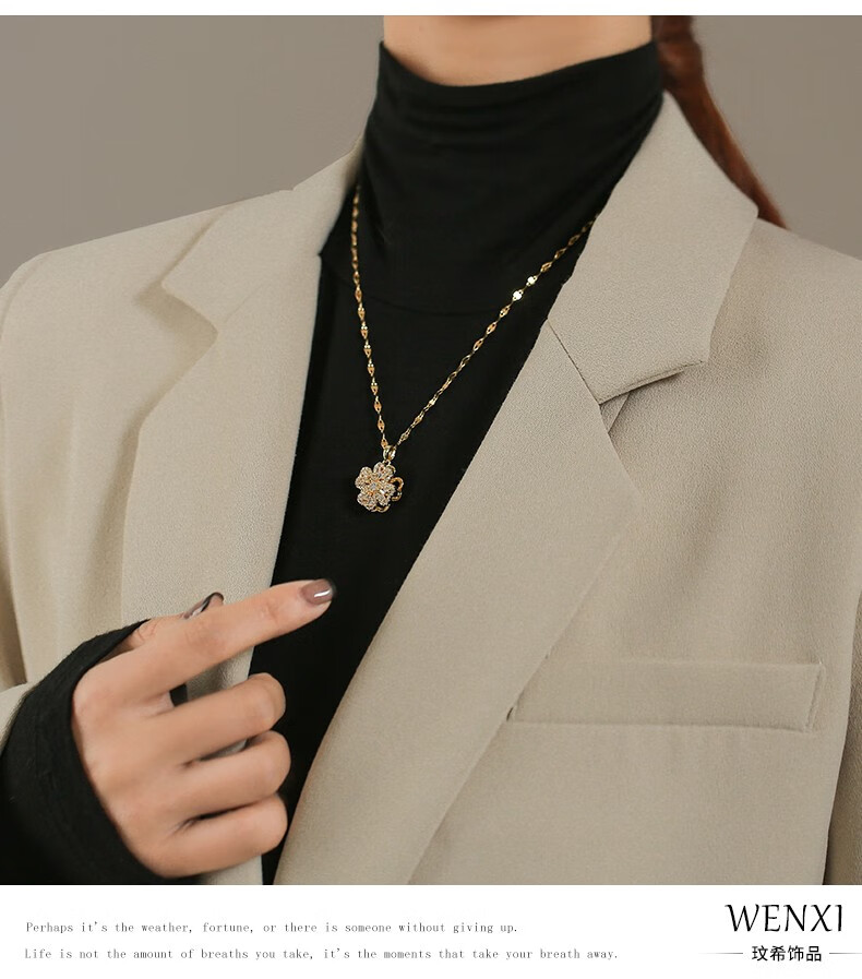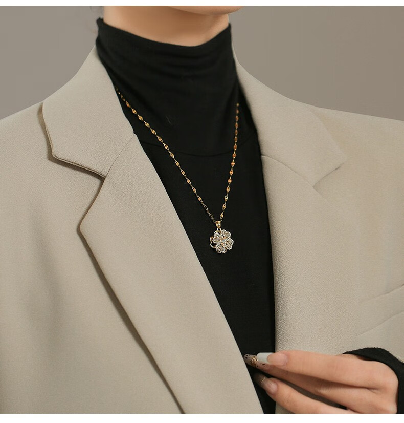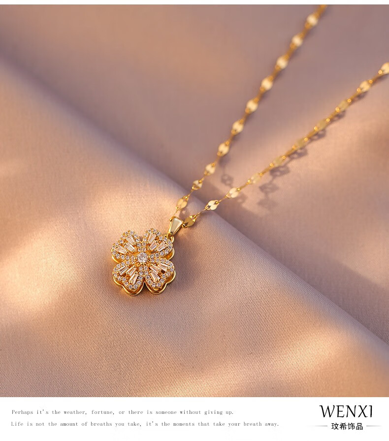 BOMP Old Phoenix Gold Store Style Rotating Four-leaf Clover Necklace Women's Sweater Chain Style Autumn and Winter Clavicle Chain 2024 New Accessories Golden Four-leaf Clover Necklace